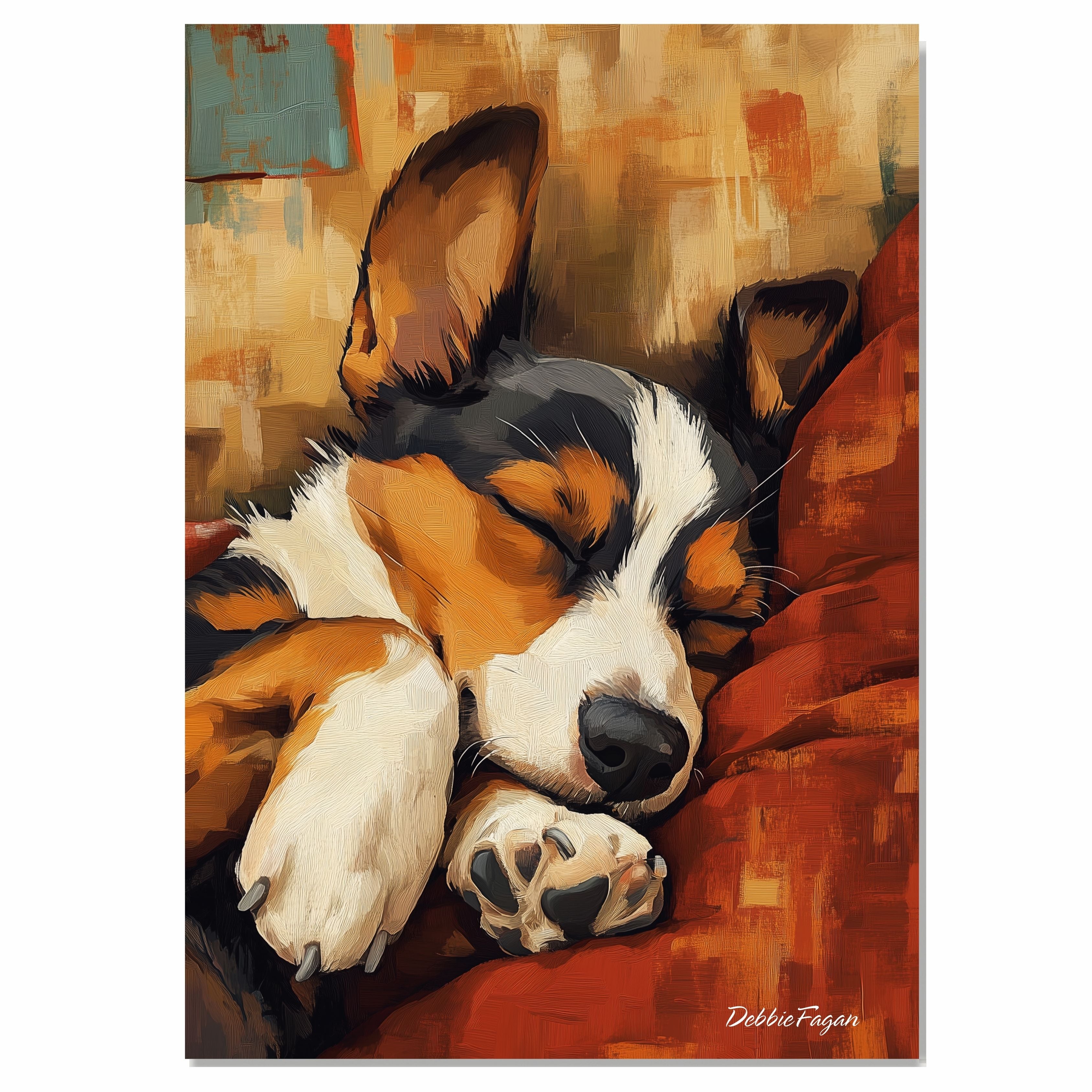 This charming canvas features a sleepy pup captured in a Van Gogh-inspired painting style. With rich, textured brush strokes and warm, earthy tones, this cozy artwork adds warmth and whimsy to any room—perfect for dog lovers and art enthusiasts alike.