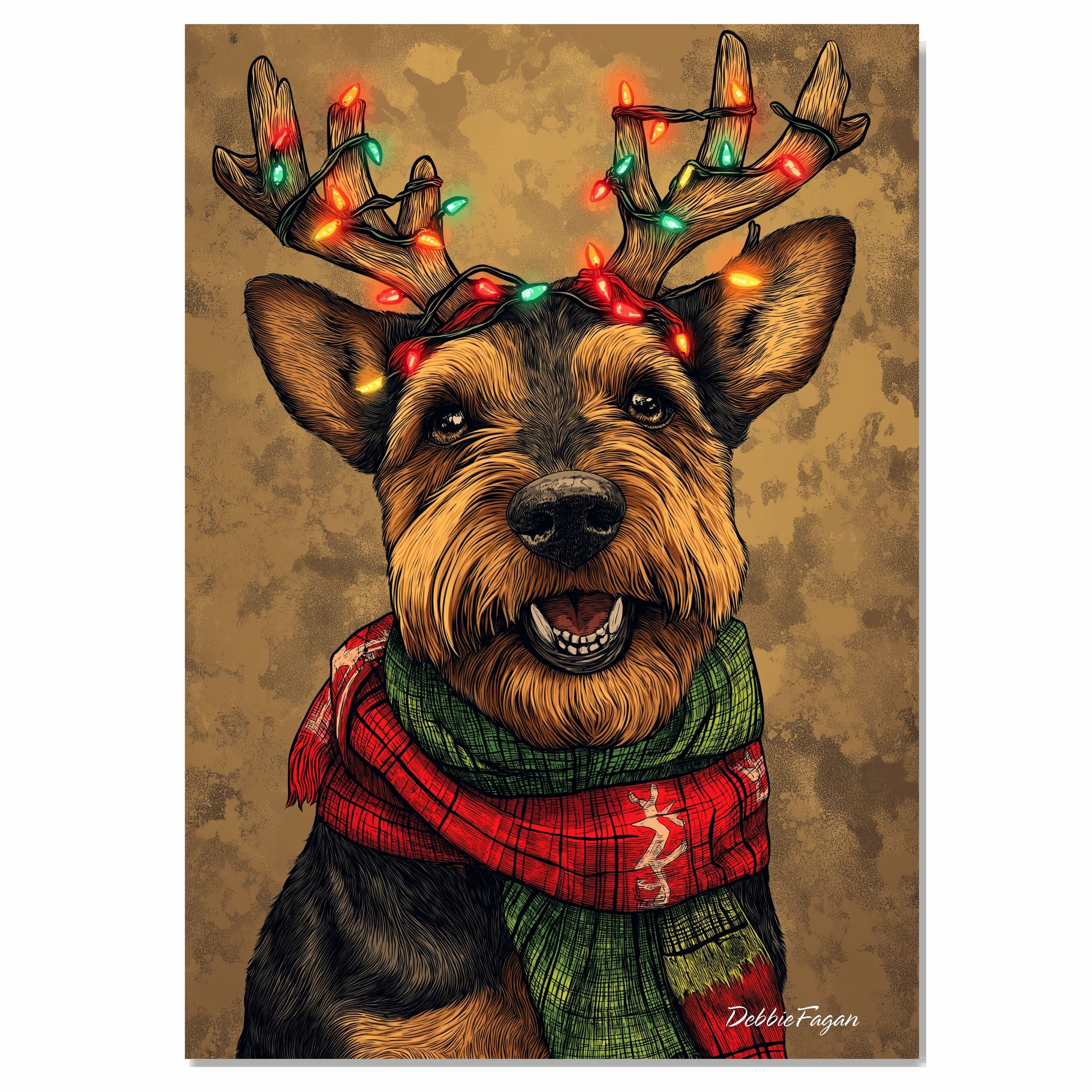Our Airedale Holiday Cheer Canvas adds a touch of festive charm and warmth to your space, featuring an adorable Airedale Terrier donning a lit antler headband and cozy scarf against a rustic background. Available as a 1.5" thick canvas wrap, floating framed canvas, or as a flat rolled canvas, this heartwarming artwork titled Festive Fuzz captures the essence of holiday spirit with a blend of cozy charm and timeless elegance. Perfect for adding seasonal joy to your decor, this delightful piece makes a beautiful focal point in any room, bringing both cheer and character to your holiday celebrations.