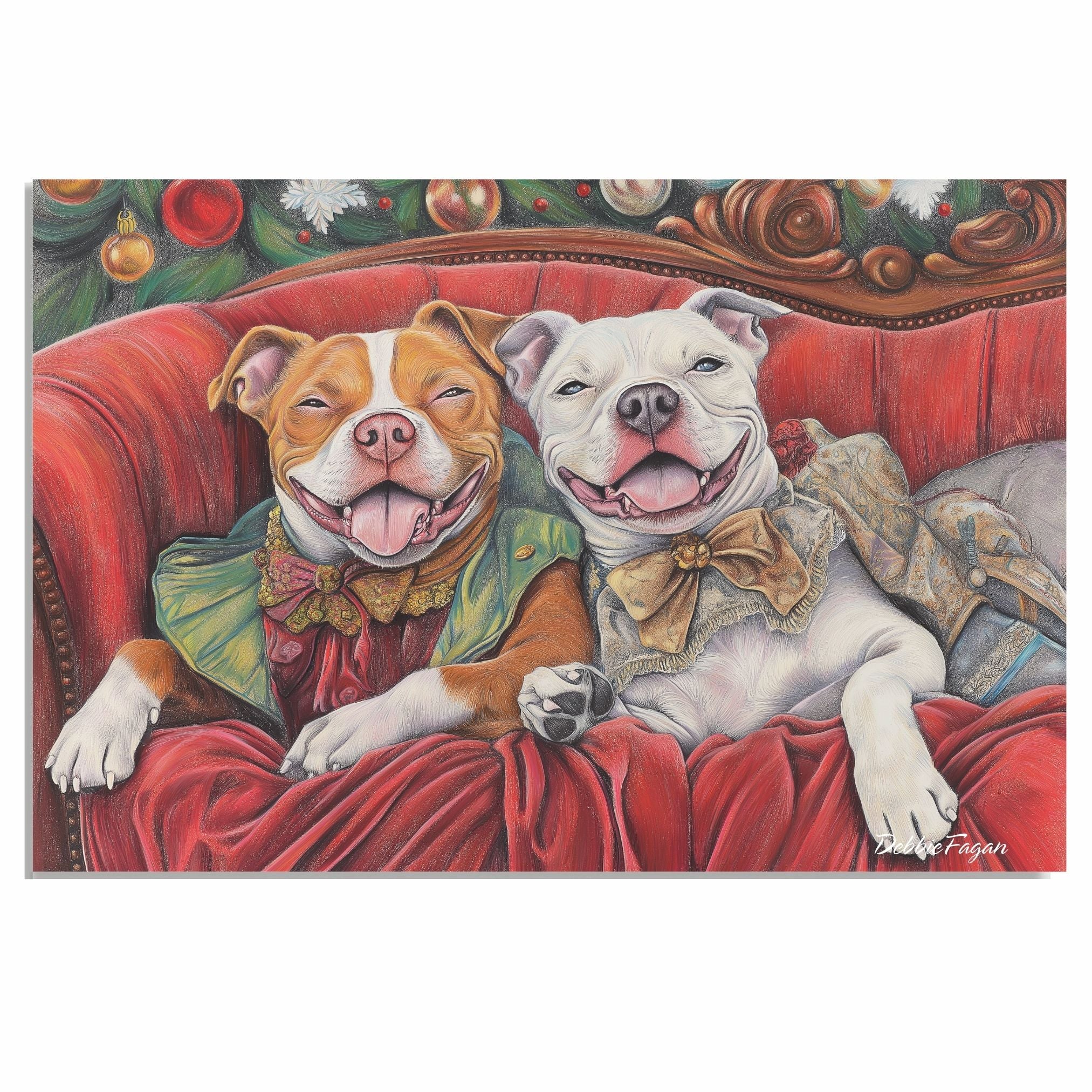 American Pit Bull Christmas Canvas - "Victorian Charm" - Happy Pit Bull Pups in Elegant Attire on Ready to Hang 1.5" Thick Canvas Wrap, Floating Framed Canvas, Flat Rolled Canvas