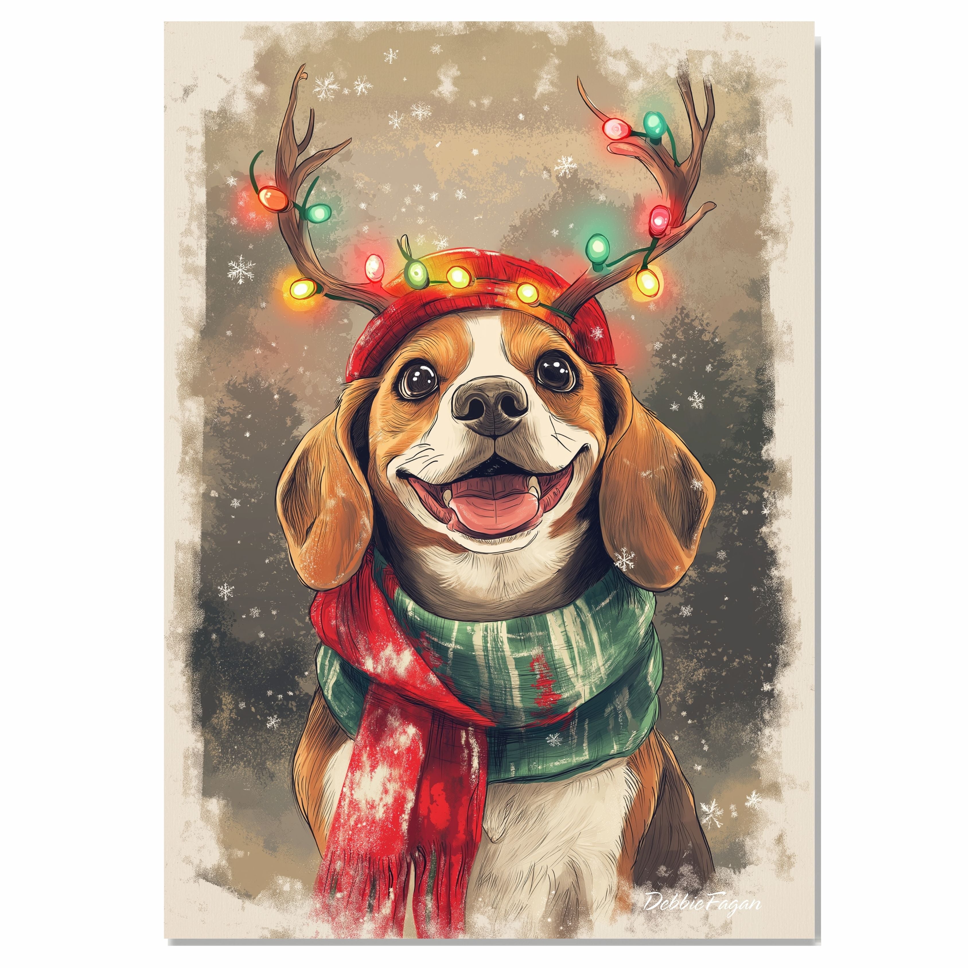 Our Beagle Winter Wonderland Canvas adds a touch of festive cheer to your space, featuring a charming Beagle adorned with a colorful scarf and twinkling Christmas lights as it frolics in a serene snowy forest. Titled "Forest Festivities," this heartwarming artwork captures the playful spirit of the season and the magic of winter. Available on a 1.5" thick canvas wrap, floating framed canvas, or as a flat rolled canvas, this delightful piece brings both joy and elegance to your holiday decor. Whether displayed in your living room or hallway, it's the perfect festive focal point for spreading warmth and cheer throughout your home.
