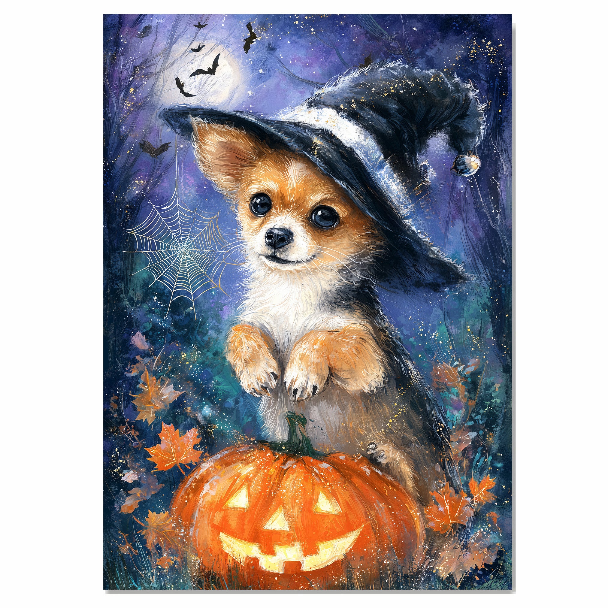 Celebrate Halloween with charm and warmth with this Chihuahua puppy canvas wall art. Featuring an adorable Chihuahua in a witch hat with a glowing pumpkin, this festive artwork is perfect for dog moms, pet lovers, and anyone decorating their home for fall. Ideal for living rooms, bedrooms, nurseries, offices, or farmhouse spaces, it brings a touch of playful seasonal magic to any wall. Makes a thoughtful Halloween gift for Chihuahua owners and dog enthusiasts alike.