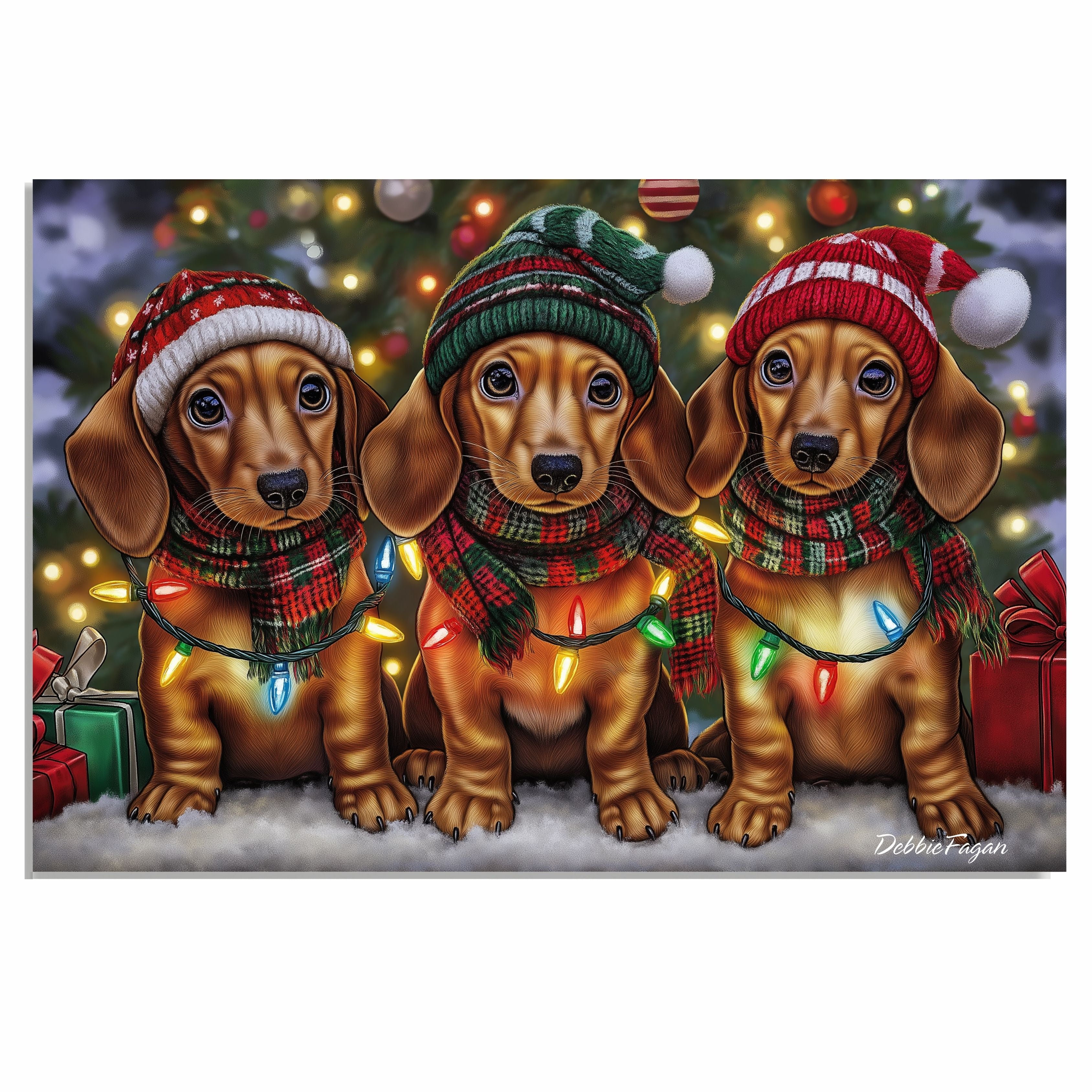 Our Dachshund Wonders Canvas adds a touch of holiday cheer and warmth to your home, featuring delightful dachshunds dressed in cozy outfits, playfully wrapped in festive Christmas lights. Available on a 1.5" thick canvas wrap, floating framed canvas, or as a flat rolled canvas, this charming artwork titled Dachshund Wonders captures the joyful spirit of the winter season. With its vibrant colors and whimsical design, this enchanting piece is perfect for enhancing your holiday decor, creating a joyful atmosphere, and serving as a fun focal point in any room.