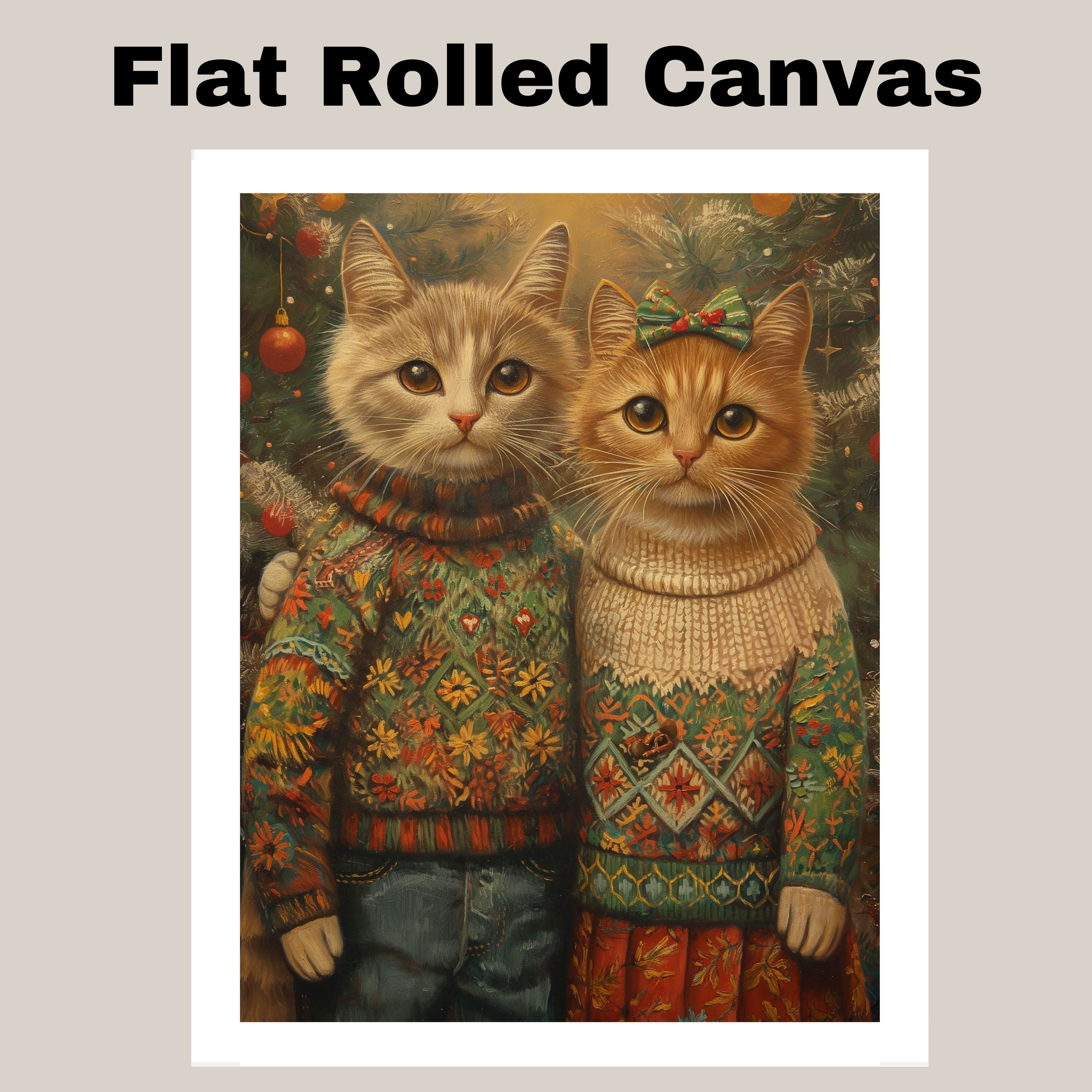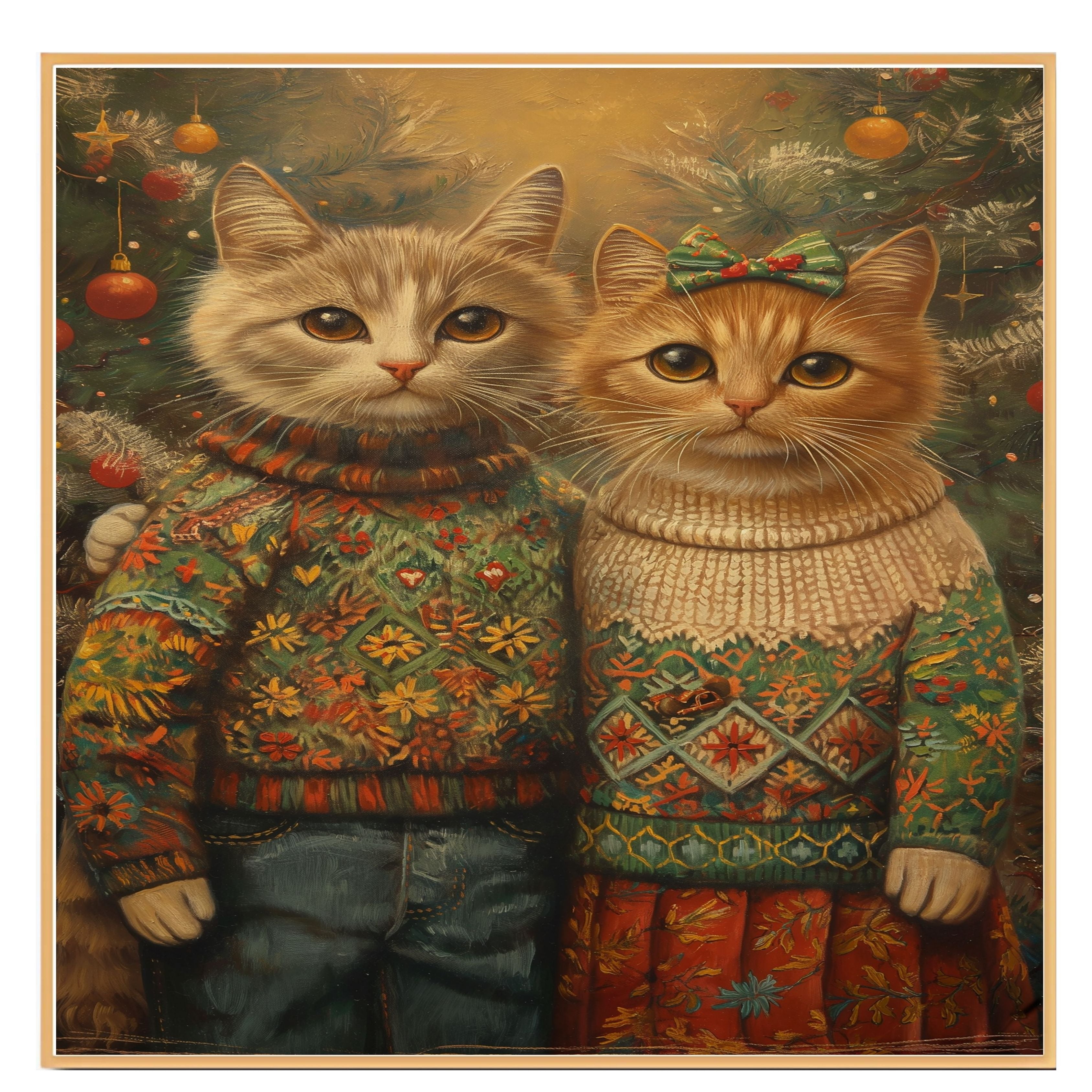 Christmas Kittens in Holiday Sweaters Adorable Cat Painting Festive Winter Scene Perfect for Cozy Home Office Seasonal Decoration or Christmas Gift on Ready to Hang 1.5" Thick Canvas Wrap, Floating Framed Canvas, Flat Rolled Canvas