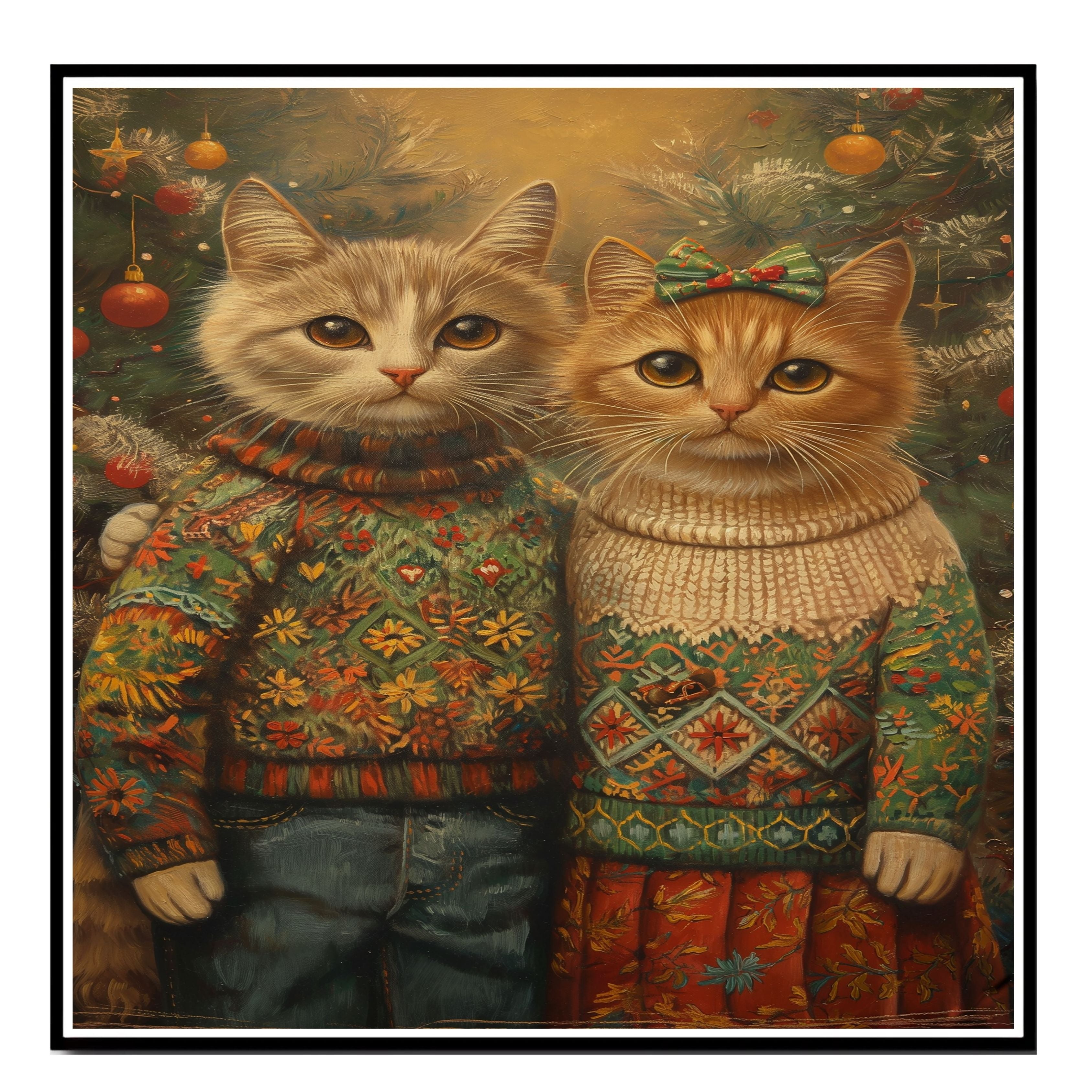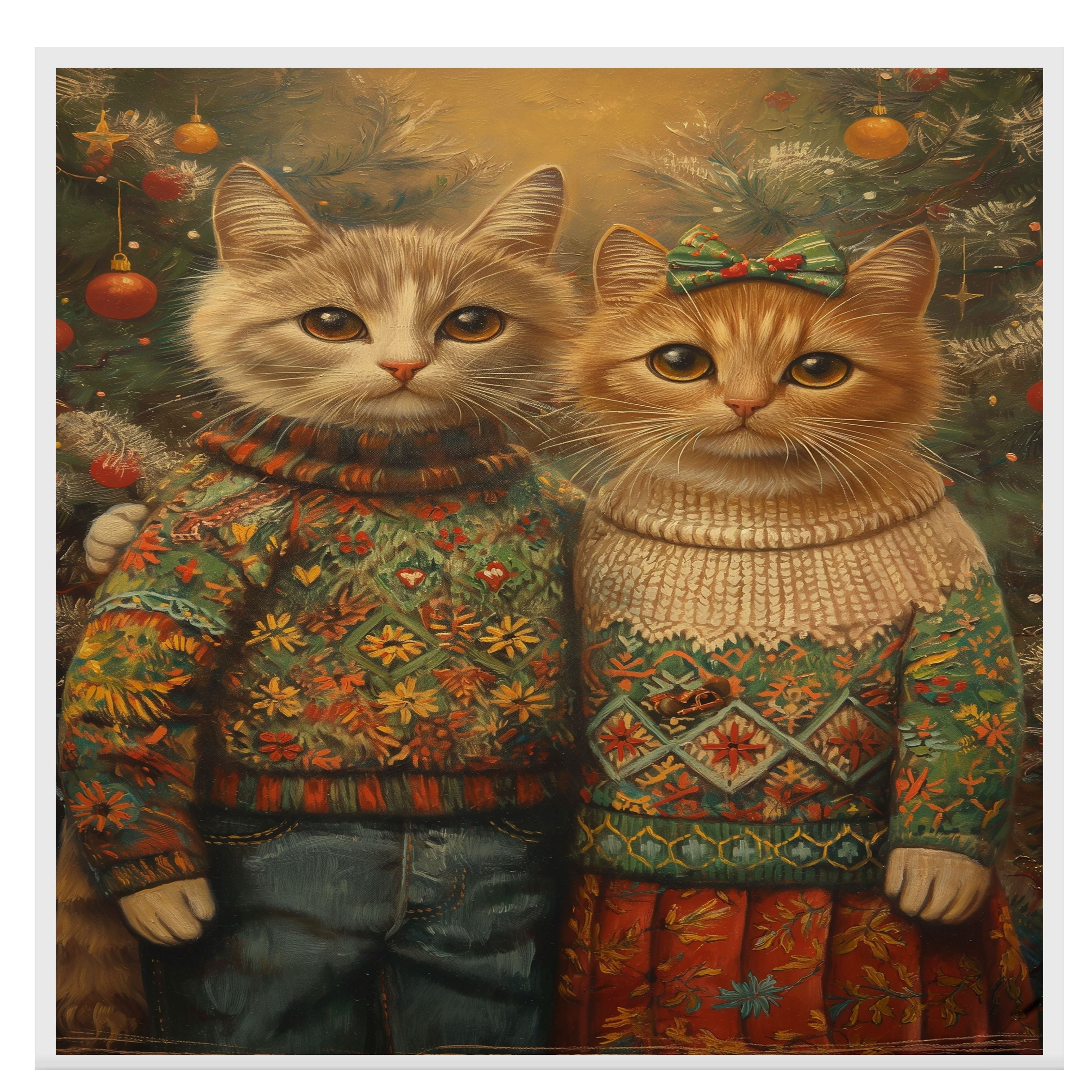Celebrate the cozy spirit of the season with this beautiful Christmas Kittens painting. Featuring two adorable kittens dressed in intricately patterned holiday sweaters, set against a festive backdrop of Christmas trees and golden lights, this heartwarming artwork is perfect for bringing seasonal cheer to your home or office. A wonderful Christmas gift for cat lovers and art enthusiasts, this vibrant piece captures the warmth and joy of the holidays.