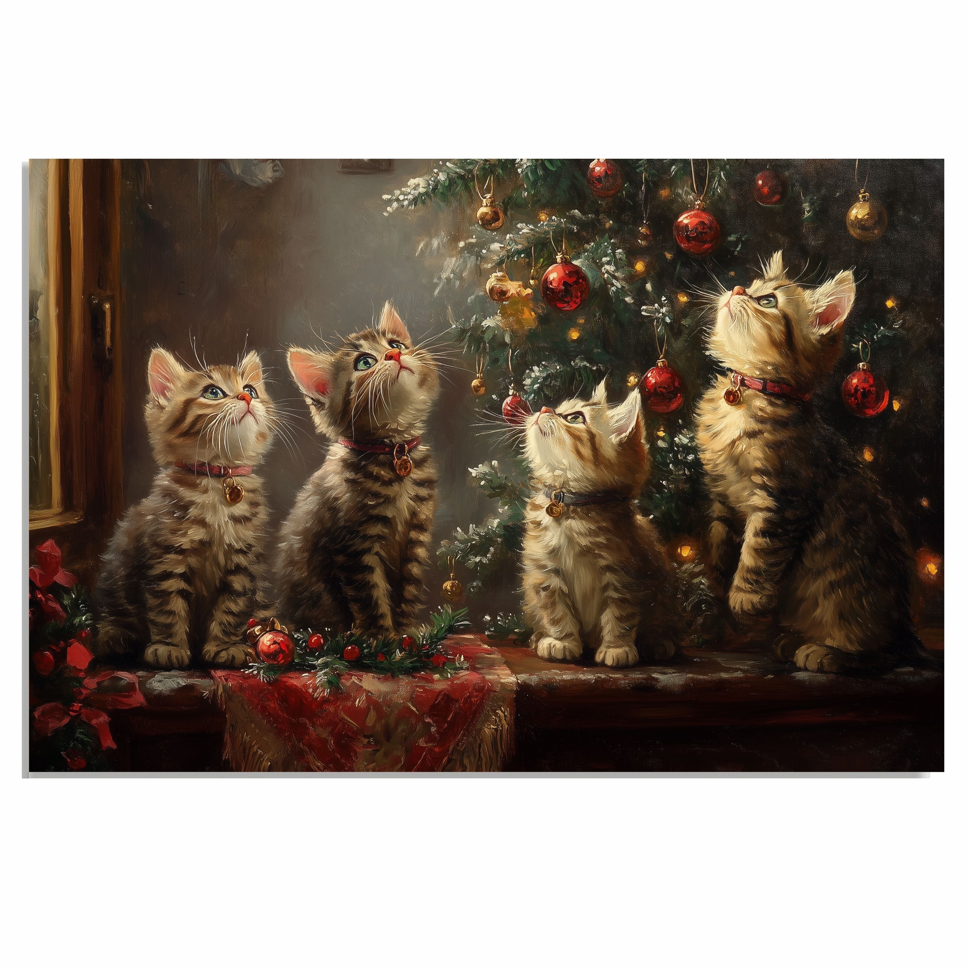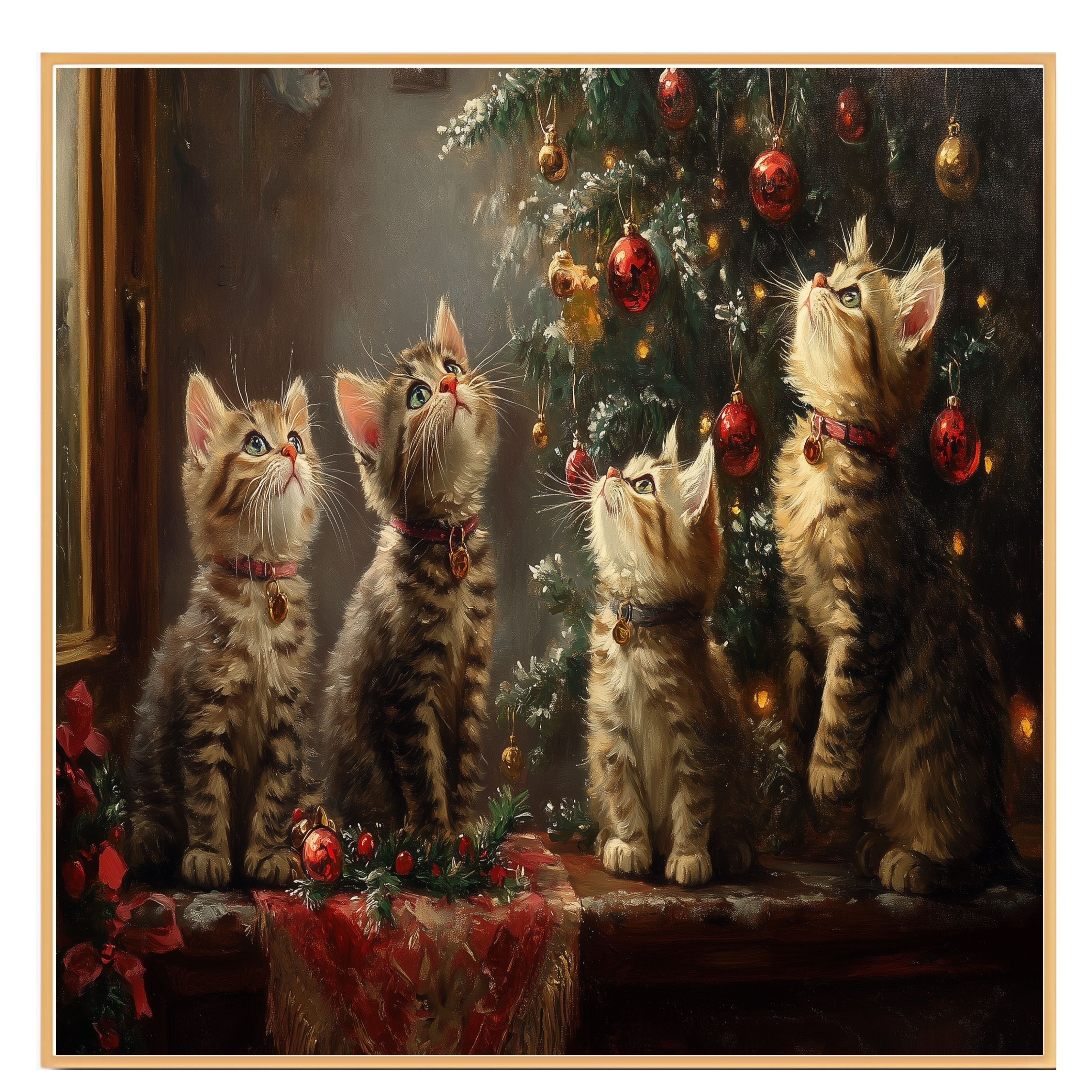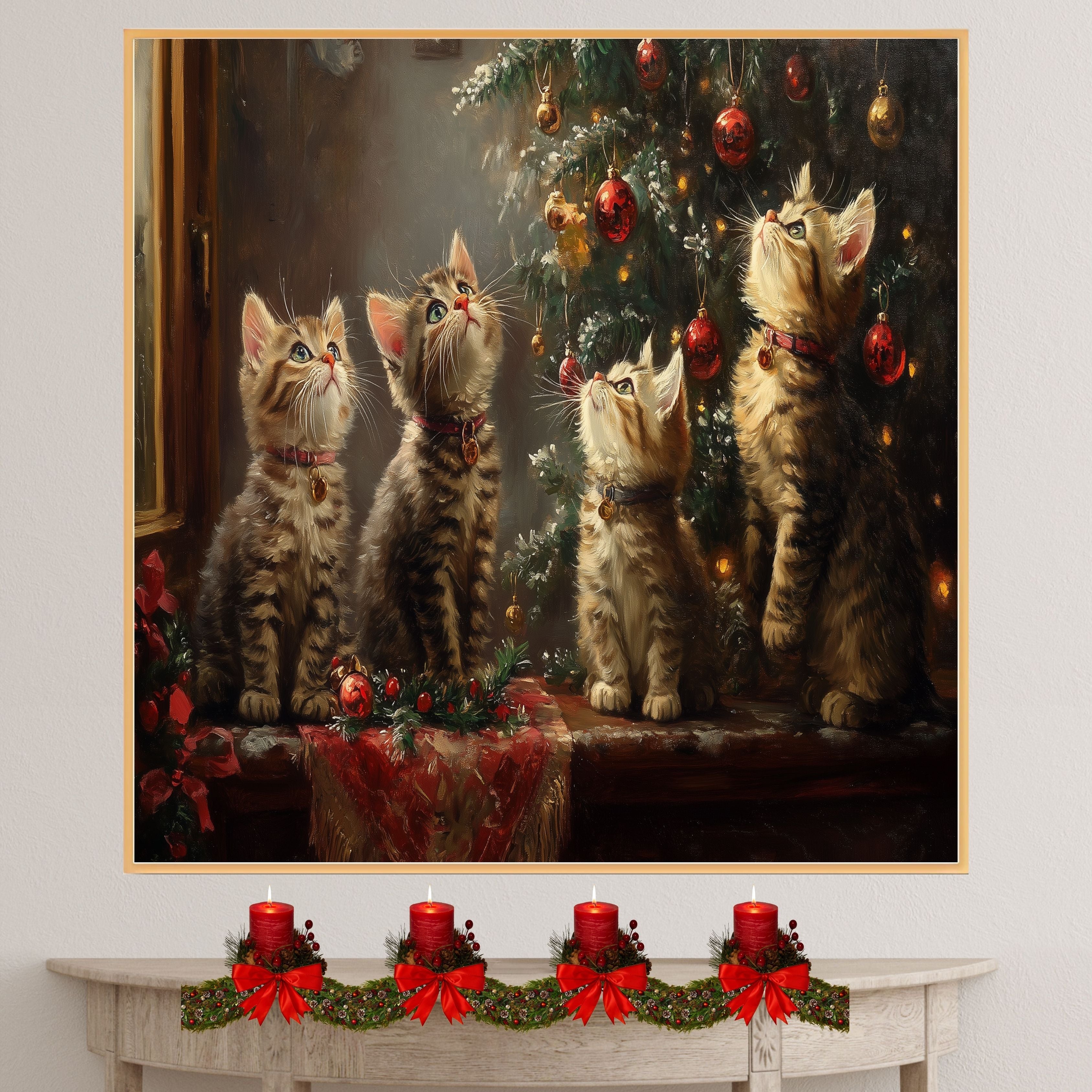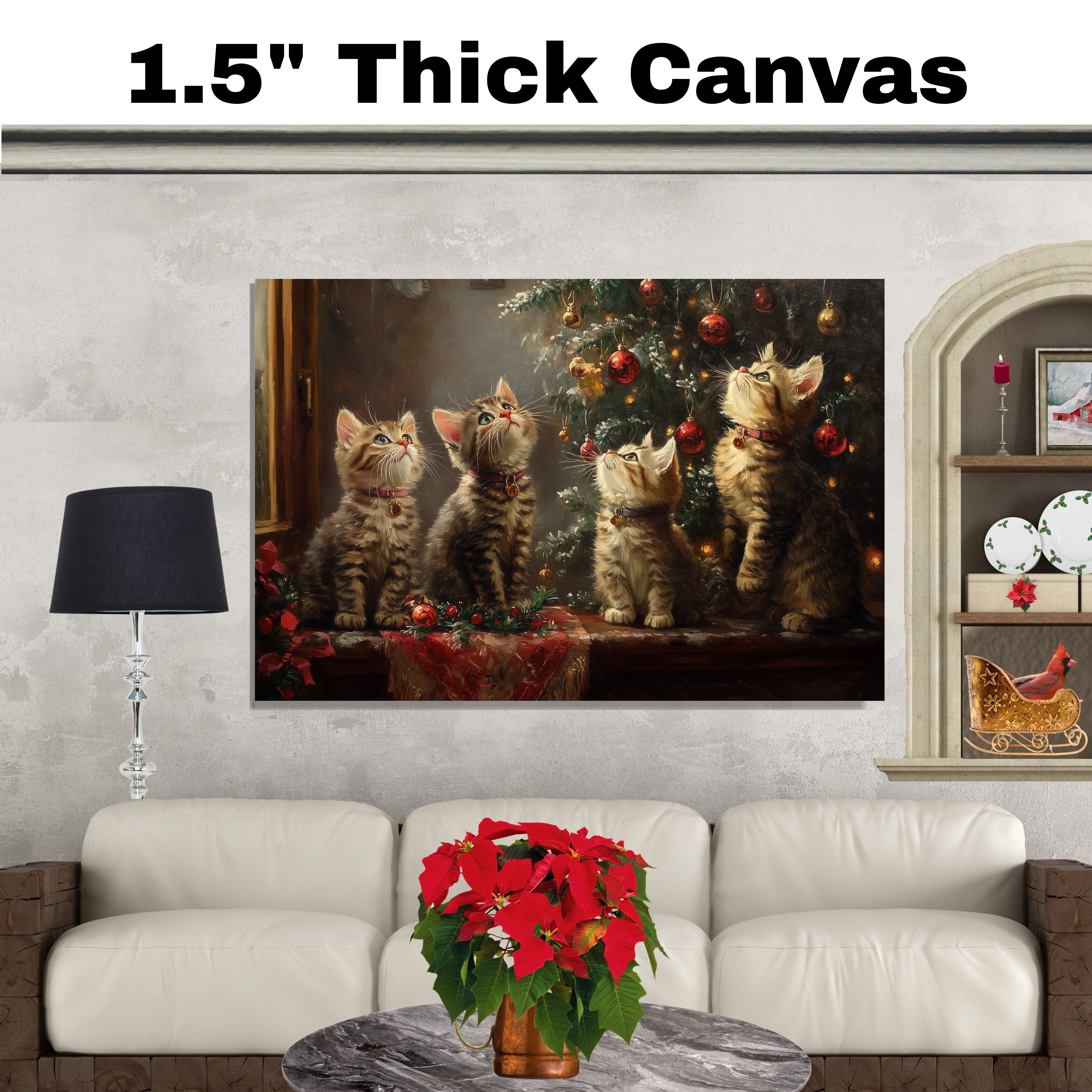Four Adorable Kittens Under the Tree Canvas Wall Decor Our Christmas Magic: Four Adorable Kittens Under the...