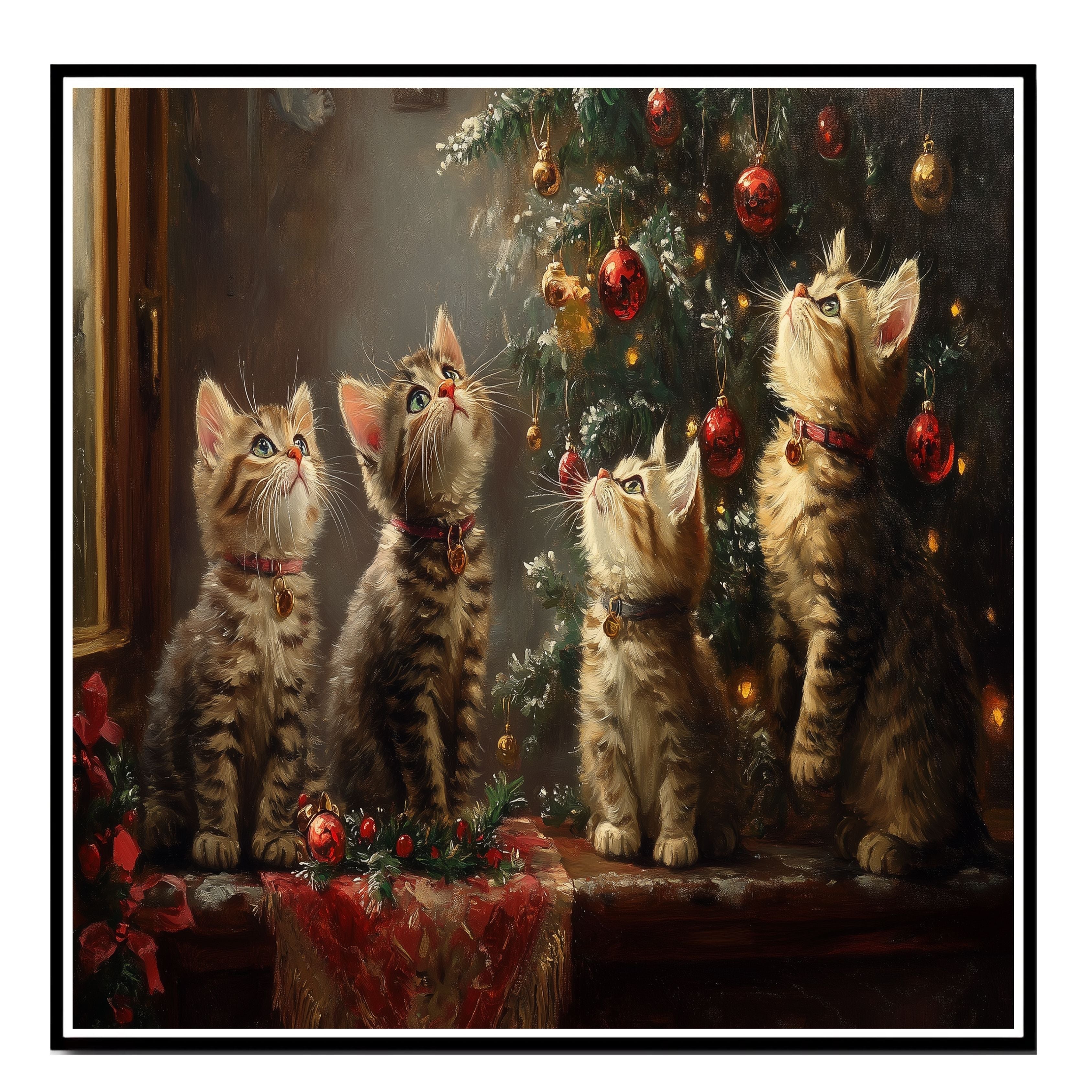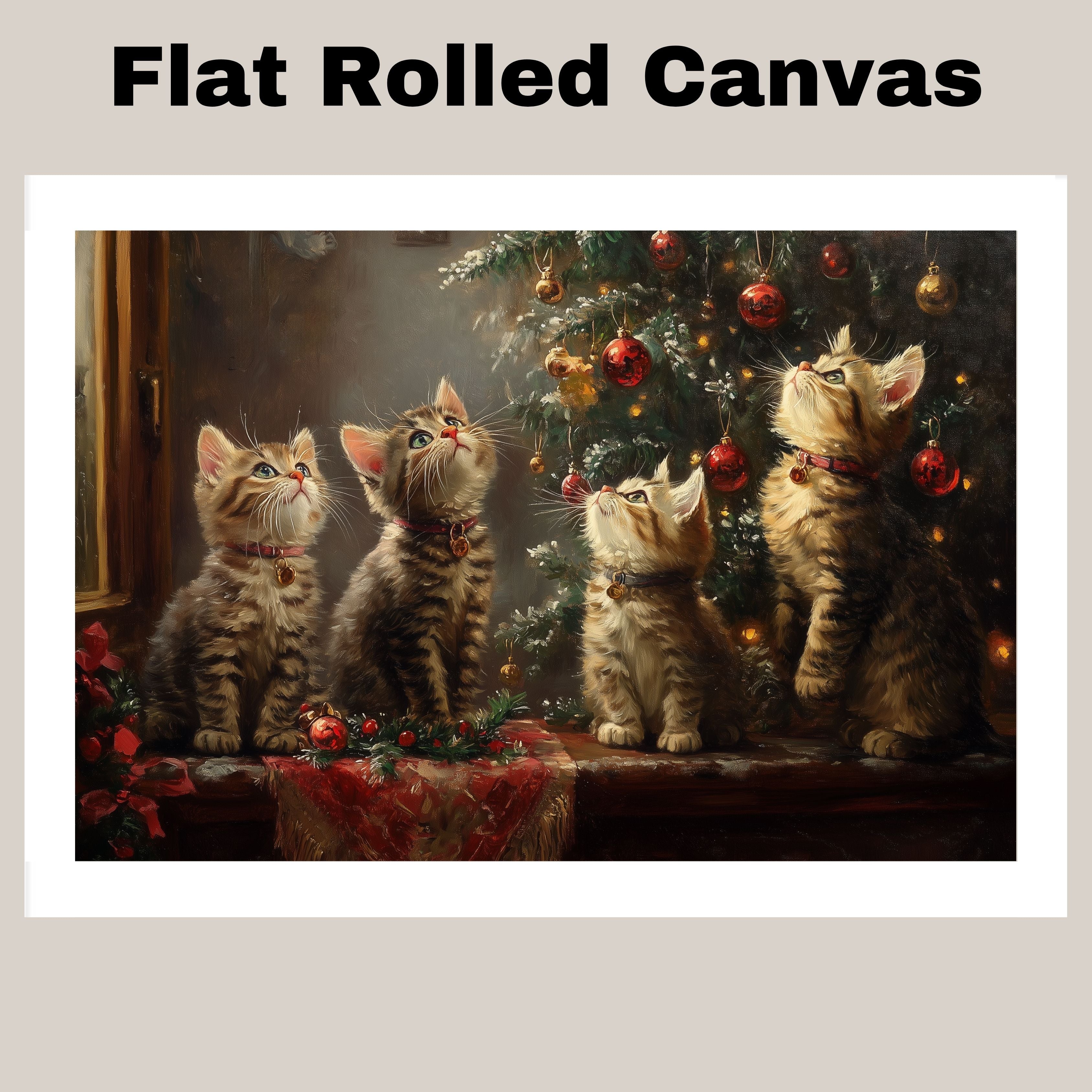 Our Christmas Magic: Four Adorable Kittens Under the Tree Canvas adds a touch of festive joy and charm to your home. This delightful artwork features four playful kittens nestled beneath a beautifully decorated Christmas tree, capturing the spirit of a retro holiday scene. Available on a 1.5" thick canvas wrap, floating framed canvas, or as a flat rolled canvas, this enchanting piece titled Christmas Magic brings a warm, nostalgic vibe to your holiday decor. With its adorable feline charm and timeless holiday appeal, its the perfect way to spread cheer and create a joyful atmosphere in any room.