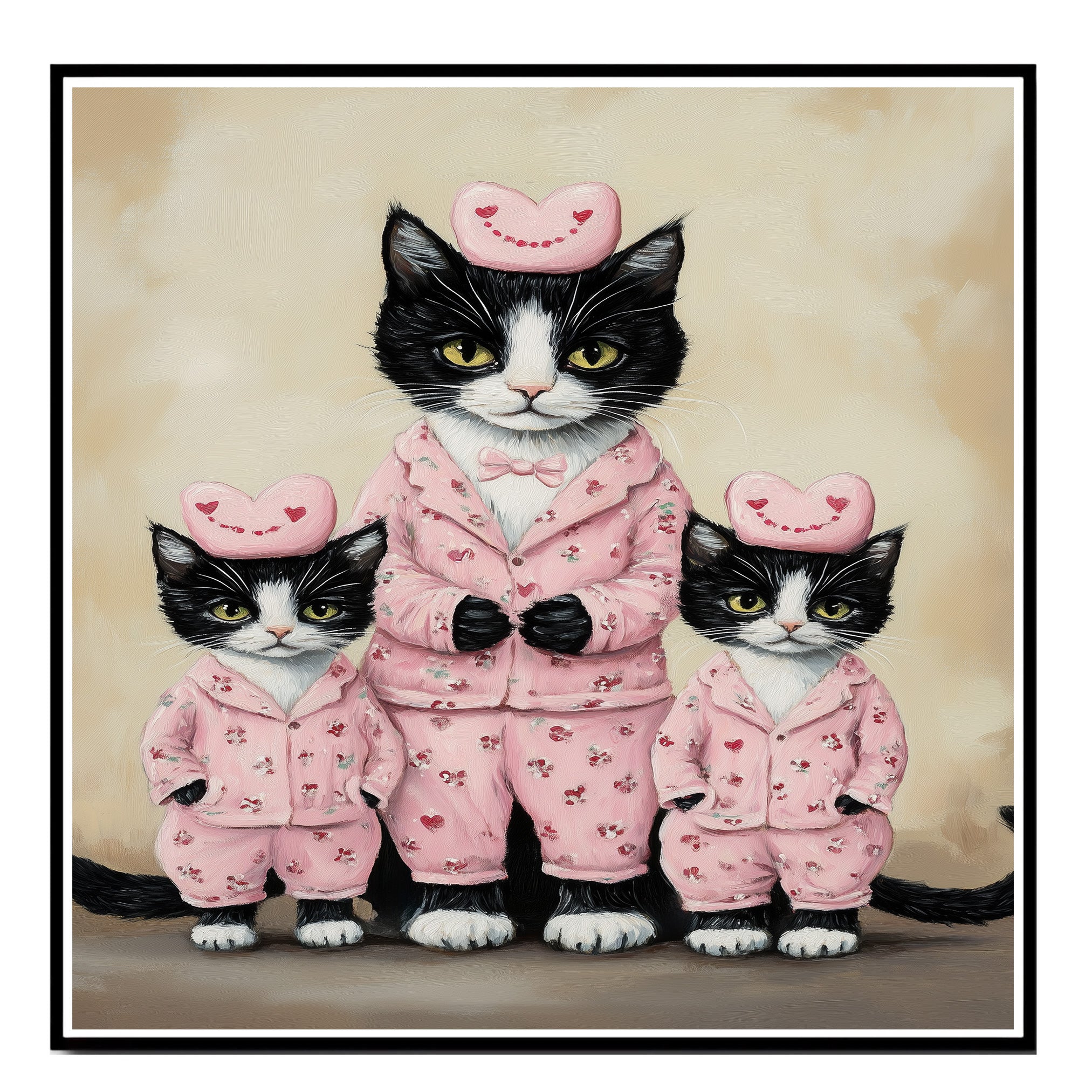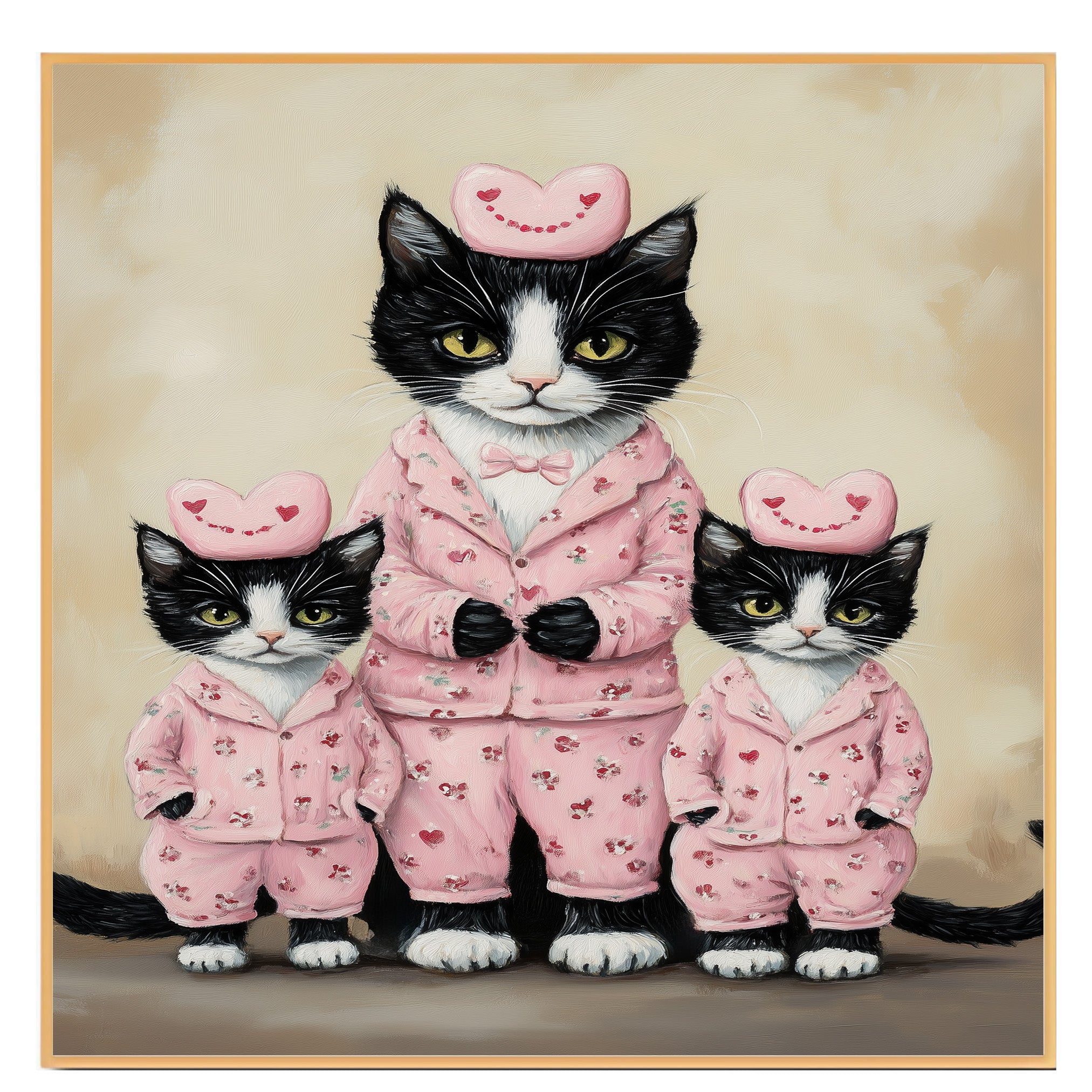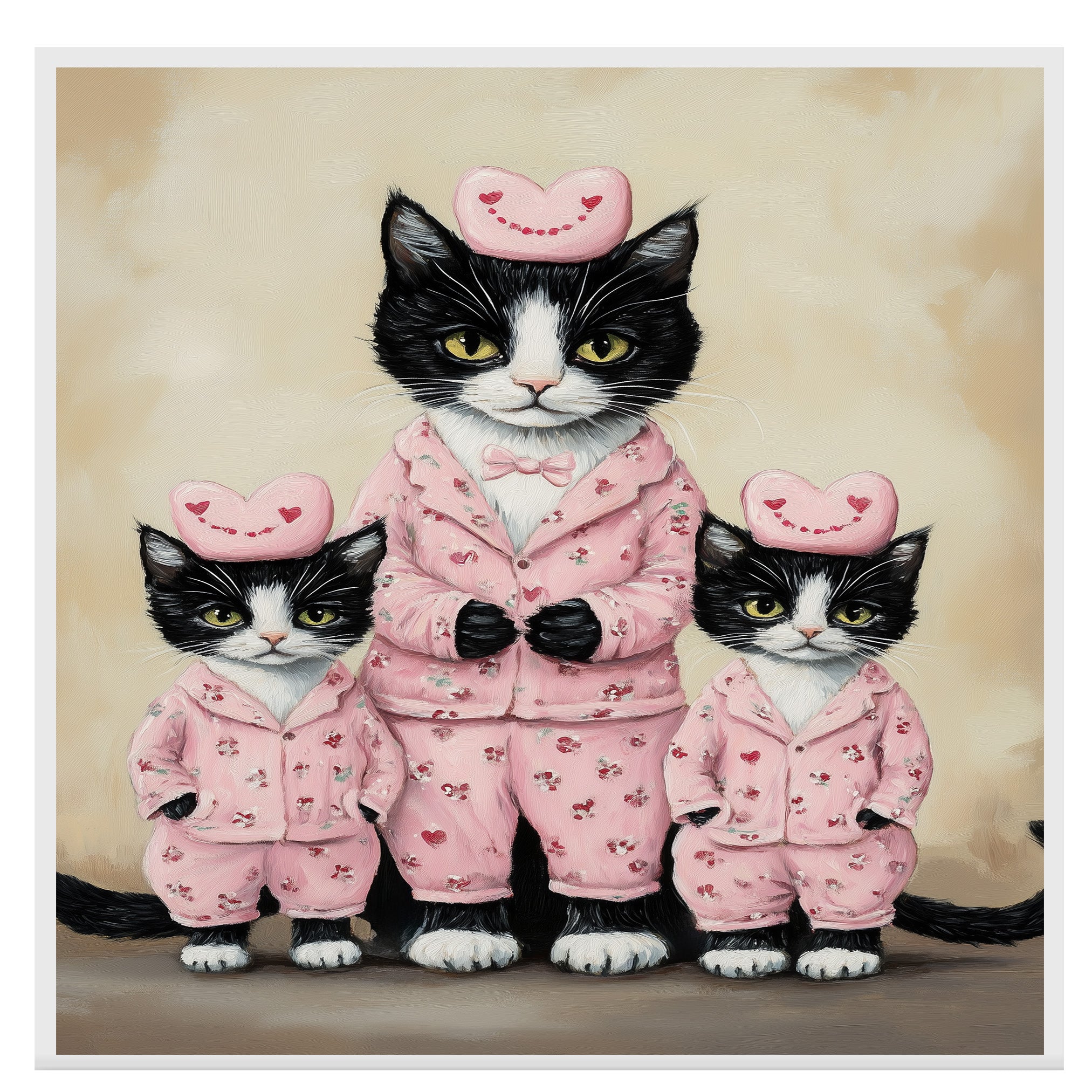 Celebrate joy and family with this vibrant oil painting of a tuxedo cat mother and her three kittens dressed in rainbow-themed outfits. Surrounded by blooming roses and colorful hearts, the artwork bursts with love, color, and whimsy. Ideal for cat lovers, pride-inspired decor, or anyone who enjoys expressive and uplifting animal art. A perfect gift or statement piece that adds cheerful character to any room.