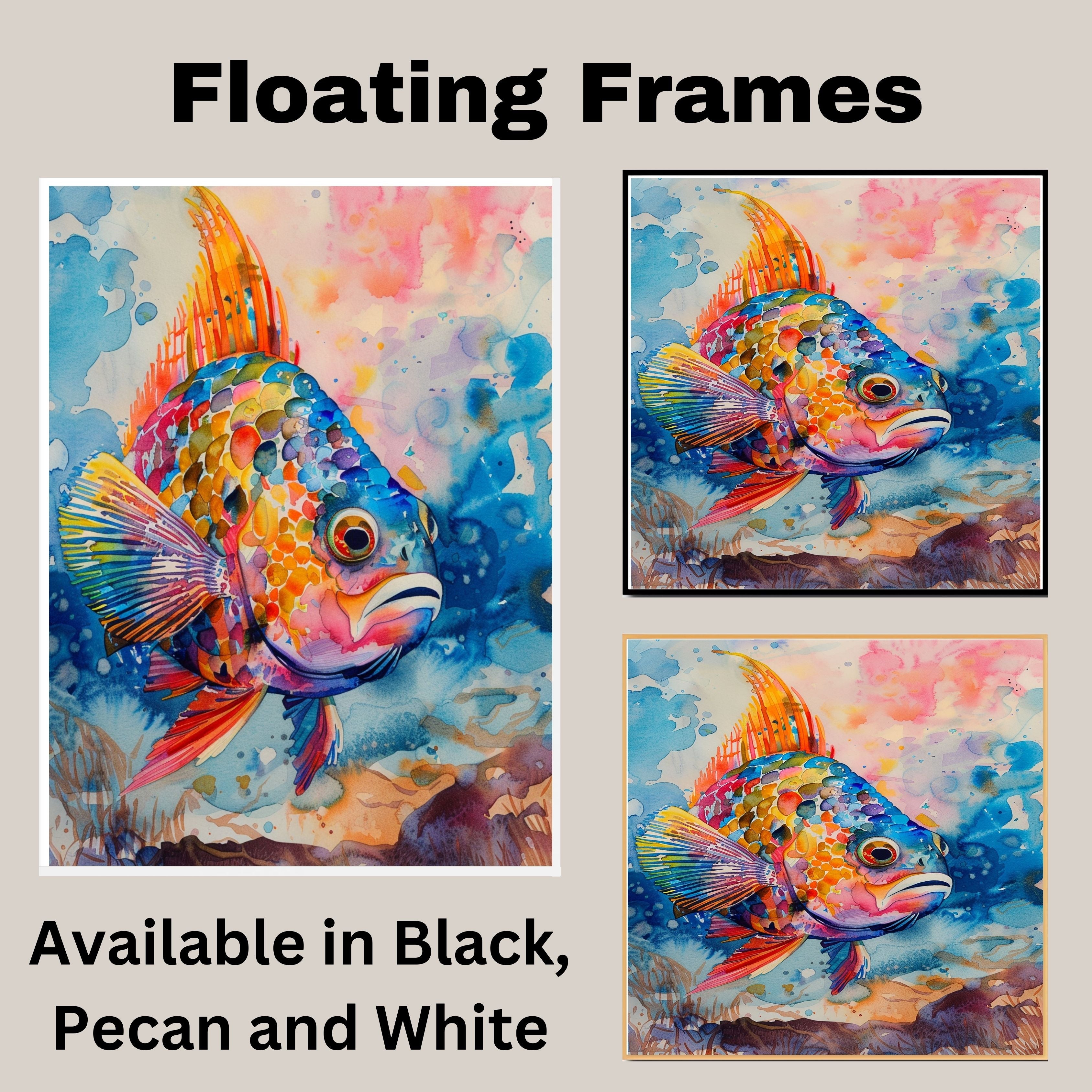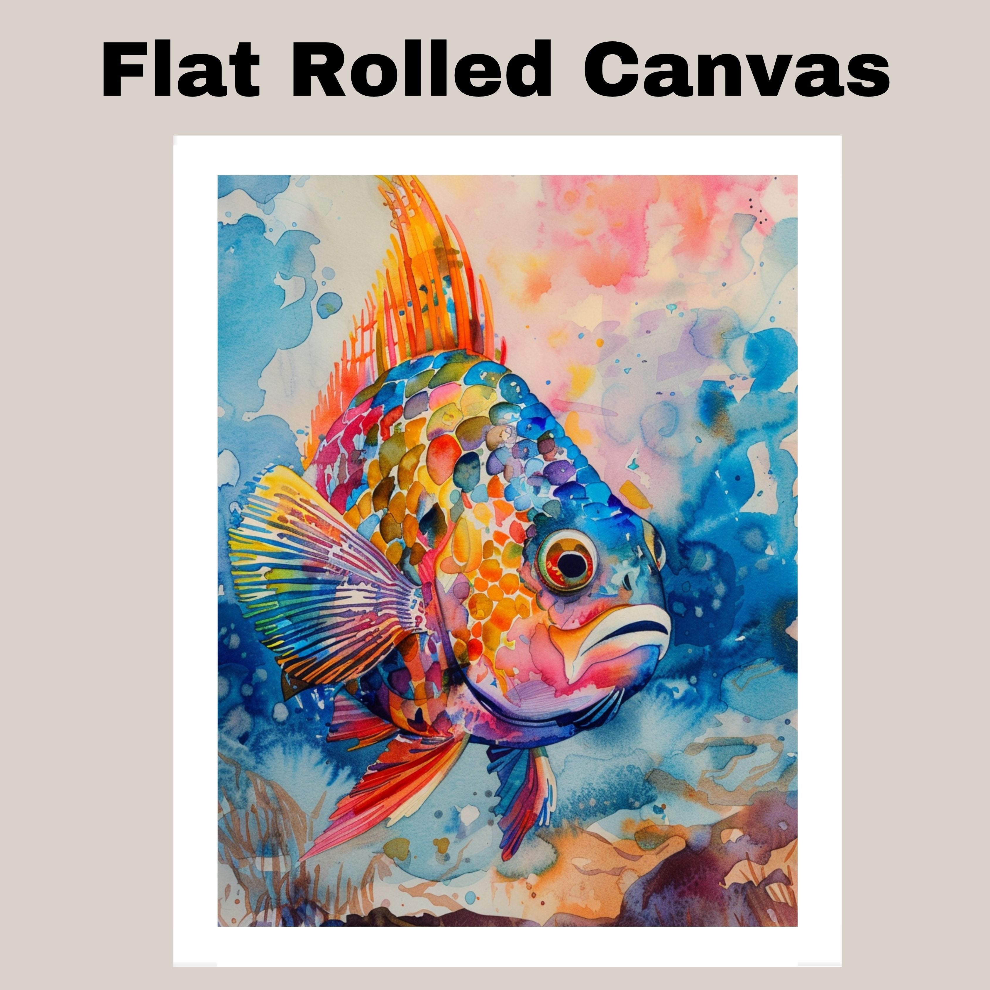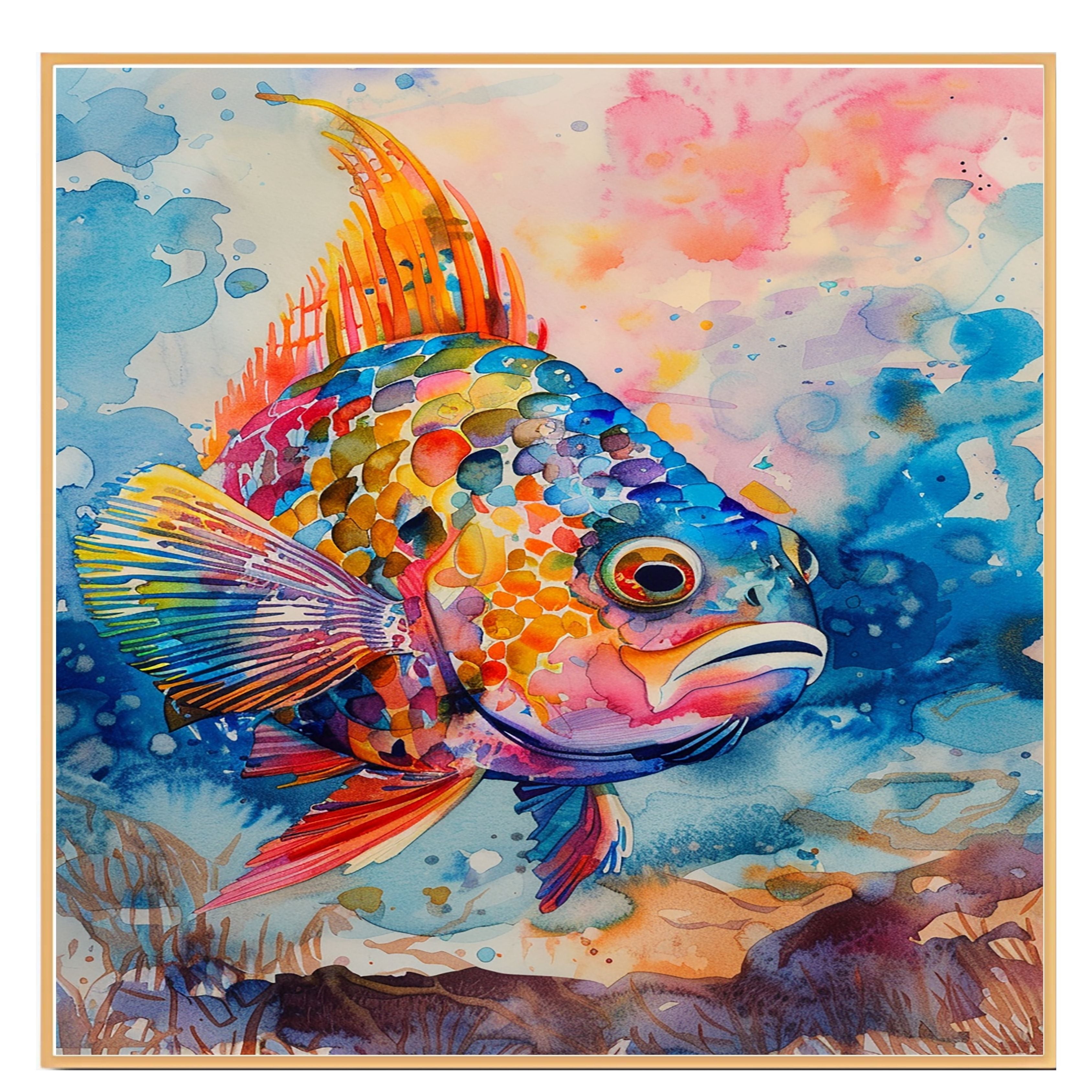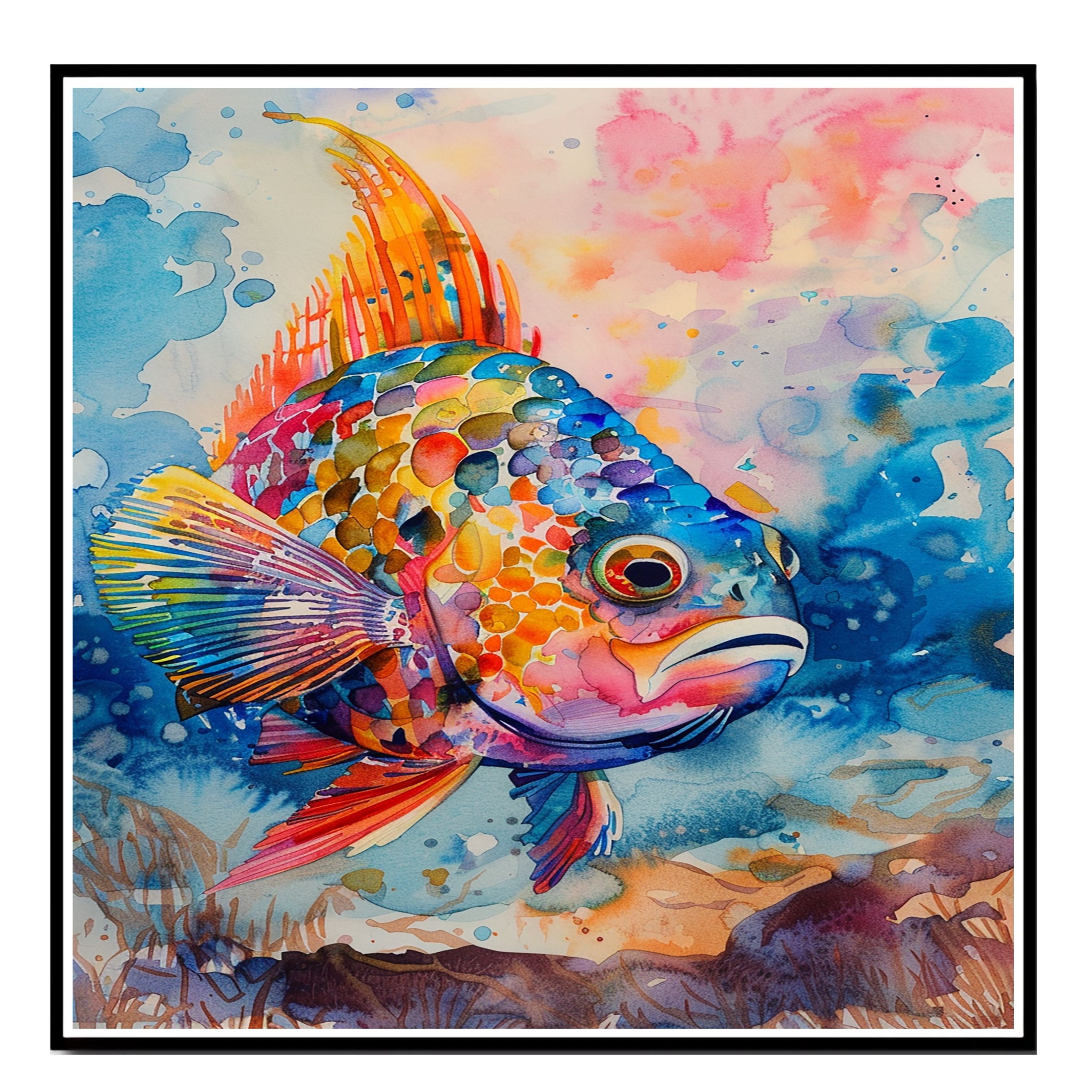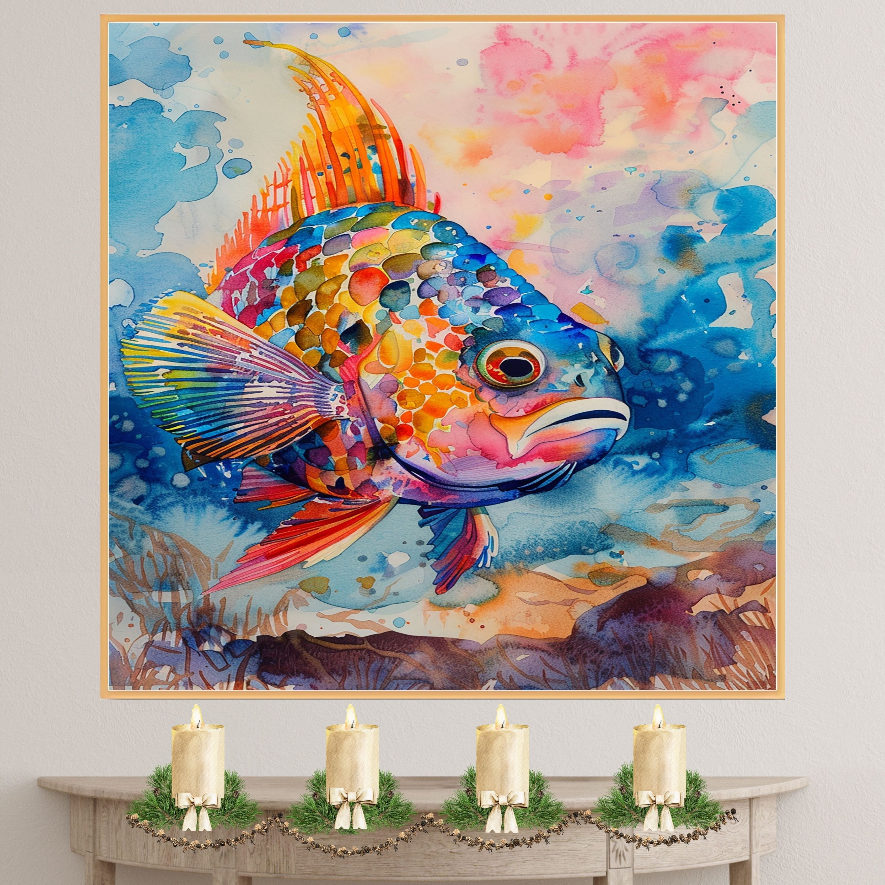 Bring an explosion of color and sea life into your space with this stunning watercolor fish close-up. Featuring rainbow-colored fins and shimmering scales in vivid detail, this artwork blends natural beauty with abstract expression. Perfect for beach, coastal, or marine-themed decor.