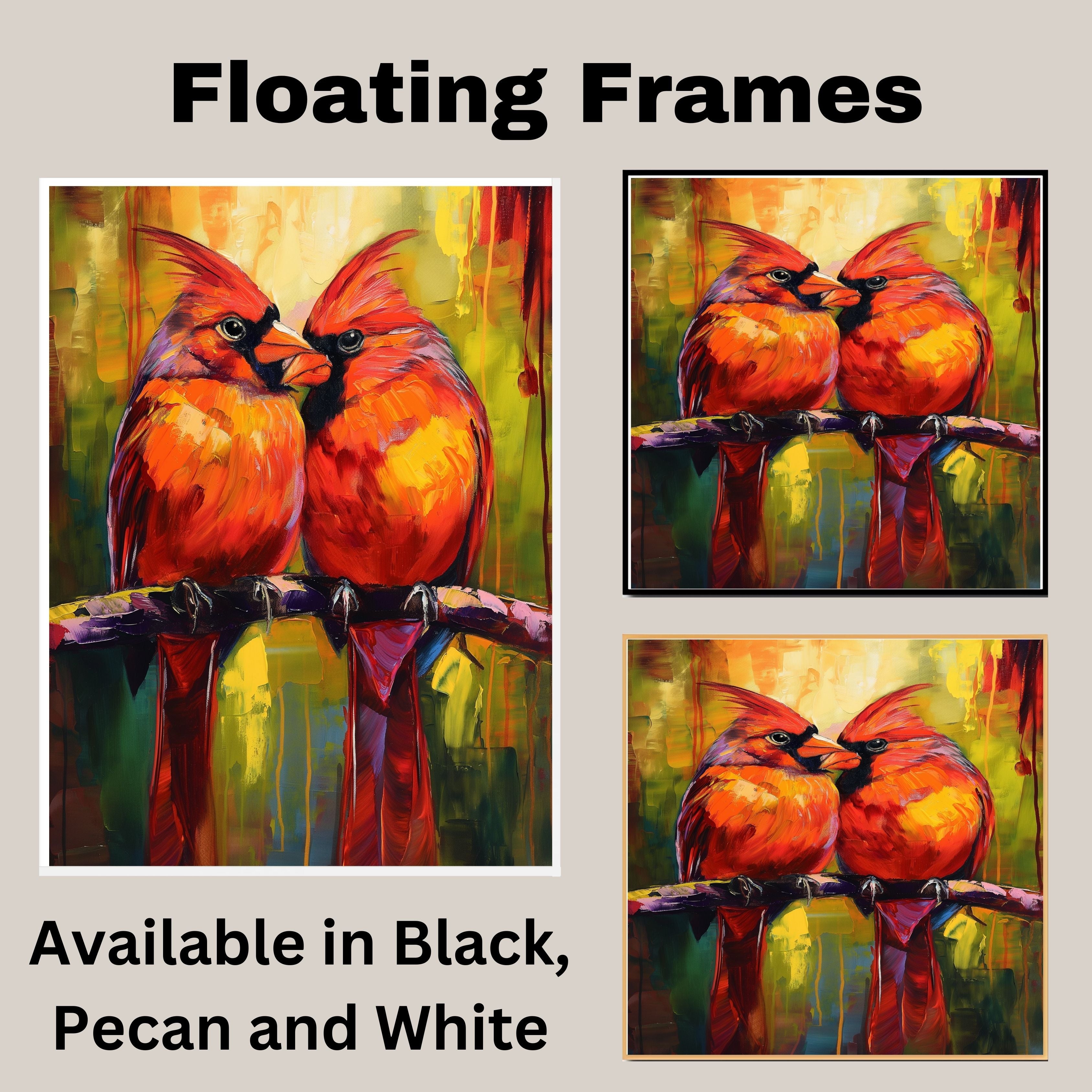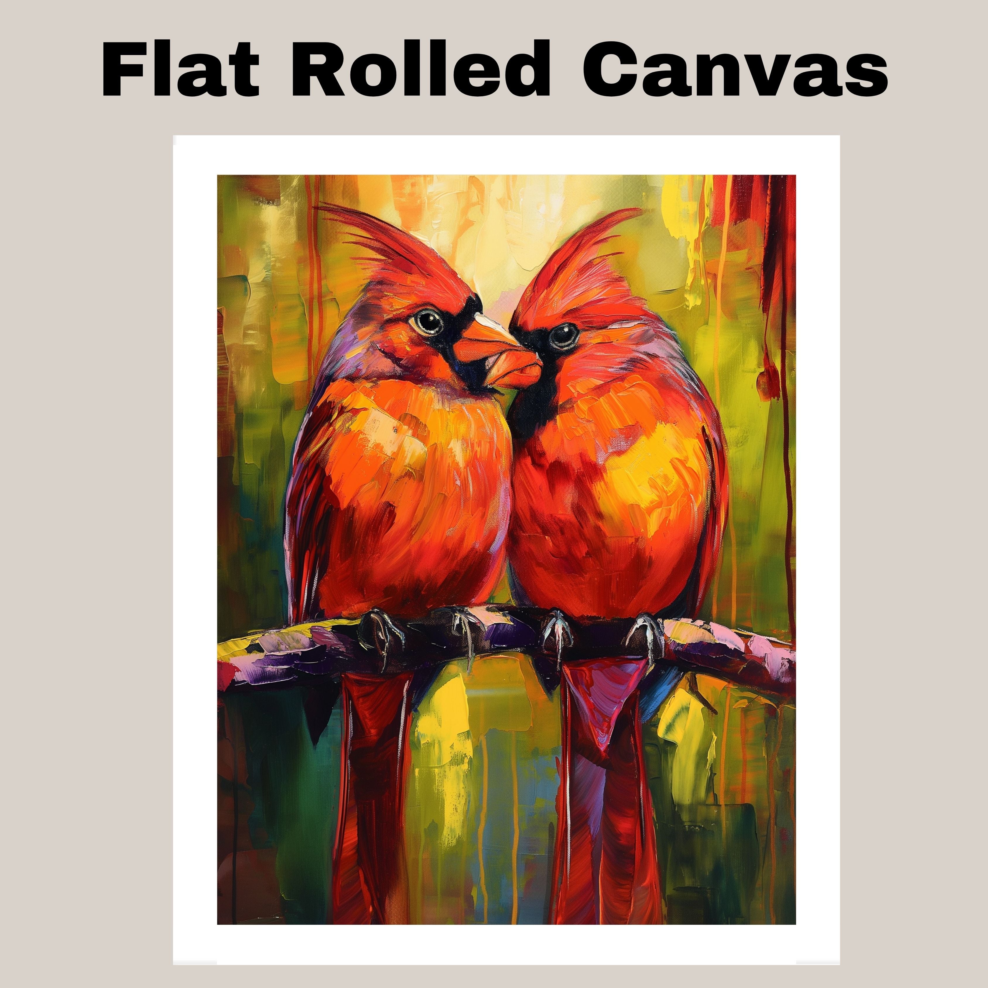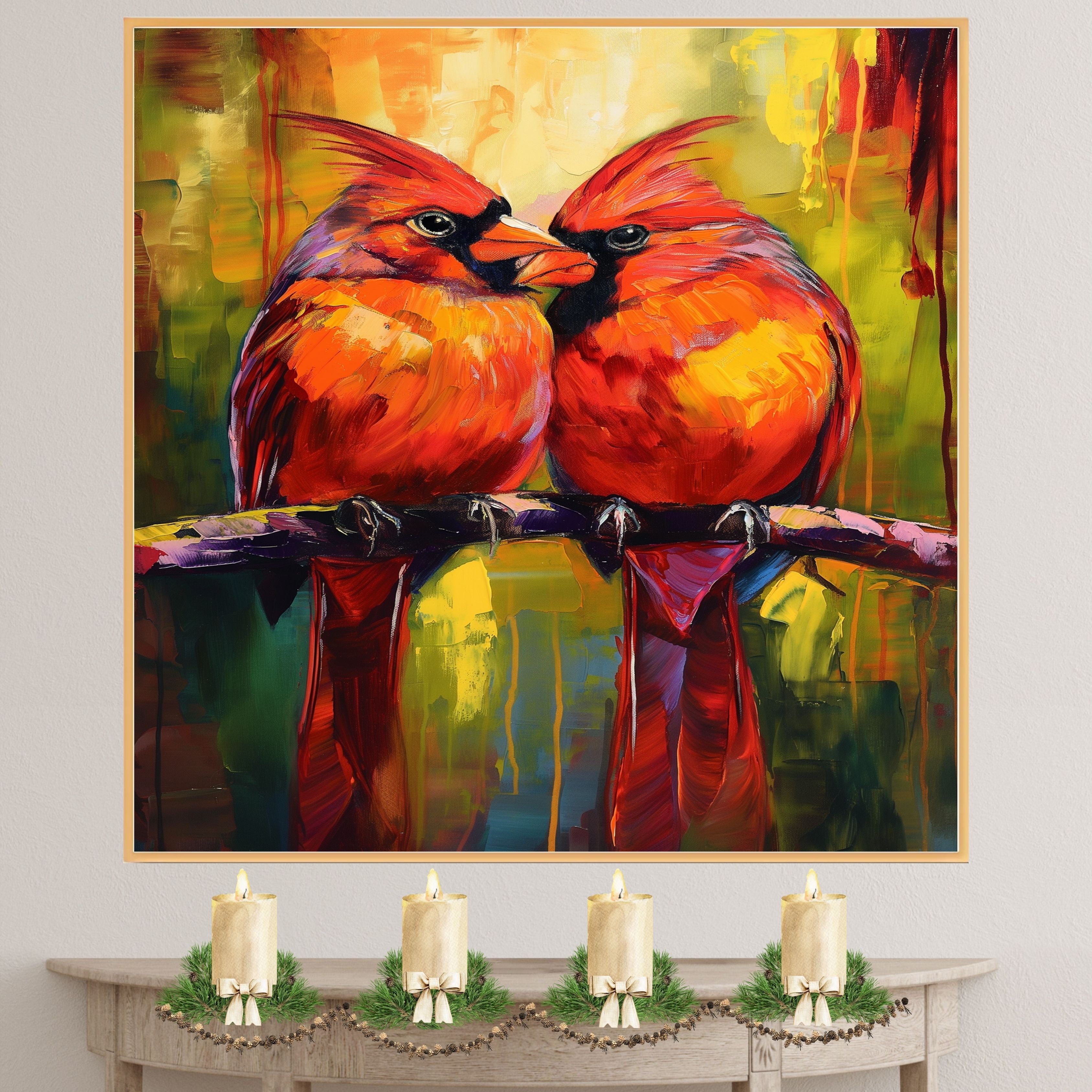 Contemporary Red Cardinal Pair – Artistic Nature-Inspired Painting with Abstract Background and Dripping Color Details on Ready to Hang 1.5" Thick Canvas Wrap, Floating Framed Canvas, Flat Rolled Canvas