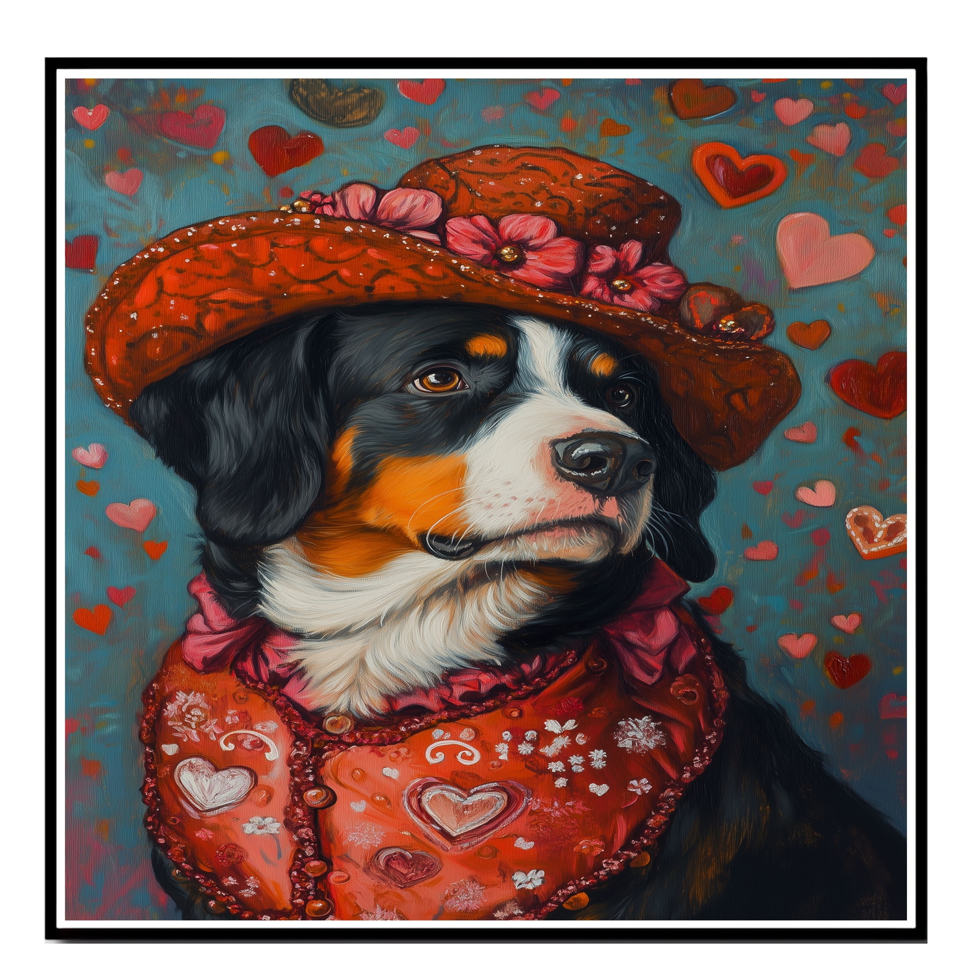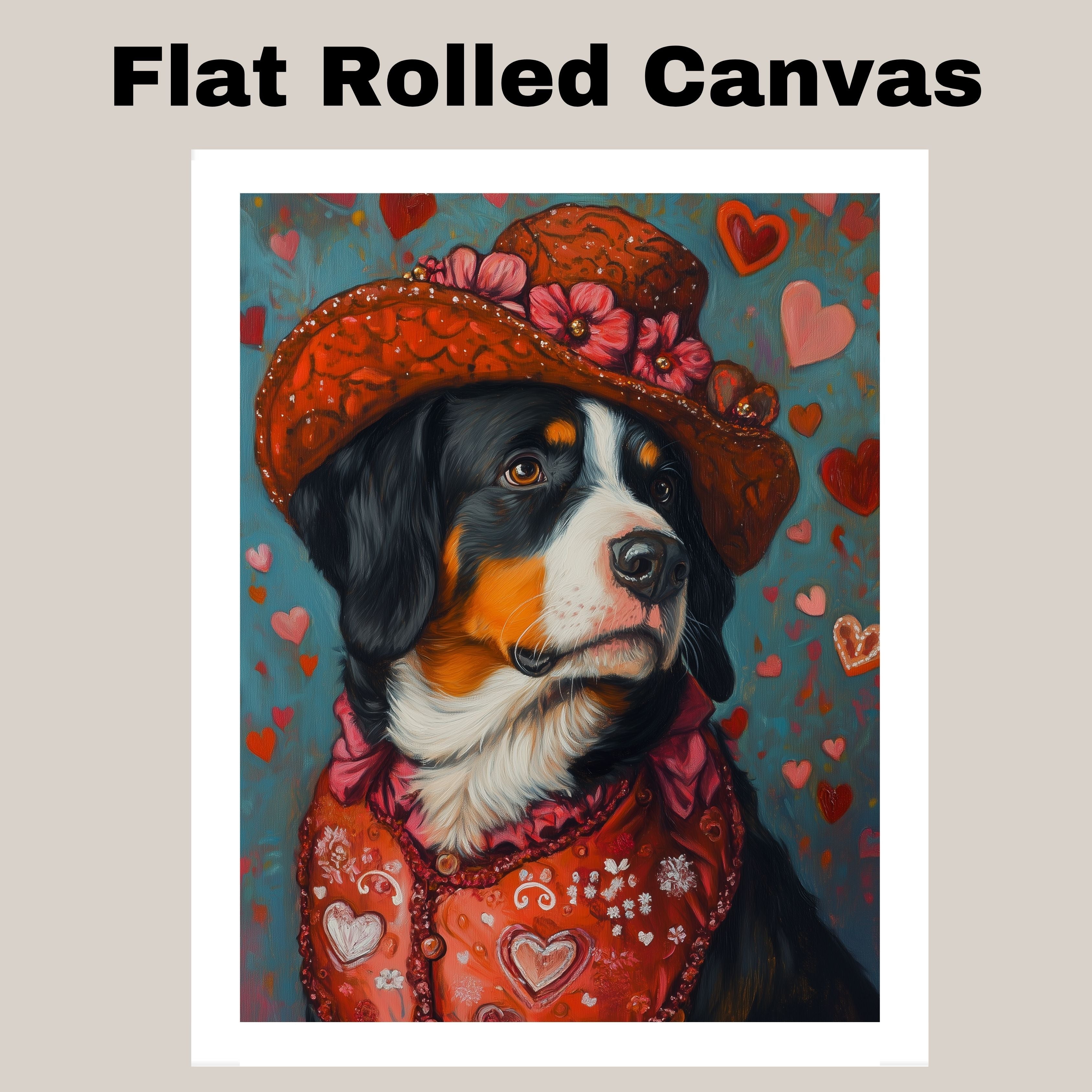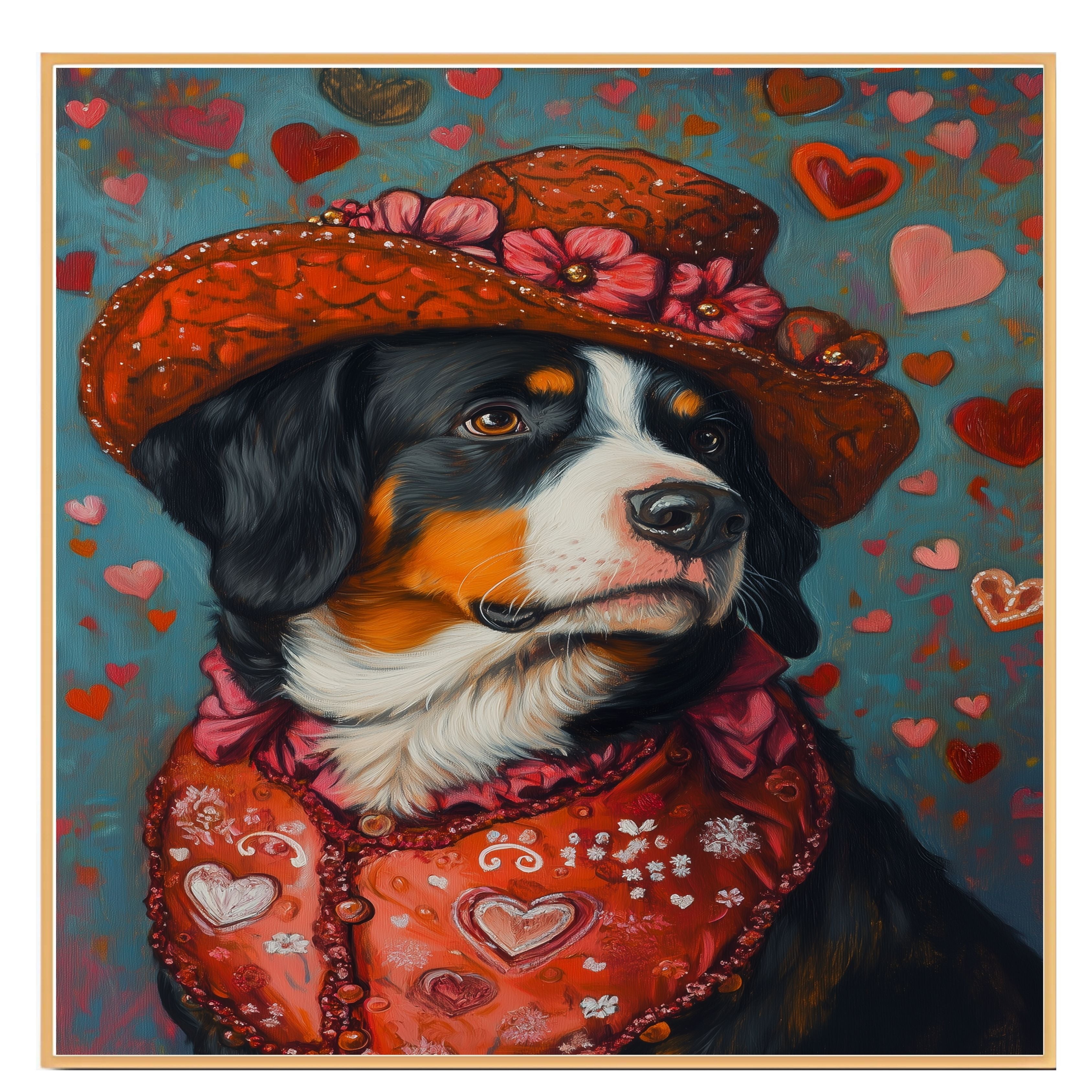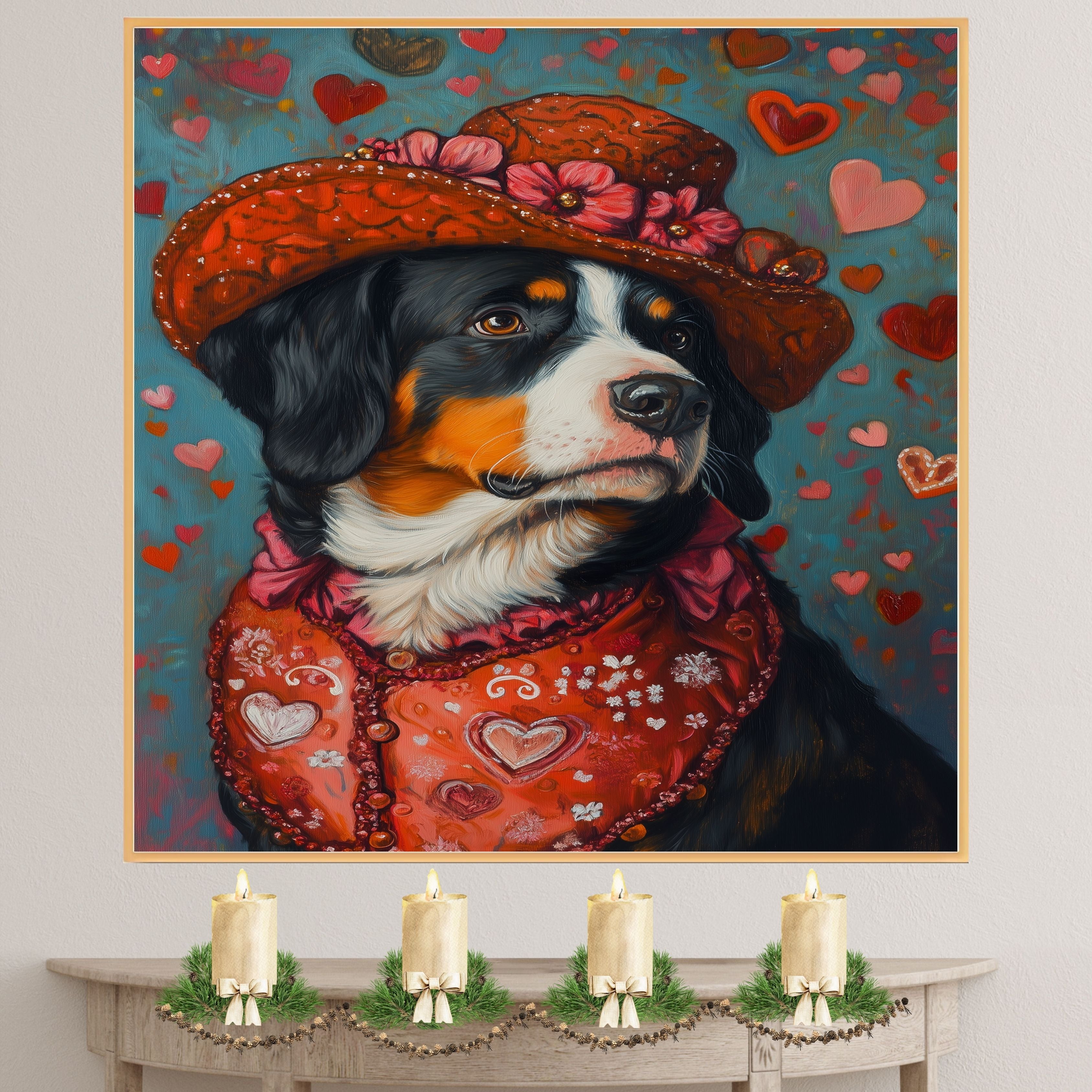 Our "Cozy Charm" Canvas captures the warmth and lovable nature of a Bernese Mountain Dog wrapped in a snug red scarf and hat, radiating seasonal joy and comfort. This heartwarming artwork beautifully highlights the breeds gentle and affectionate personality, making it a perfect addition to your winter decor. With rich, inviting colors and intricate details, this piece brings a touch of coziness to any space. Available on a 1.5" thick canvas wrap, floating framed canvas, or flat rolled canvas, its a wonderful gift for Bernese Mountain Dog lovers and those who cherish the magic of the season.