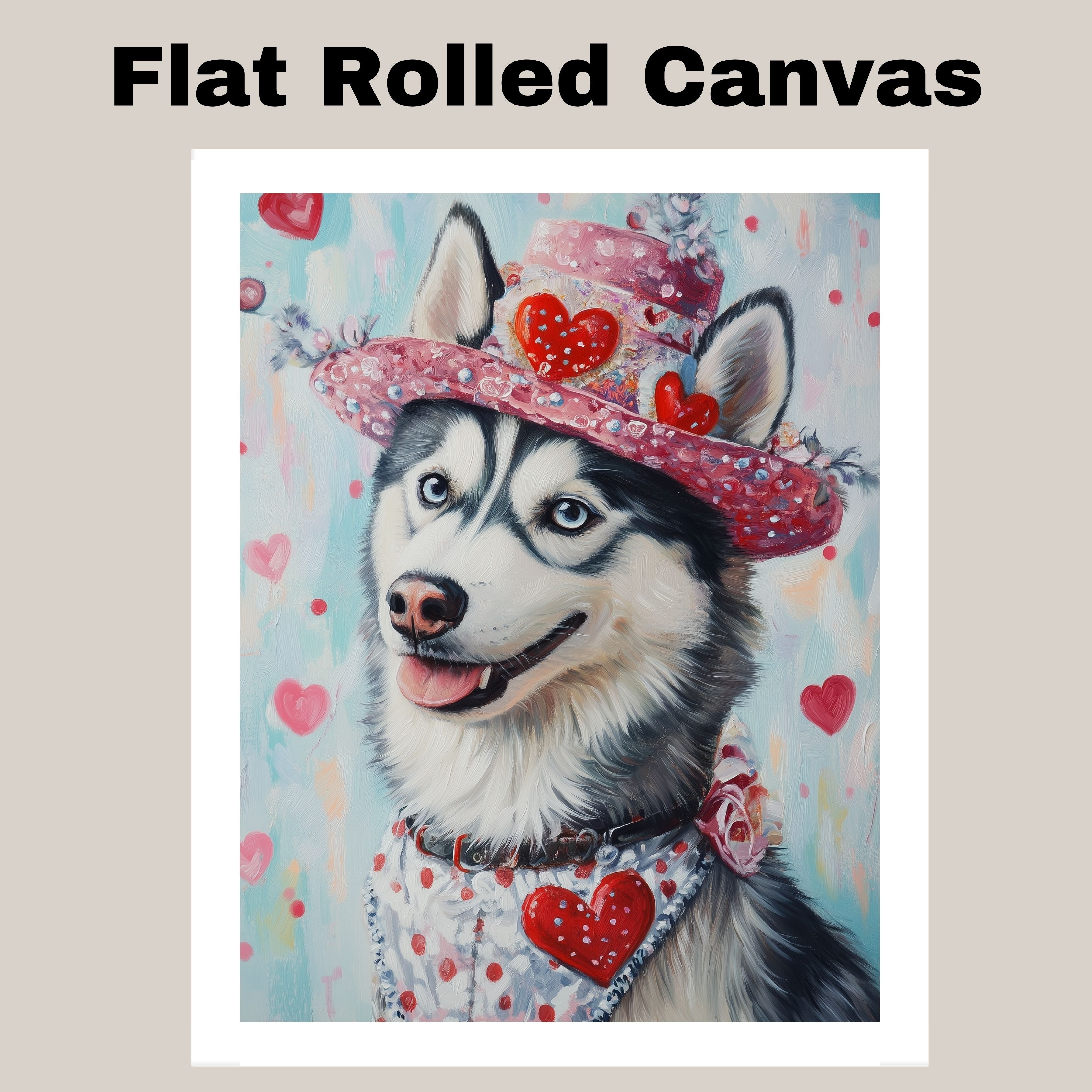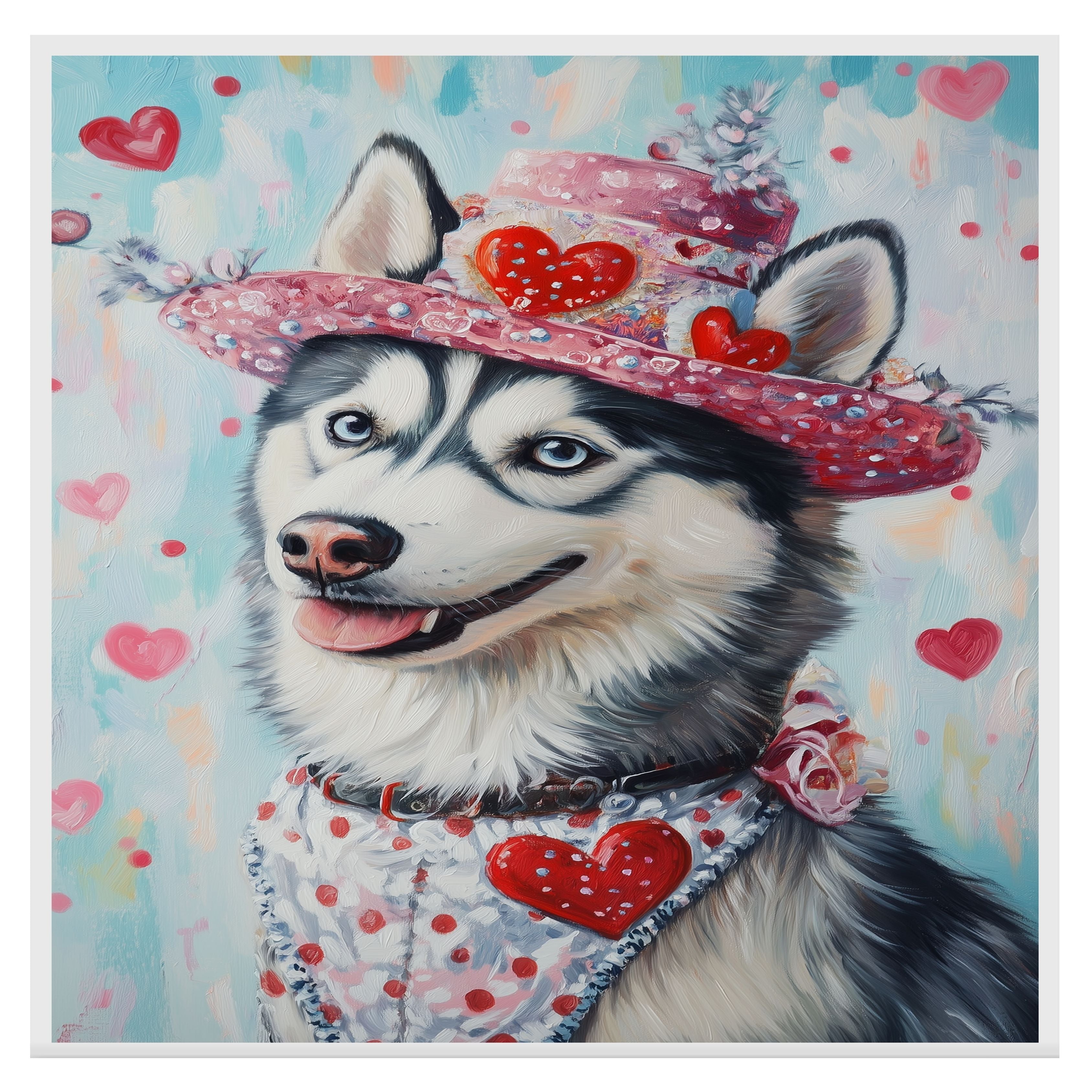 "Cozy Elegance" Canvas showcases the refined beauty of a Siberian Husky wrapped in a charming pink scarf and matching hat, exuding warmth and sophistication. This delightful portrait captures the gentle grace of the Husky, with soft hues and intricate details that make the artwork both heartwarming and stylish. Whether displayed as a seasonal accent or a timeless statement piece, this canvas brings a touch of cozy charm to any space. Available on a 1.5" thick canvas wrap, floating framed canvas, or as a flat rolled canvas, its the perfect gift for dog lovers and those who appreciate elegant, winter-inspired art.