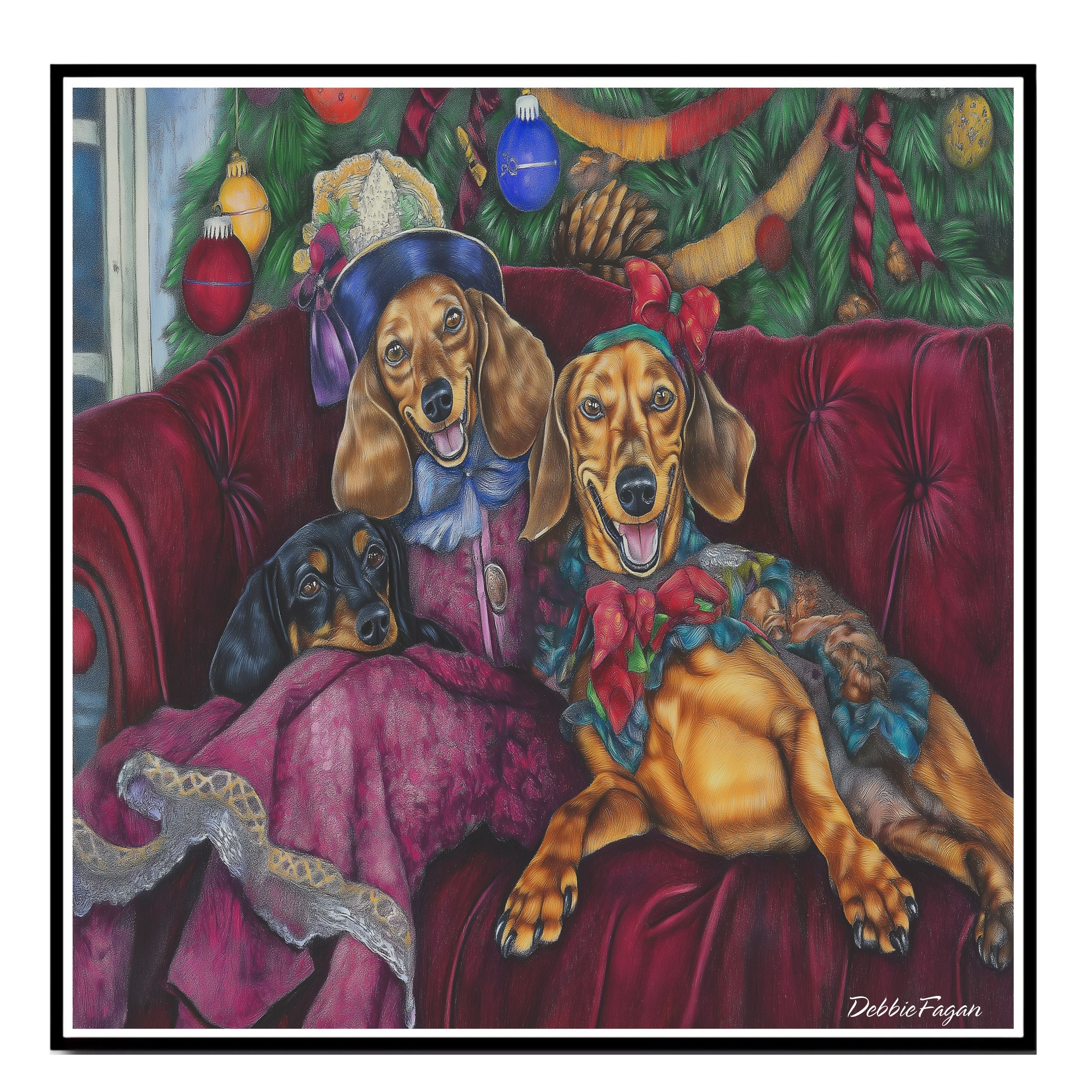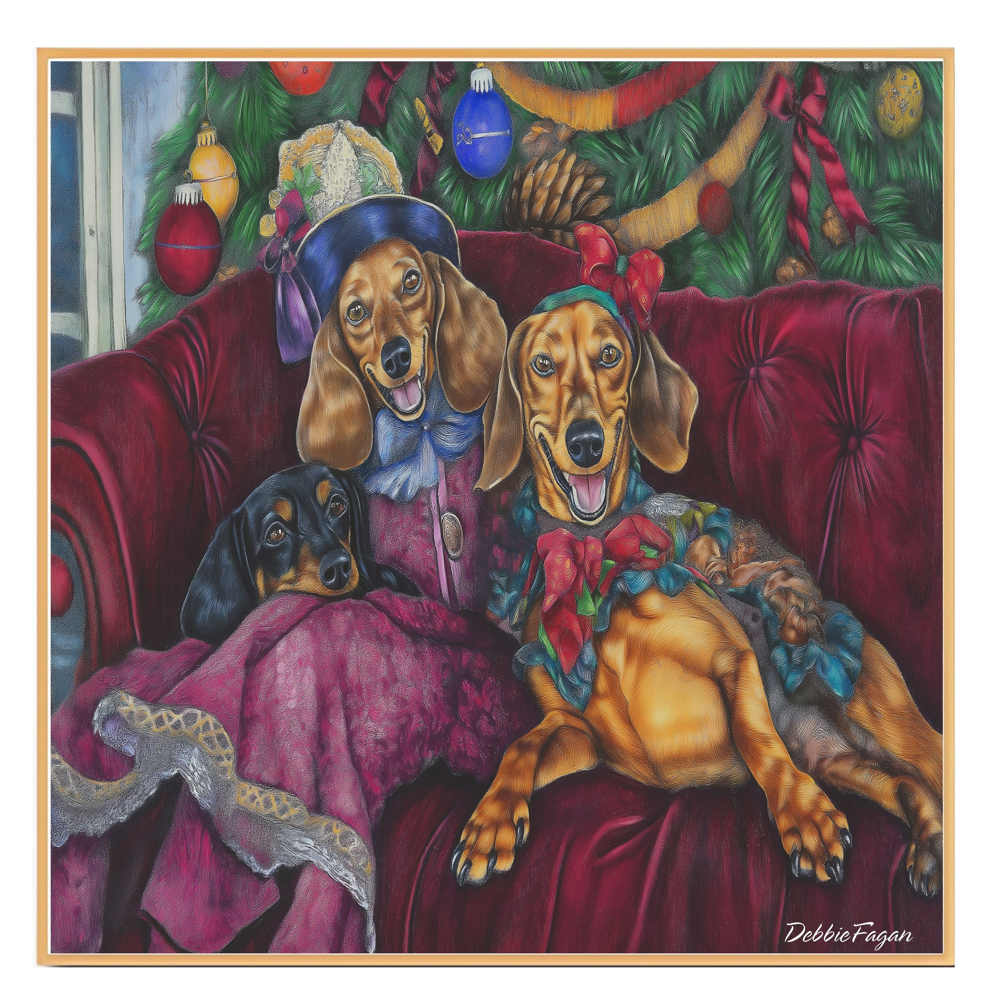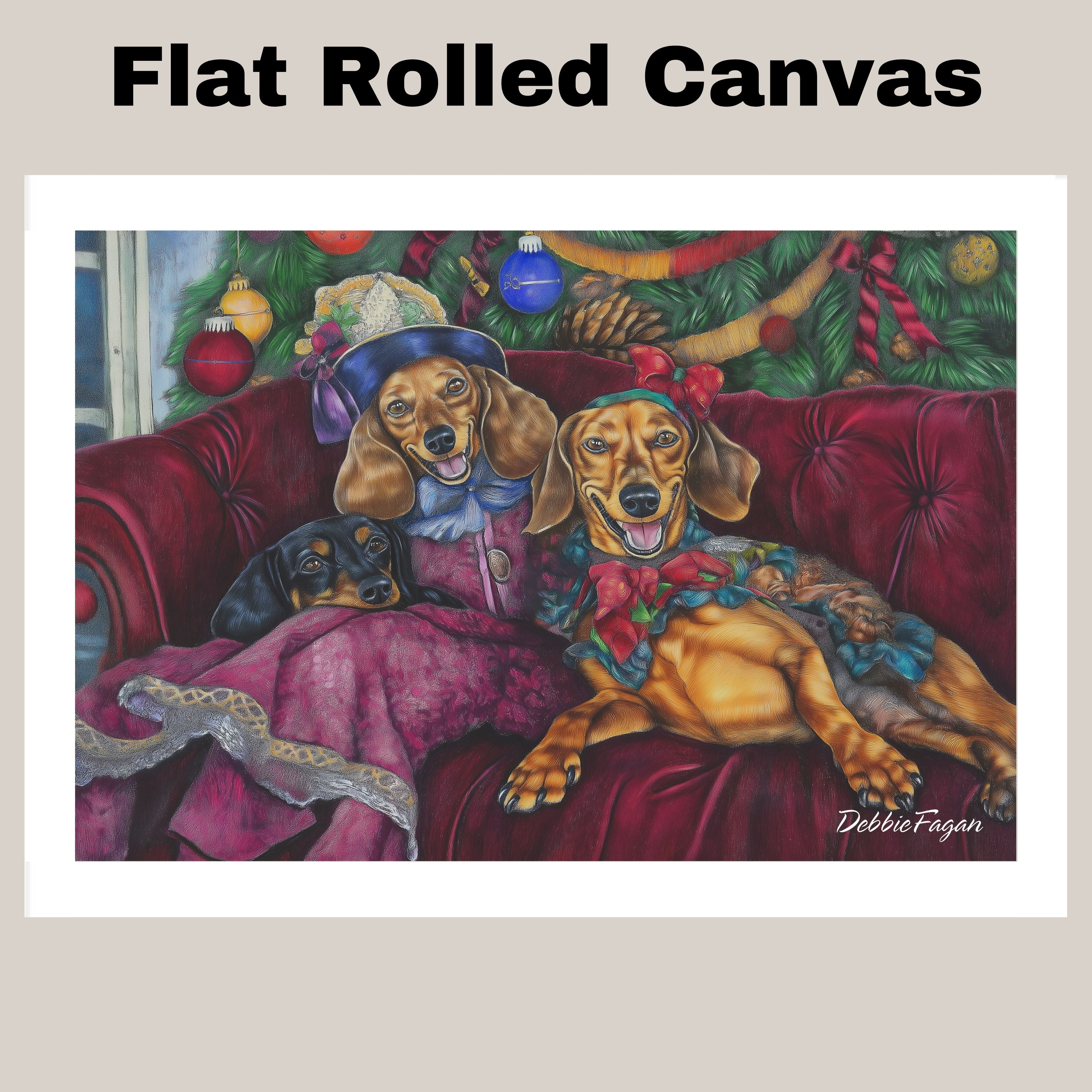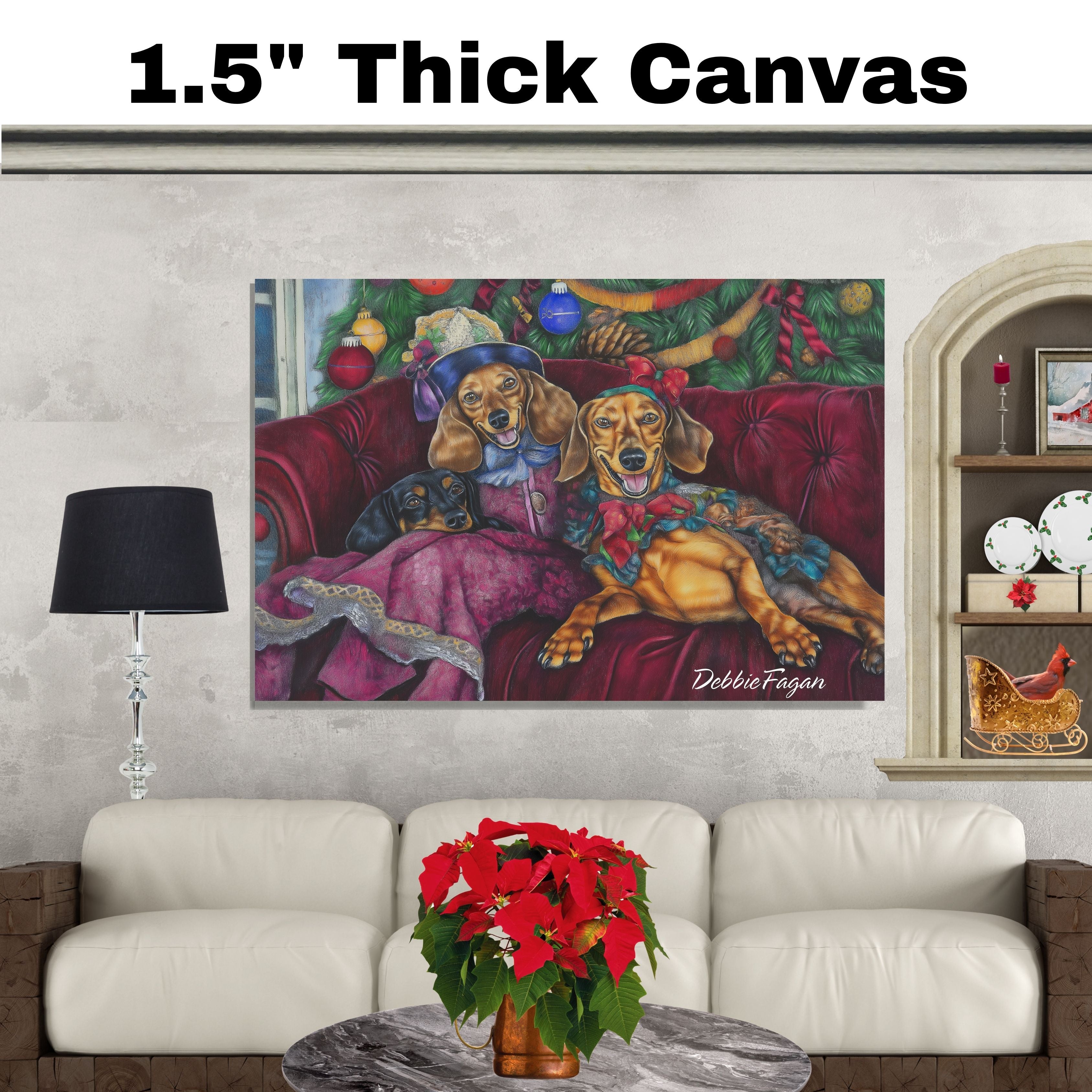 Our Classy in Victorian Elegance Dachshund Christmas Canvas adds a touch of festive sophistication to your space, featuring charming Dachshund dogs dressed in vintage Victorian attire against a timeless holiday backdrop. Available on a 1.5" thick canvas wrap, floating framed canvas, or as a flat rolled canvas, this elegant artwork titled Classy in Victorian Elegance celebrates the holiday season with a delightful nod to classic style. With its captivating blend of historic charm and seasonal warmth, this piece is perfect for creating a unique, eye-catching focal point in any room, adding festive cheer and refined character to your holiday decor.