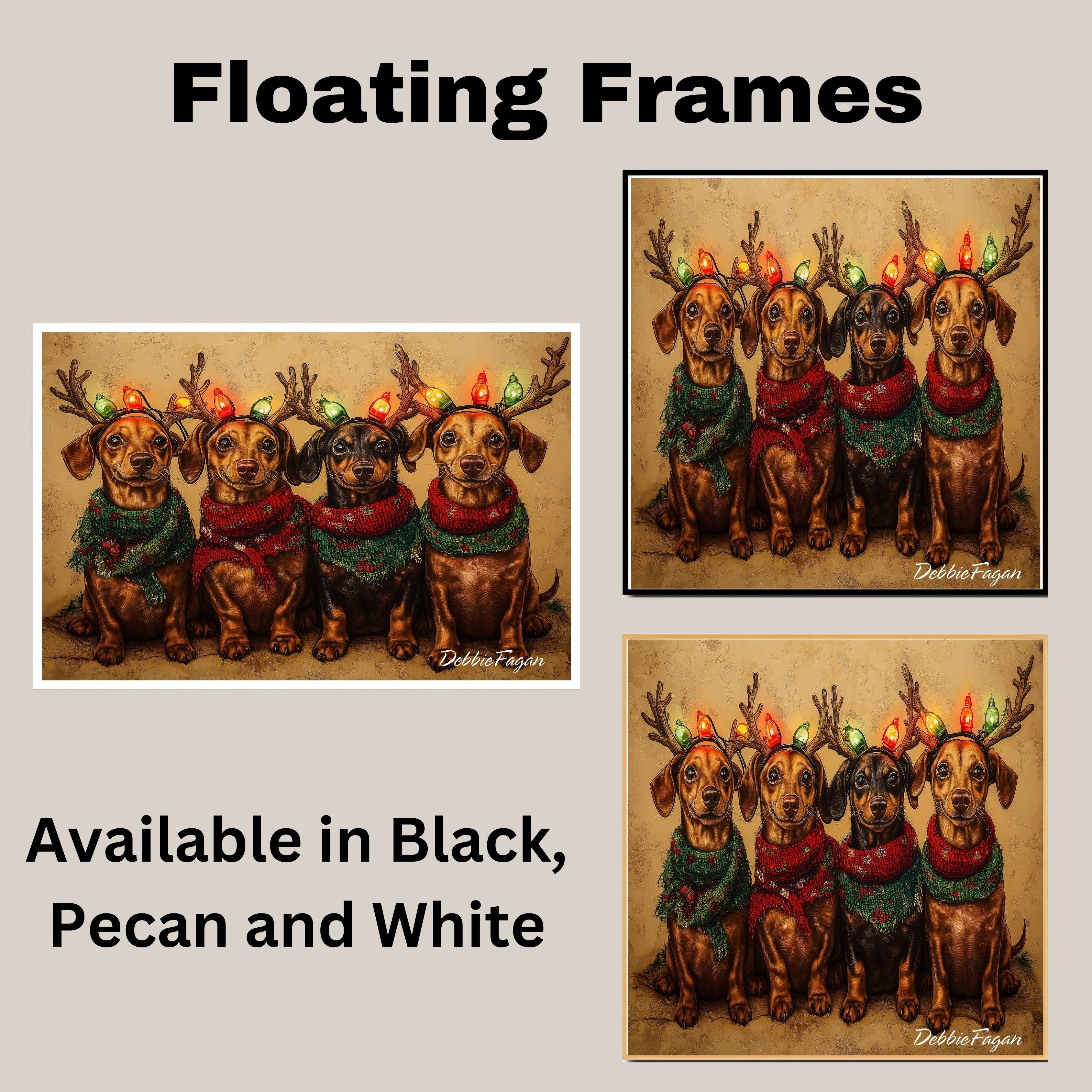 Our Rusty Rudolph Canvas adds a touch of holiday charm and warmth to your space, featuring a delightful Dachshund festively adorned in cozy scarves and antlers, nestled in a rustic winter scene. Available on a 1.5Ó thick canvas wrap, floating framed canvas, or as a flat rolled canvas, this charming artwork titled Rusty Rudolph captures the heartwarming spirit of the season with a touch of rustic elegance. With its playful, cozy vibe, this piece is perfect for adding cheer to your holiday decor and serves as a captivating focal point thats sure to bring smiles to all who see it.
