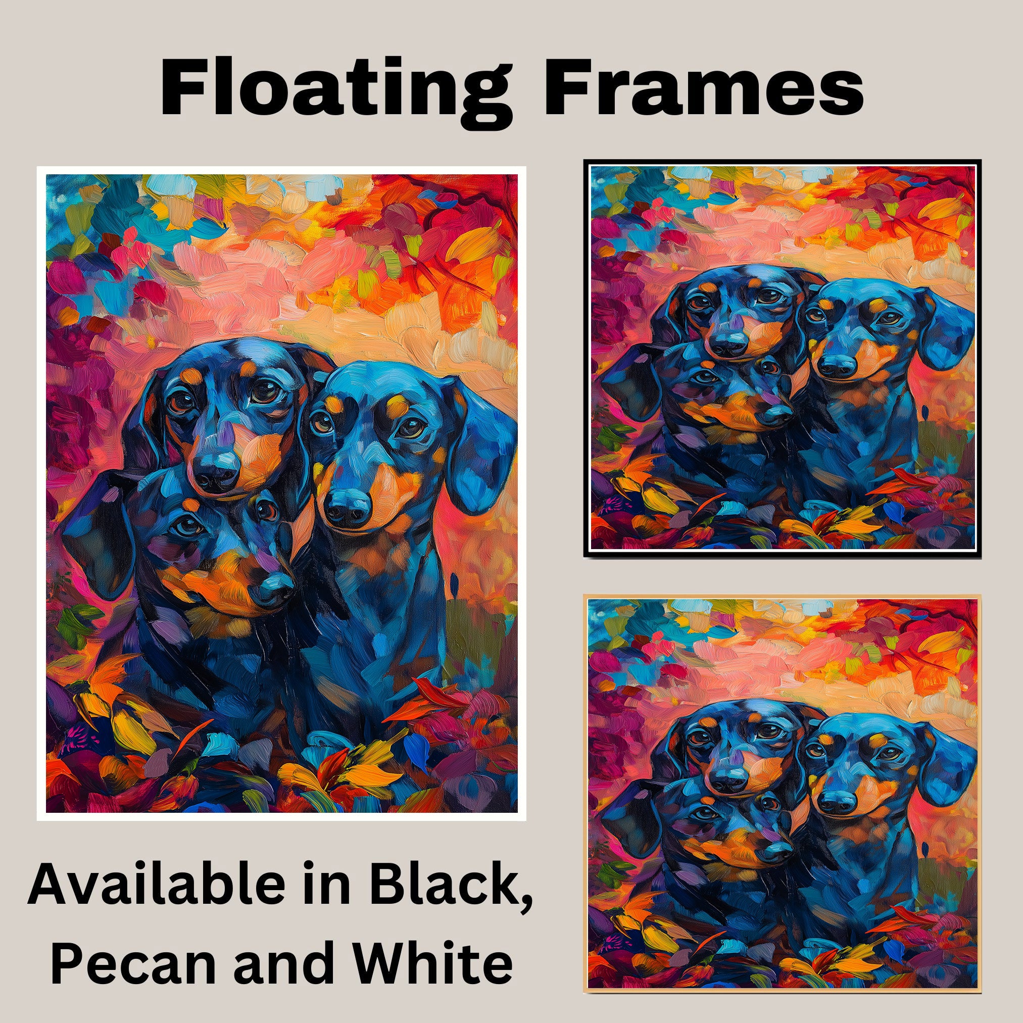 1.5" Thick Floating Framed Canvas: Available in Black, Pecan, and White Grain. Durable shrink-resistant frame. Comes with easy-to-install hanging kits, ready for immediate display.