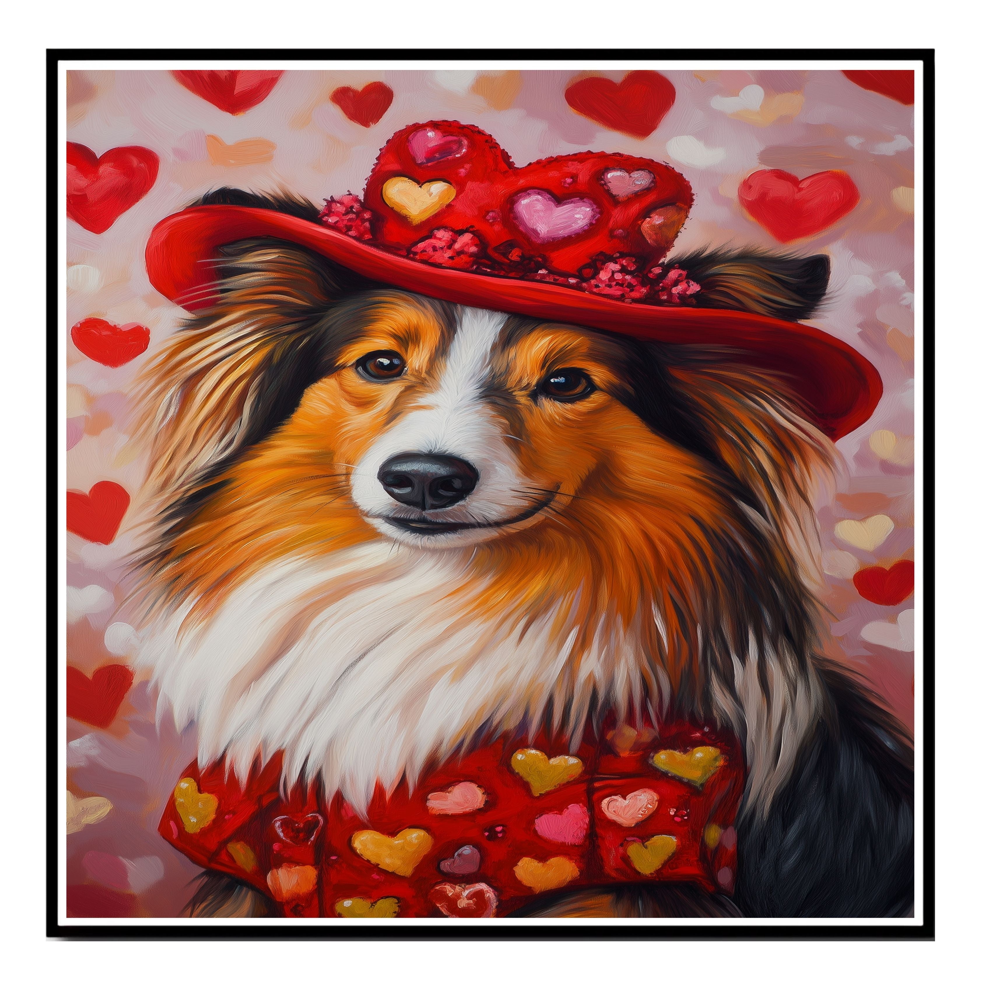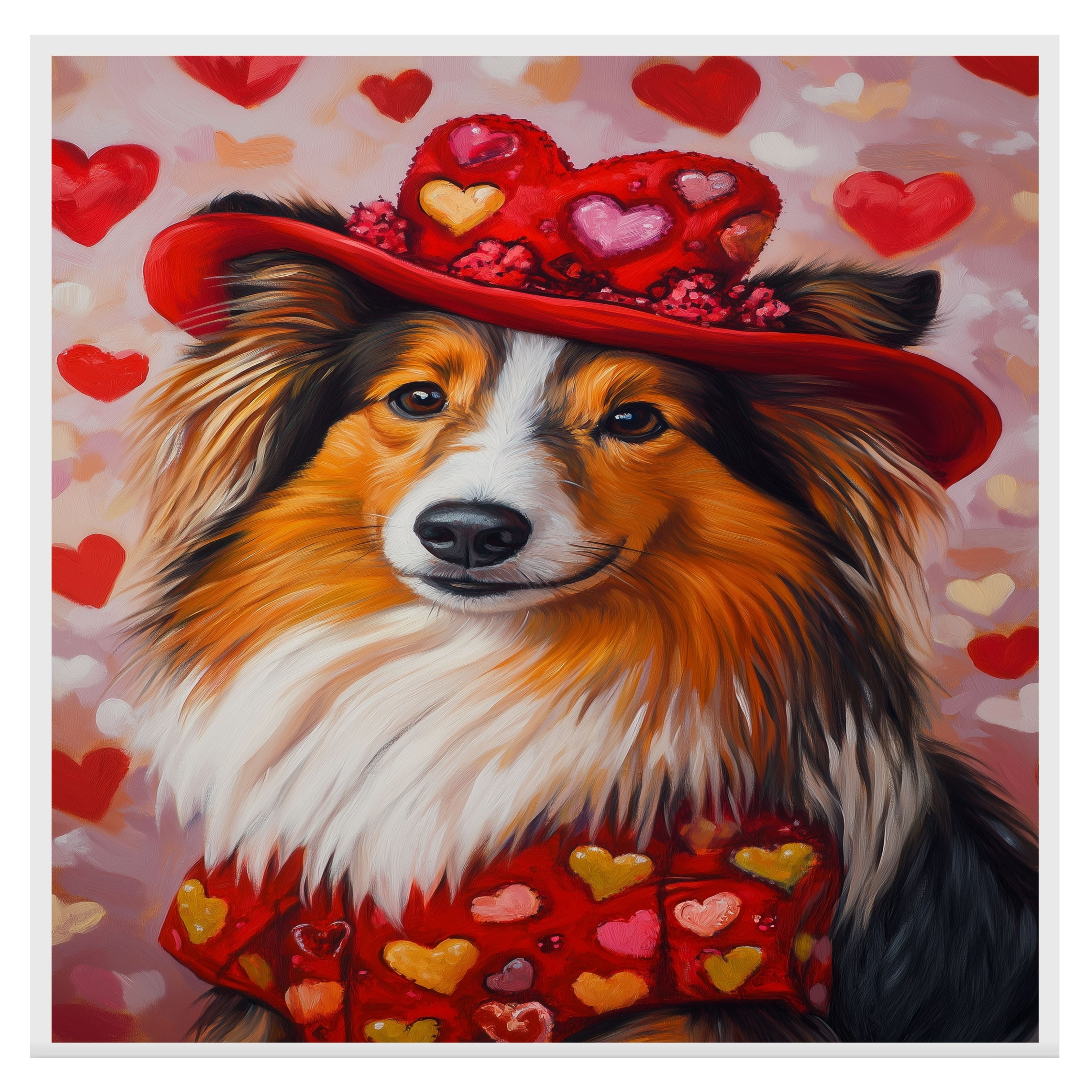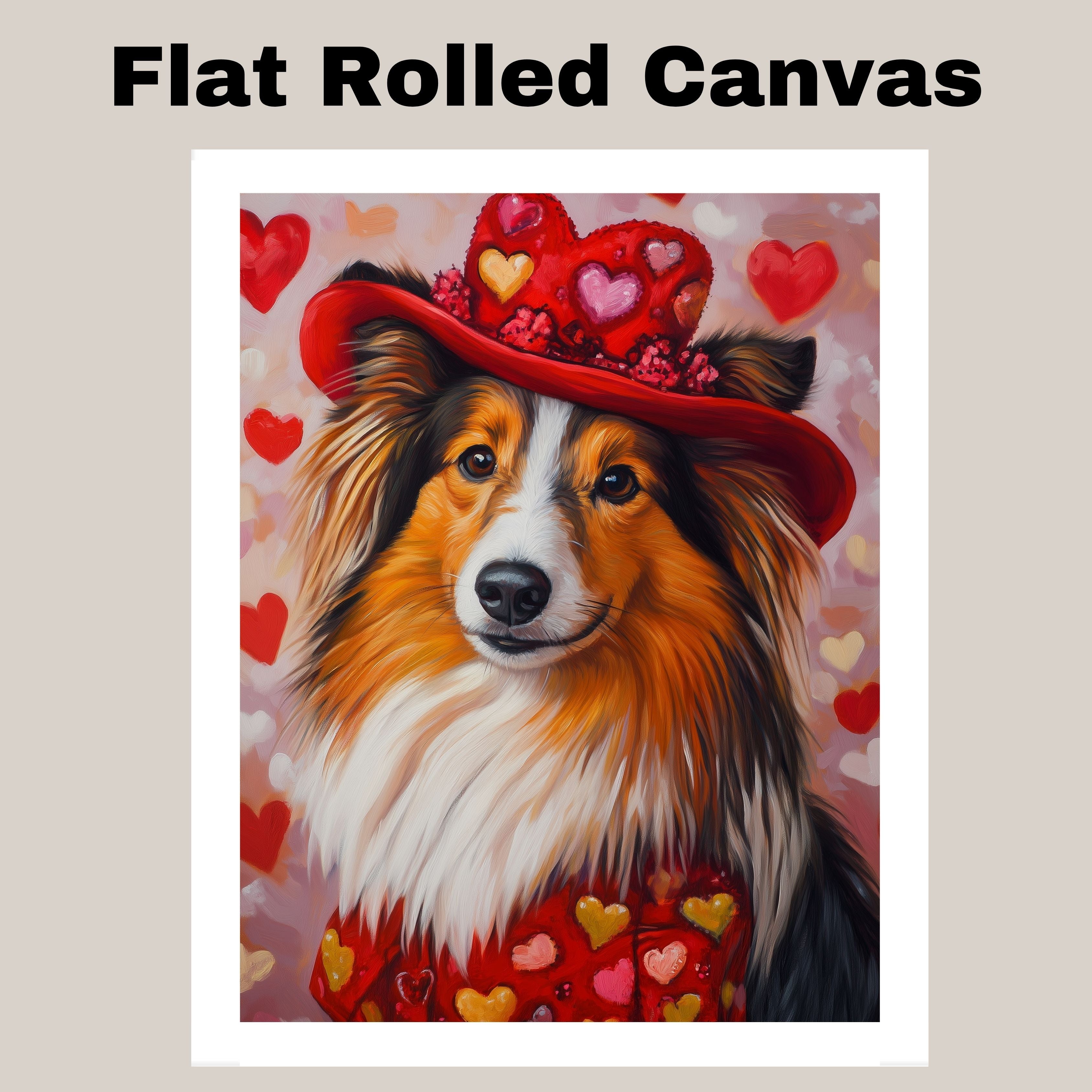 "Dapper Presence" Canvas showcases the refined elegance of a Shetland Sheepdog dressed in a distinguished red suit and matching hat, exuding sophistication and charm. This striking portrait captures the noble essence of the Sheltie, blending classic style with artistic detail. The rich red hues and exquisite textures make this artwork a standout piece, perfect for adding a touch of distinction to any space. Available on a 1.5" thick canvas wrap, floating framed canvas, or as a flat rolled canvas, this piece is ideal for dog lovers, art enthusiasts, and those who appreciate timeless, dapper style. A memorable and elegant gift for any occasion.