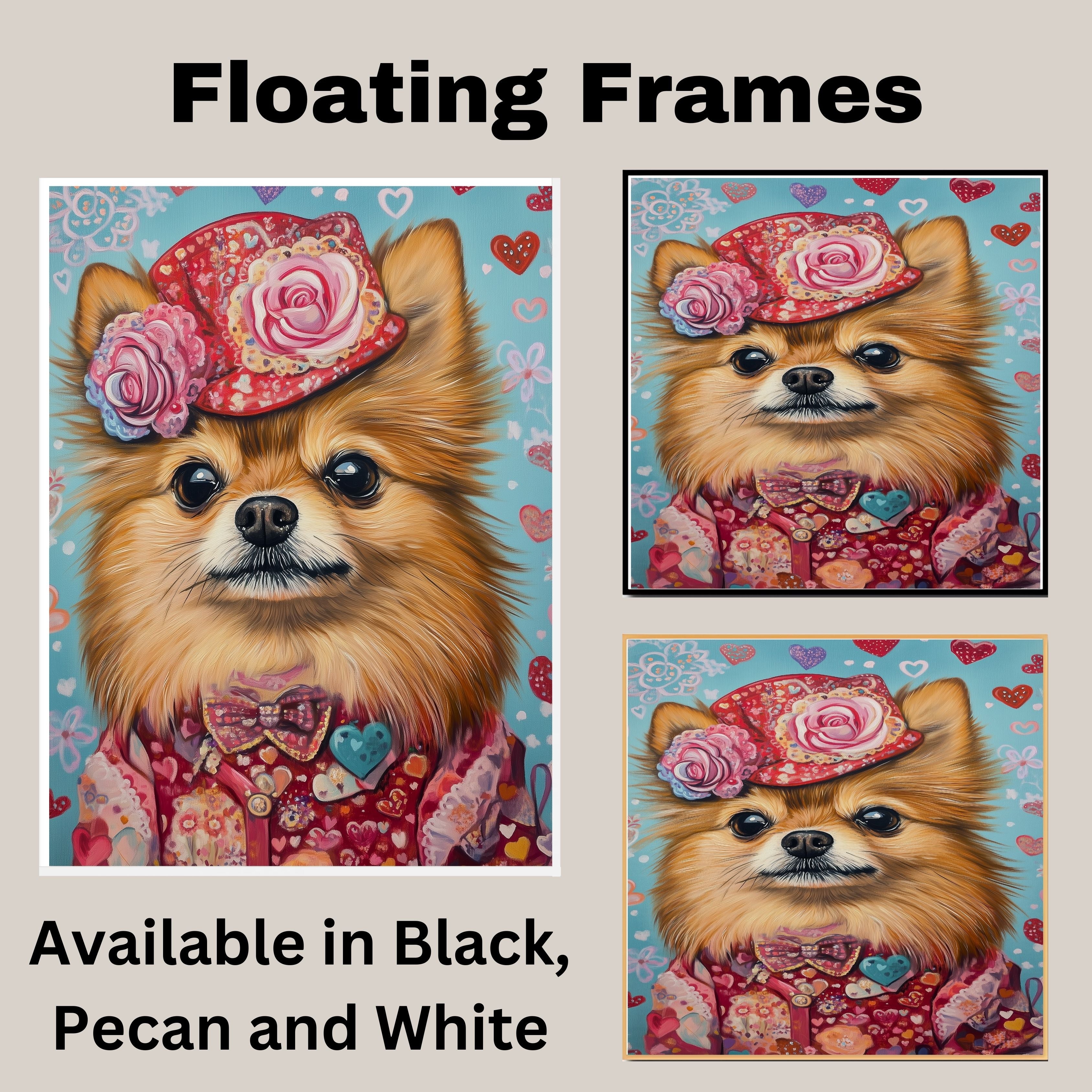 1.5" Thick Floating Framed Canvas: Available in Black, Pecan, and White Grain. Durable shrink-resistant frame. Comes with easy-to-install hanging kits, ready for immediate display.
