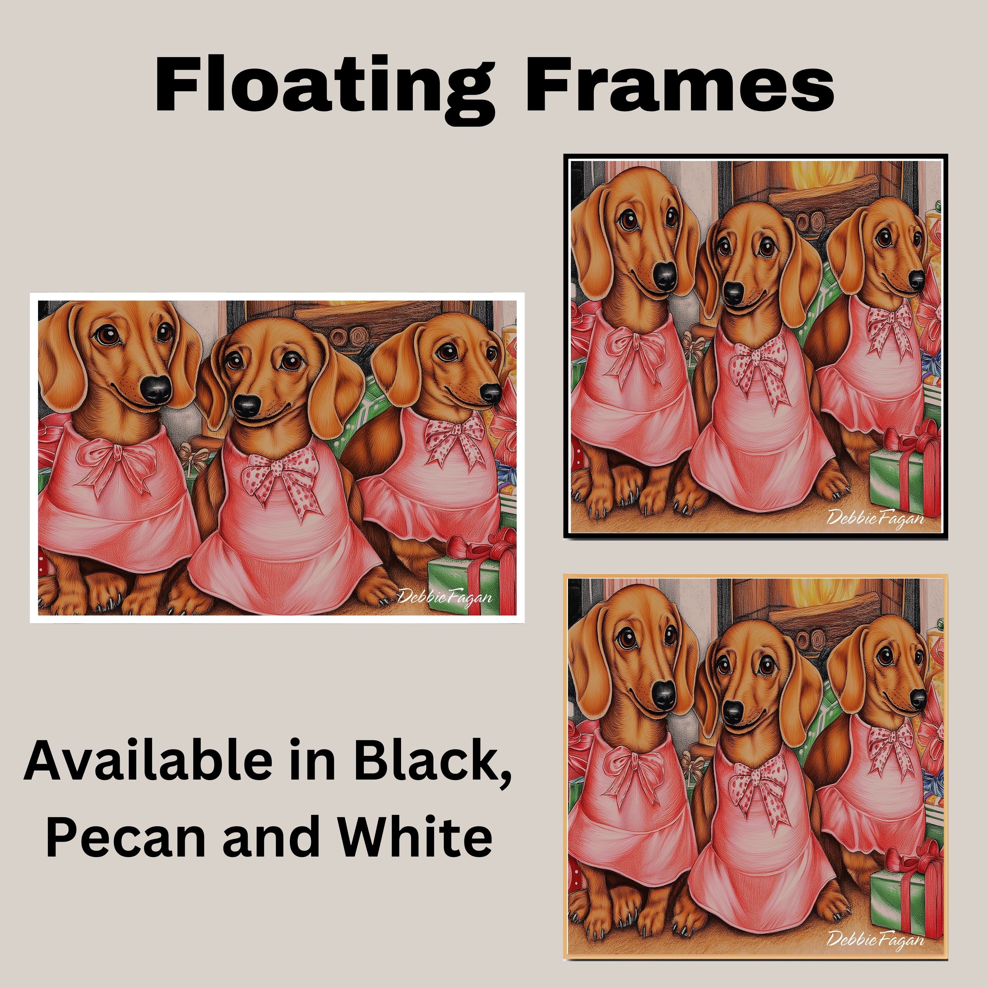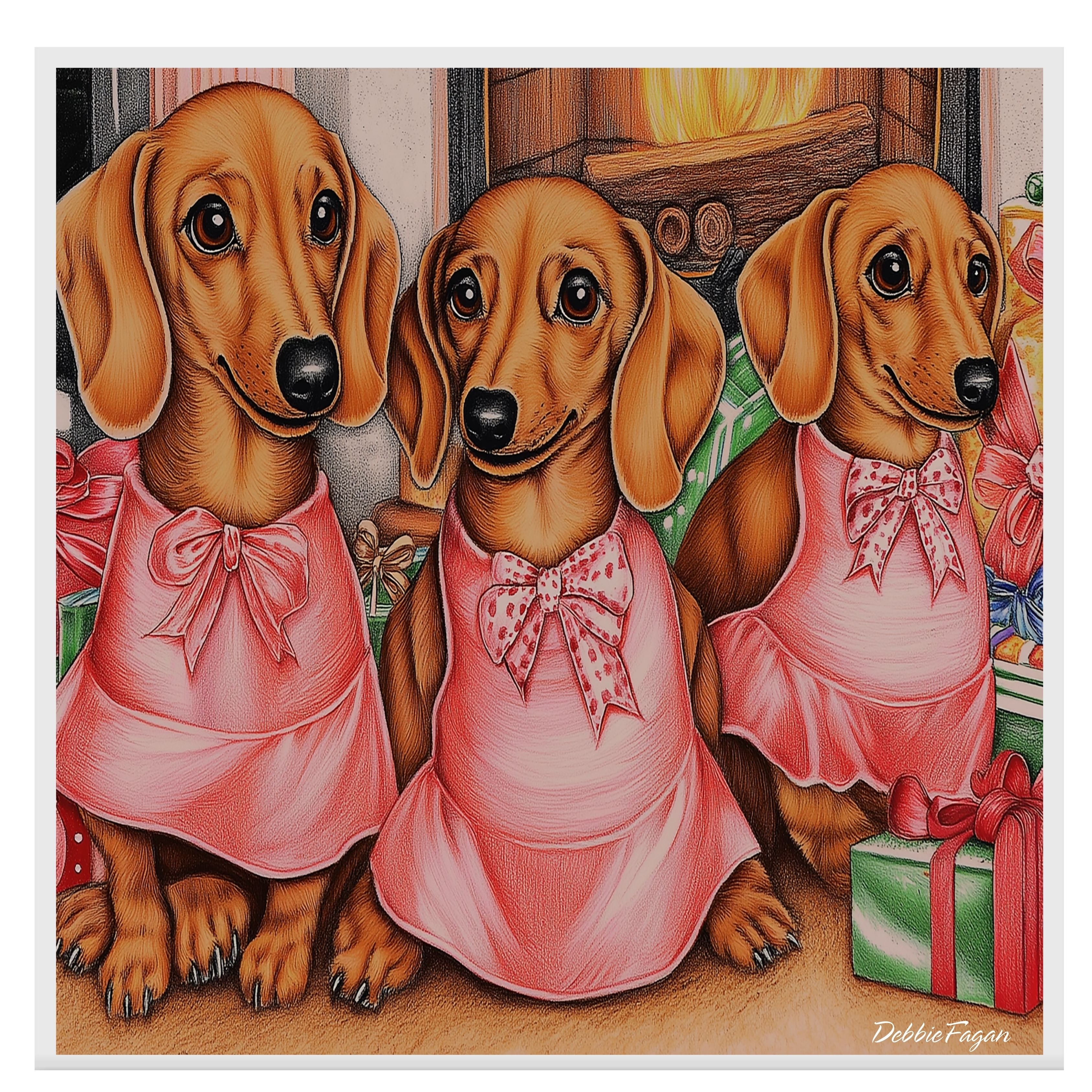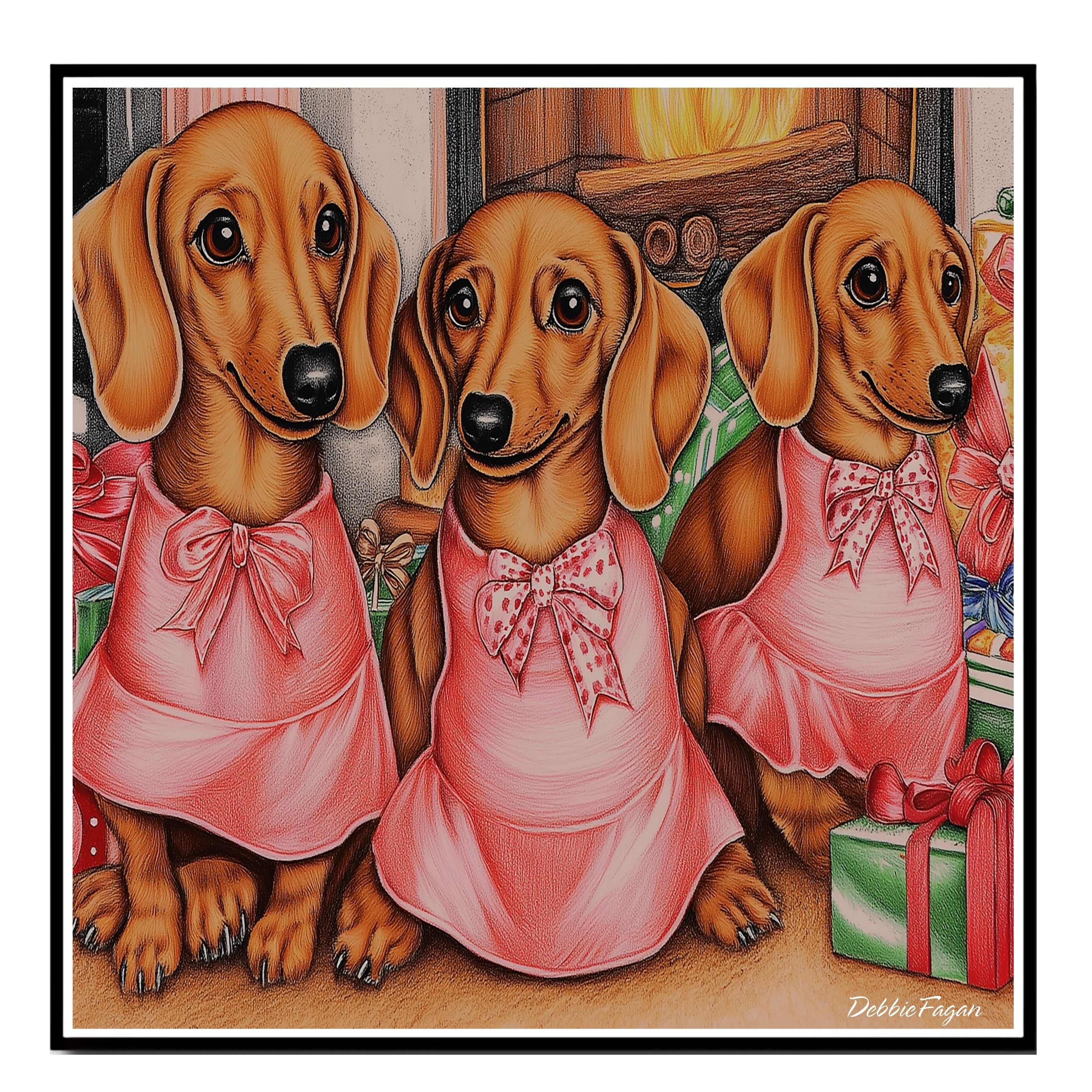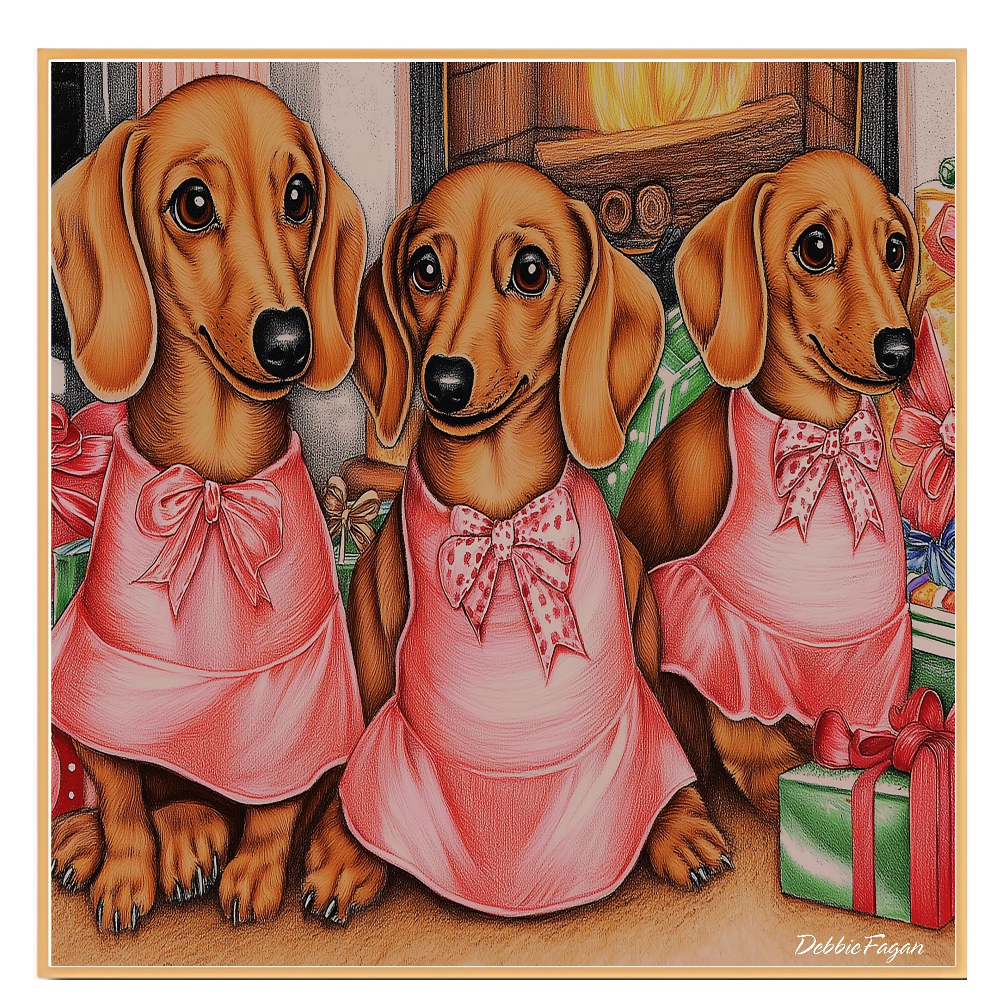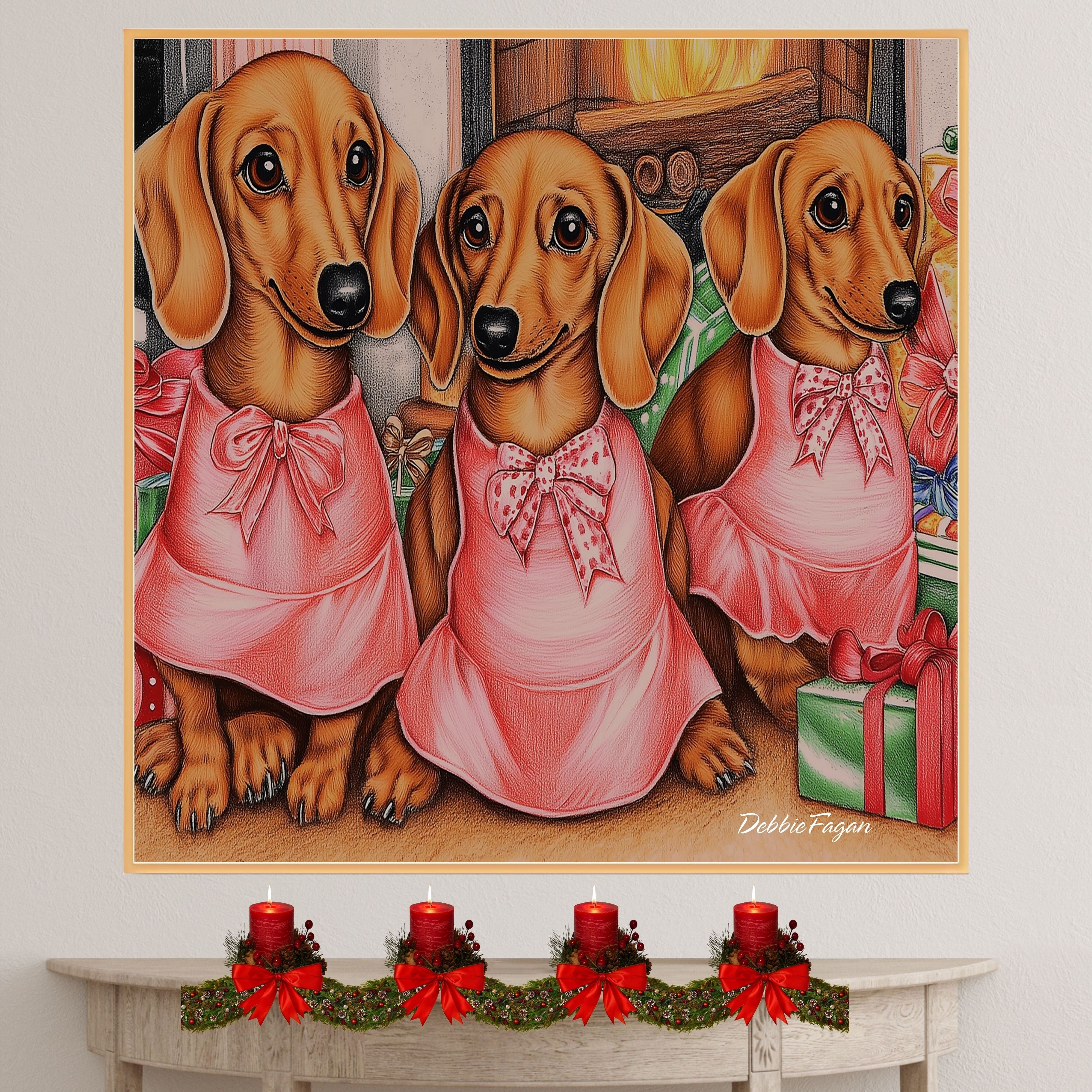 Our Dachshund Delight Canvas adds a touch of vintage-inspired charm and festive warmth to your space, featuring a spirited Dachshund nestled among holiday presents against a cozy, nostalgic backdrop. Available on a 1.5" thick canvas wrap, floating framed canvas, or as a flat rolled canvas, this delightful artwork titled Dachshund Delight captures the heartwarming spirit of the holiday season. With its timeless holiday style and joyful details, this captivating piece is perfect for adding cheer to your seasonal decor and serves as an inviting focal point in any room.
