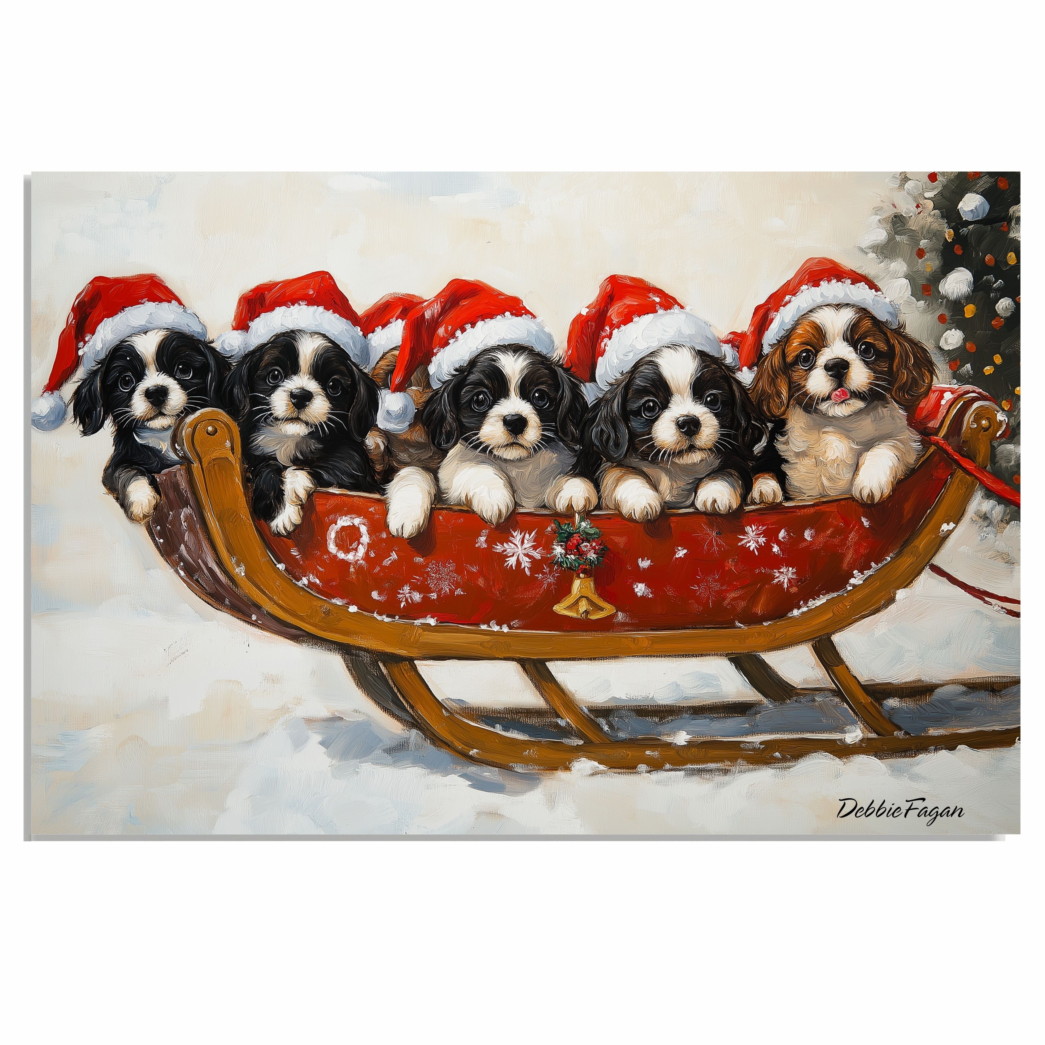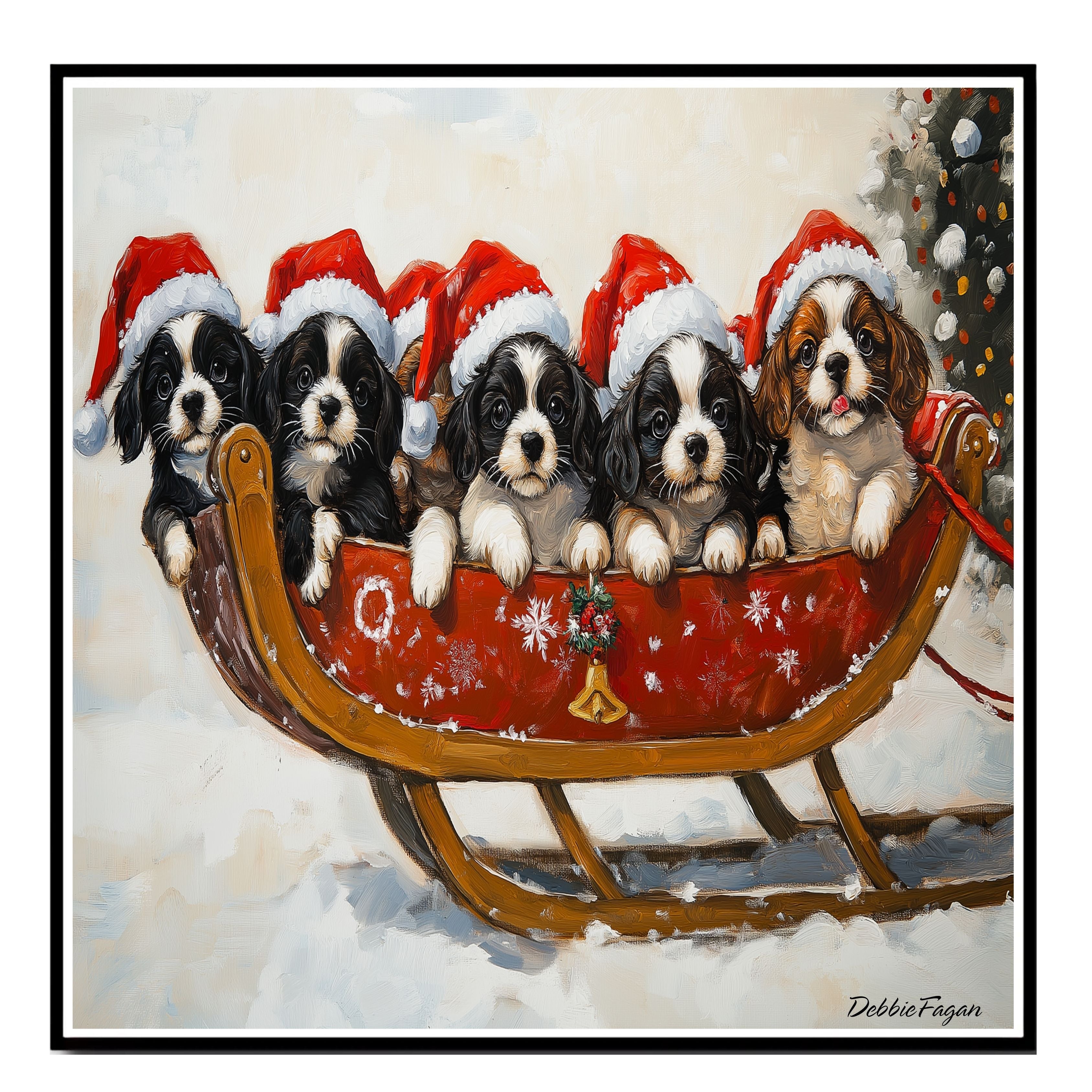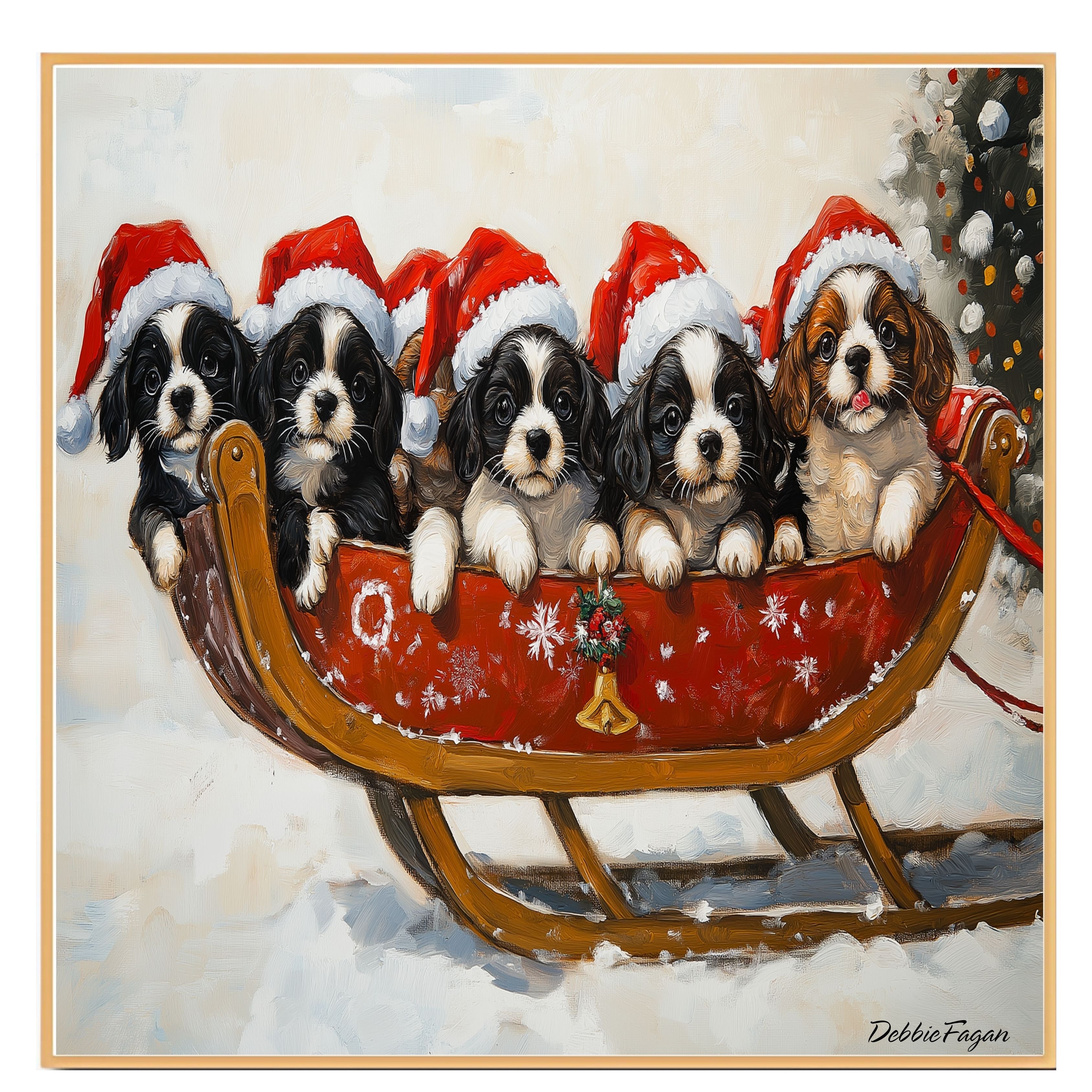 Adorable Puppies in Santa Hats on a Sleigh in a Winter Wonderland Painting Our "Santa's Little Helpers"...
