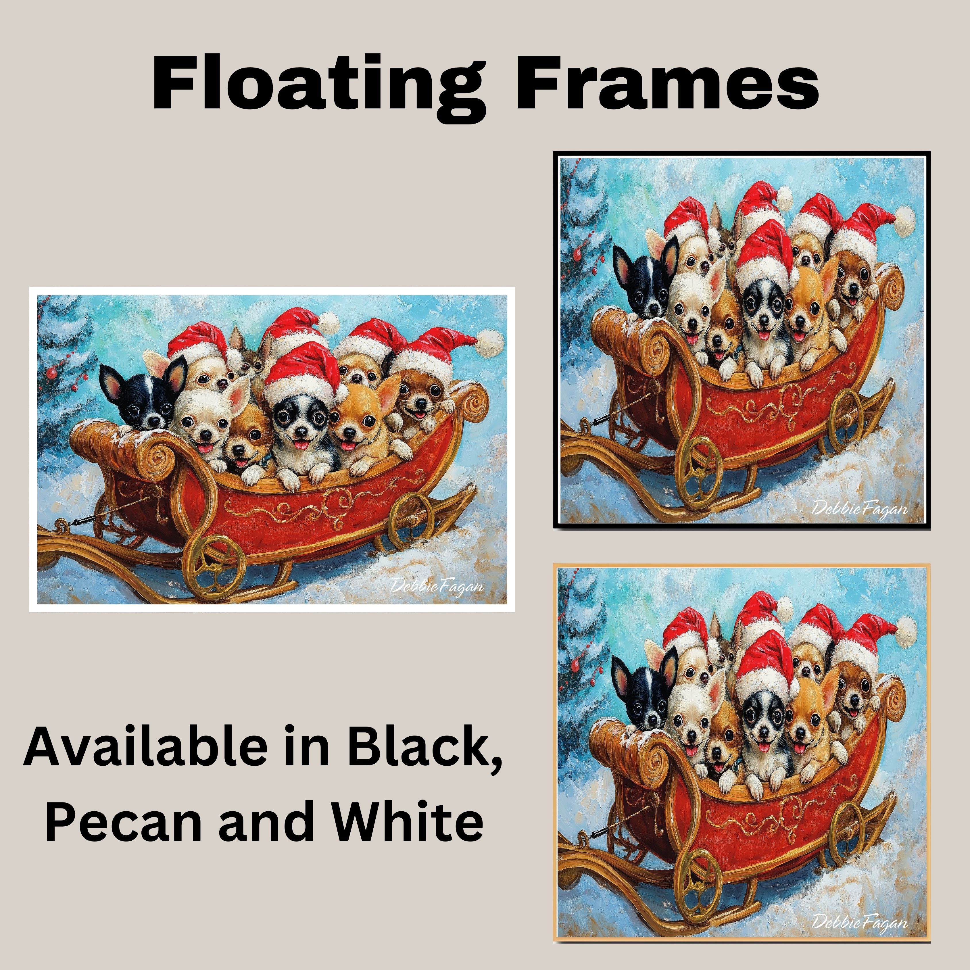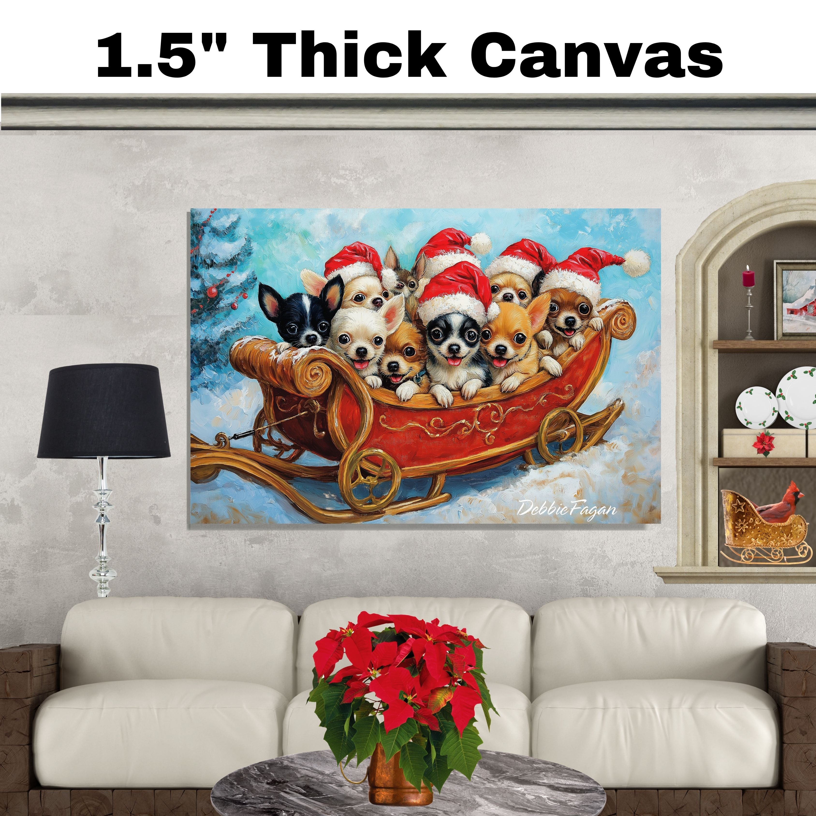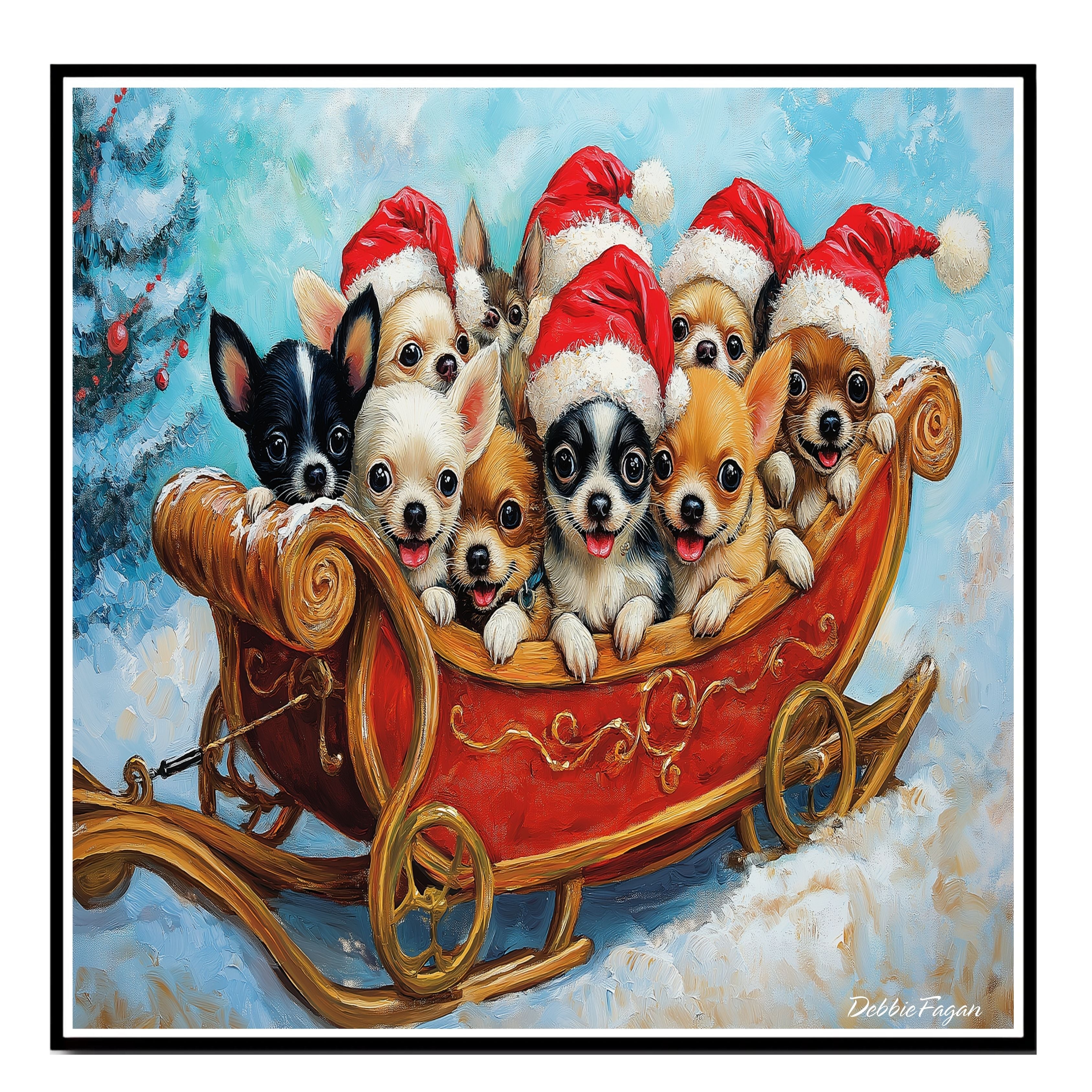 Our "Sleighing the Season" Canvas adds a touch of festive magic to your home, featuring a group of adorable puppies wearing Santa hats, joyfully riding a festive sleigh through a snowy winter wonderland. Available on a 1.5" thick canvas wrap, floating framed canvas, or as a flat rolled canvas, this heartwarming artwork perfectly captures the spirit of the holidays. With its playful charm and vibrant colors, "Sleighing the Season" brings cheer to any room, making it an ideal centerpiece for your holiday decor or a thoughtful gift for dog lovers.
