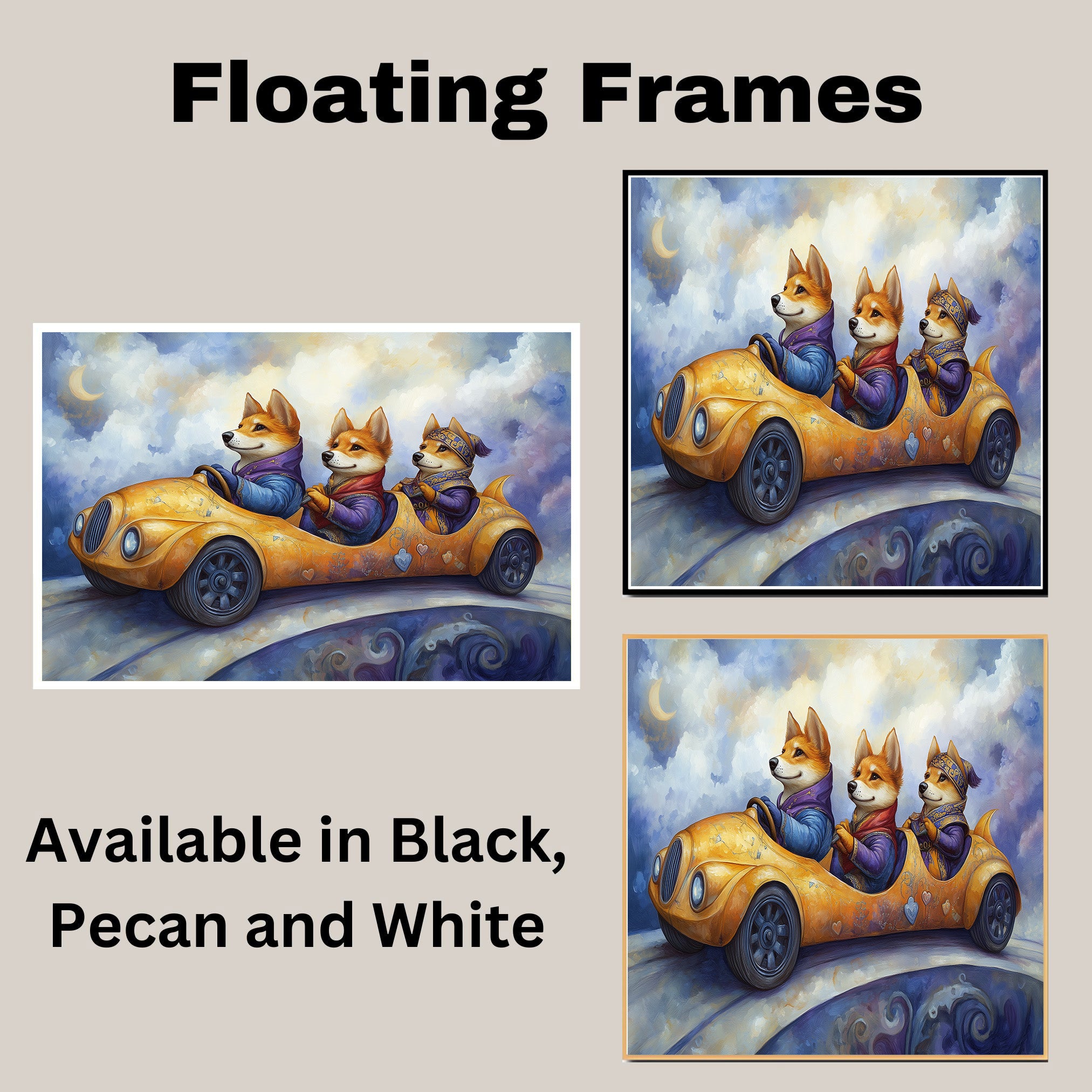 1.5" Thick Floating Framed Canvas: Available in Black, Pecan, and White Grain. Durable shrink-resistant frame. Comes with easy-to-install hanging kits, ready for immediate display.