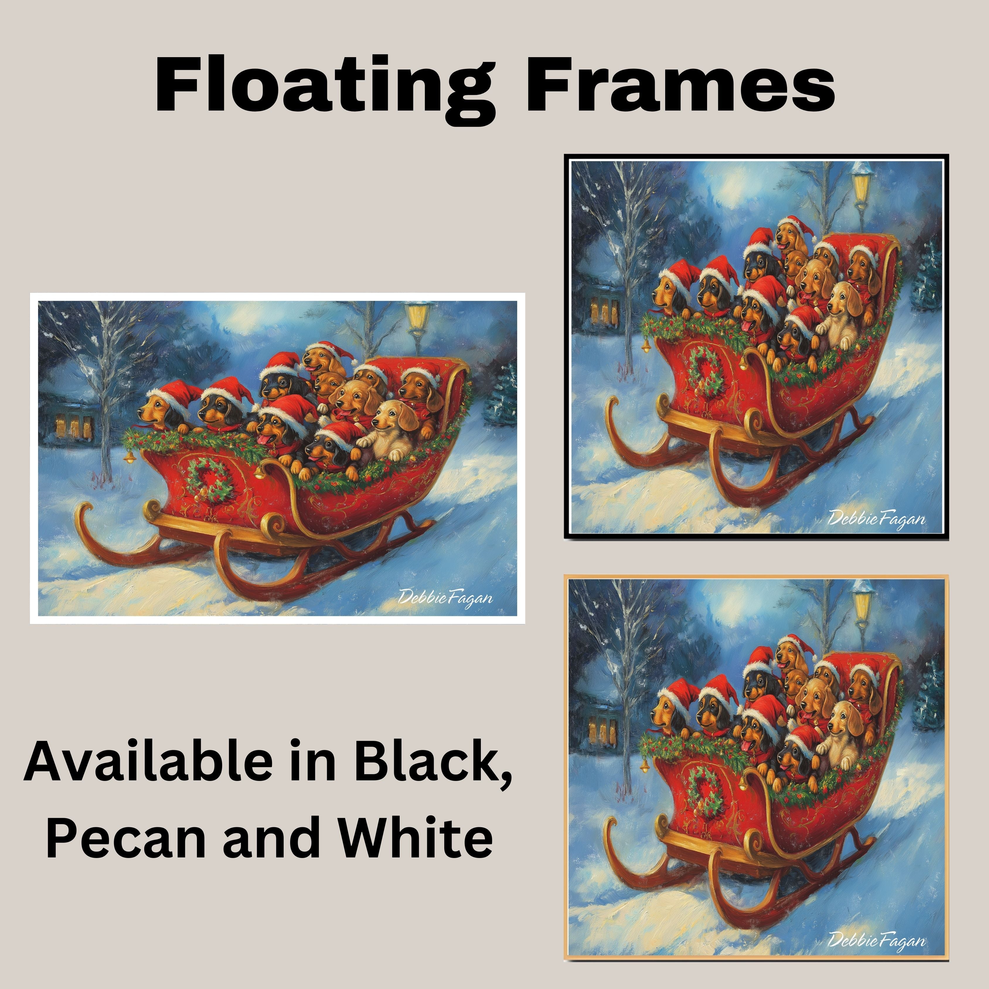 Our Doxie Christmas Canvas adds a touch of holiday magic to your home, featuring an adorable scene of Dachshund puppies in Santa hats joyfully sleighing through the snow. Titled Dashing Through the Snow, this playful artwork captures the festive spirit with a sense of adventure and charm. Available in a 1.5" thick canvas wrap, floating framed canvas, or as a flat rolled canvas, this heartwarming piece brings joy to any room. With its delightful blend of seasonal fun and timeless appeal, its the perfect addition to your holiday decor, making it a cheerful and eye-catching focal point.