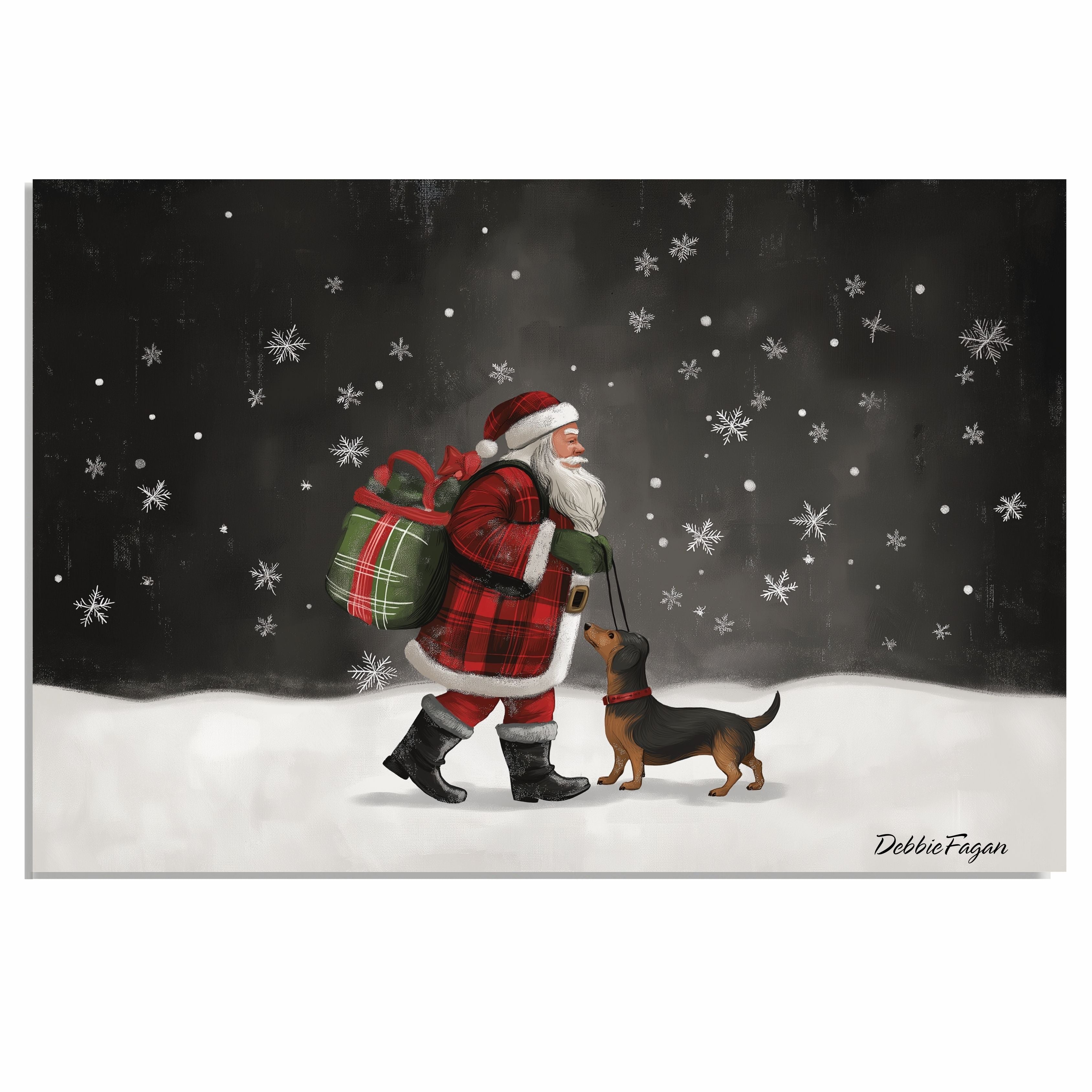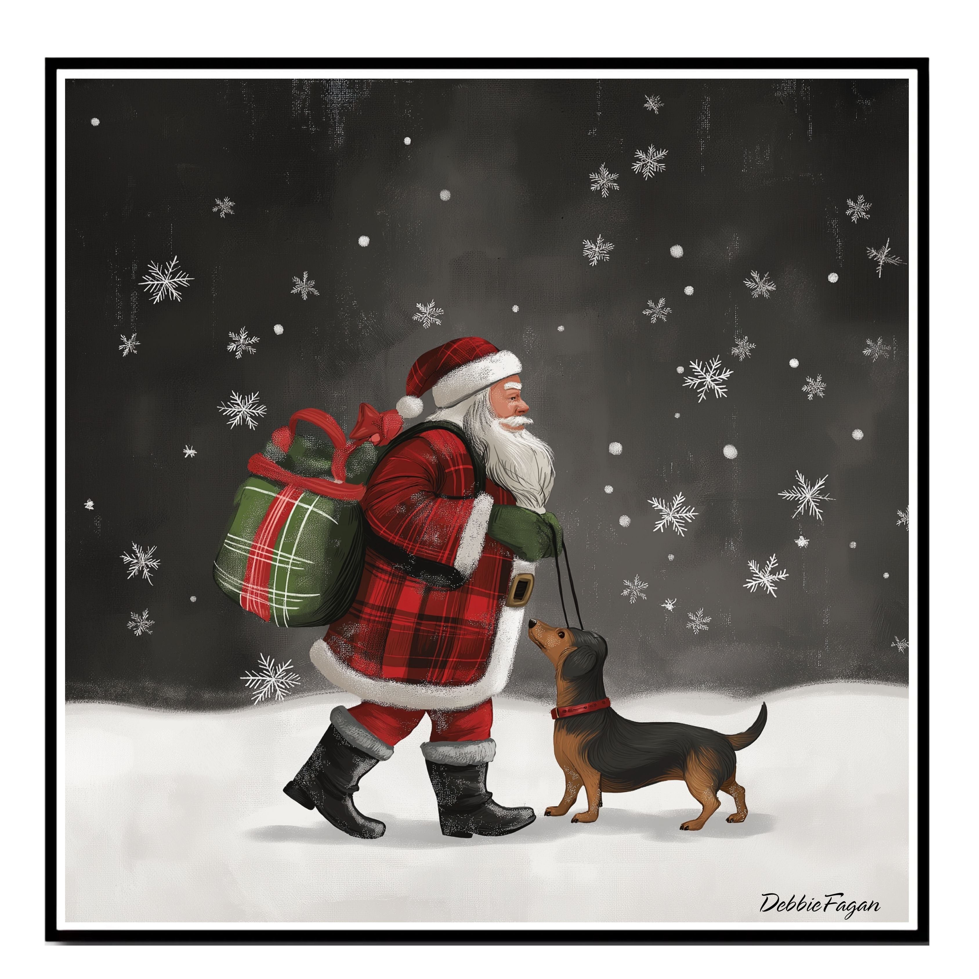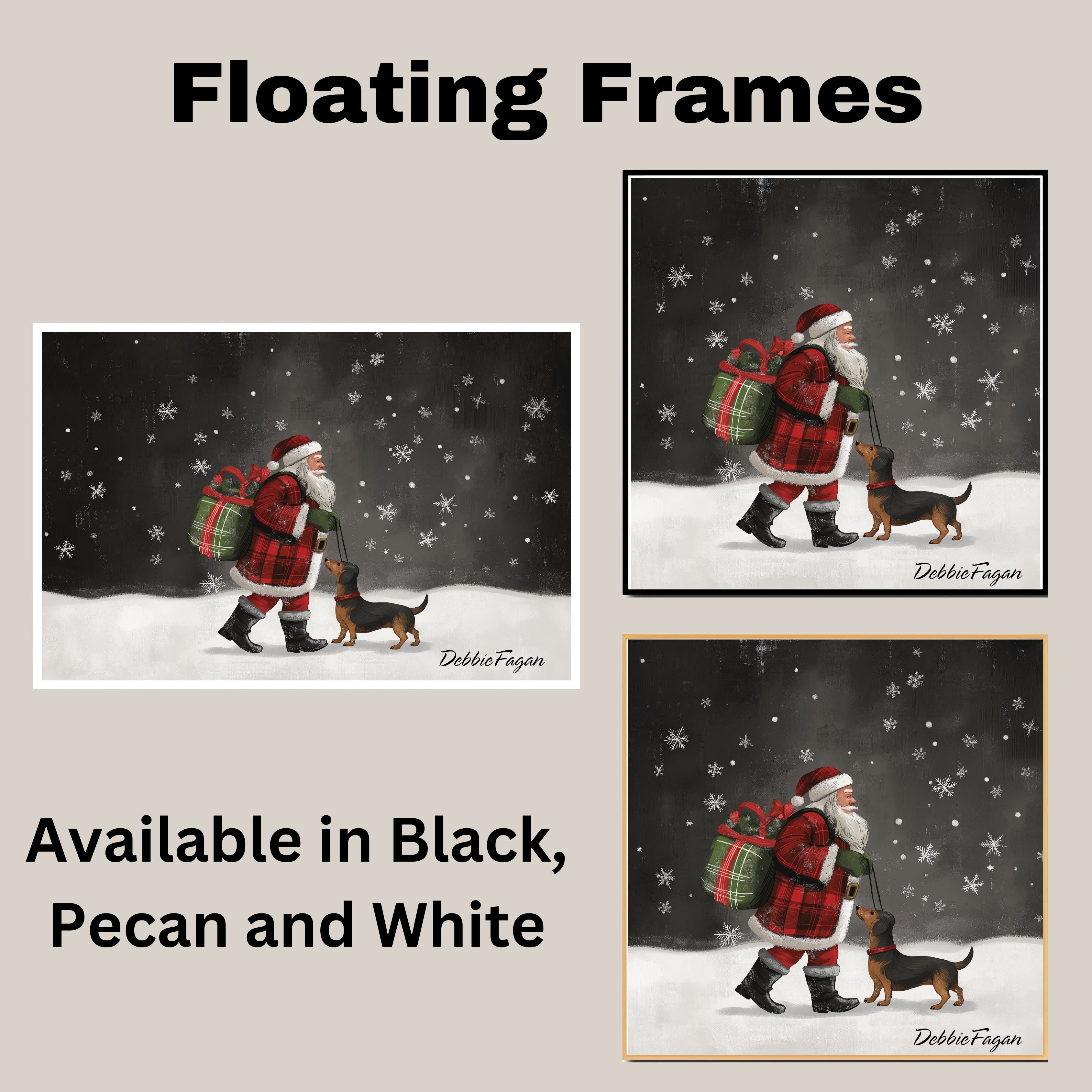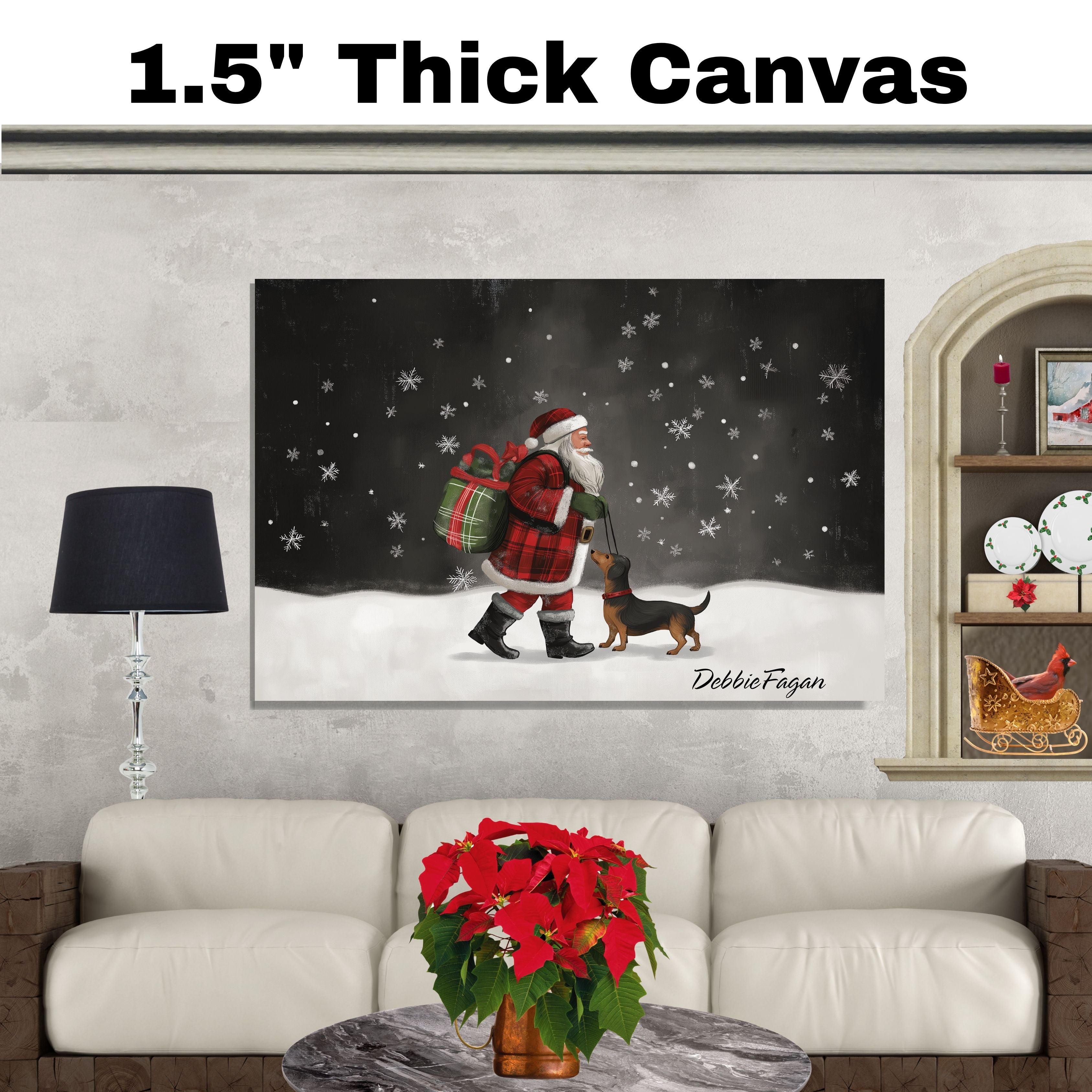 Our Doxie Christmas Canvas - 'Snowy Adventure' adds a touch of festive charm and whimsy to your space, featuring an adorable Dachshund dressed as Santa, ready to embark on a snowy winter adventure. Set against a tranquil snowy backdrop, this playful scene captures the joyful spirit of the holiday season. Available on a 1.5" thick canvas wrap, floating framed canvas, or as a flat rolled canvas, this delightful piece titled 'Snowy Adventure' is perfect for bringing warmth and cheer to your home decor. With its heartwarming blend of seasonal fun and timeless appeal, this joyful artwork makes a delightful addition to any room during the holiday season.