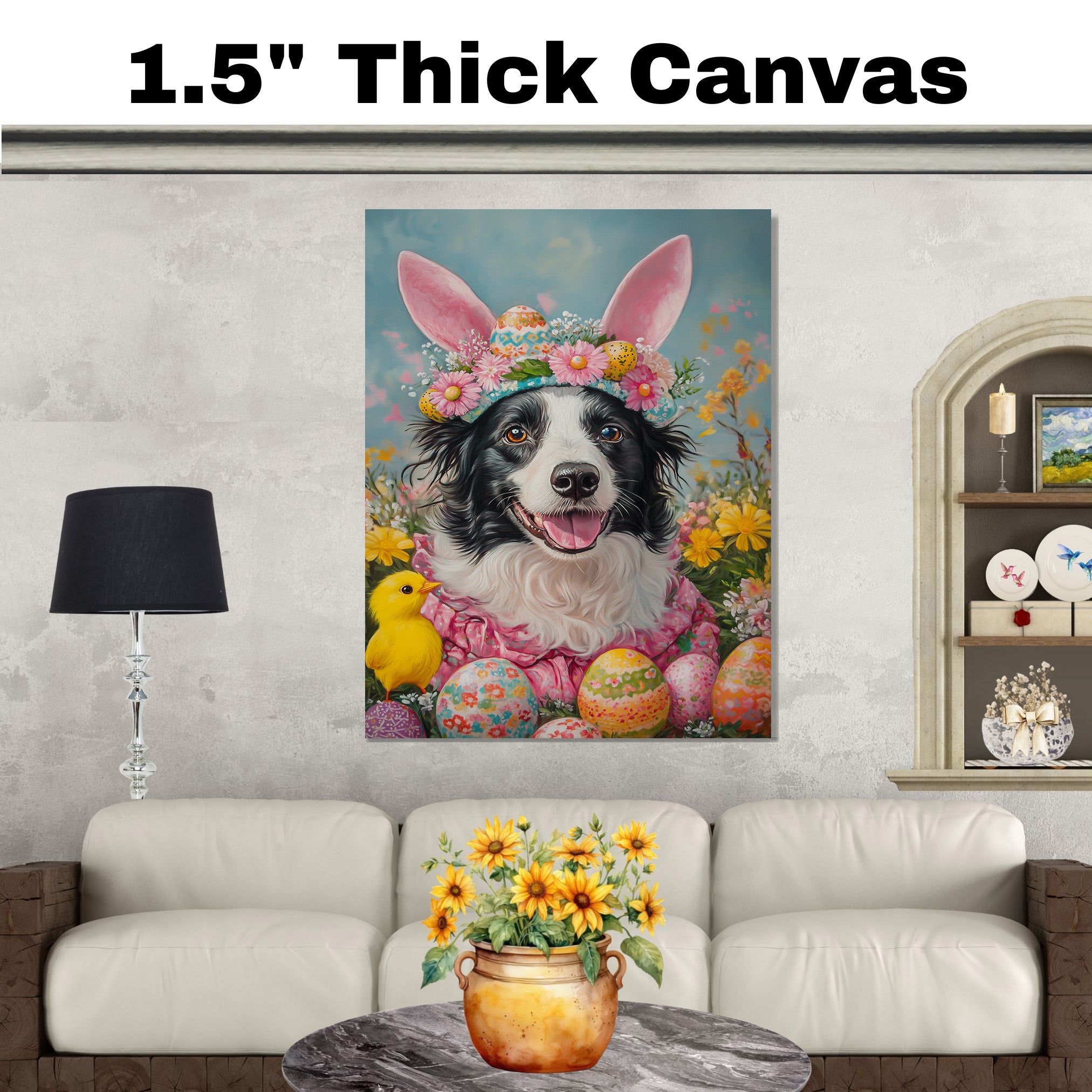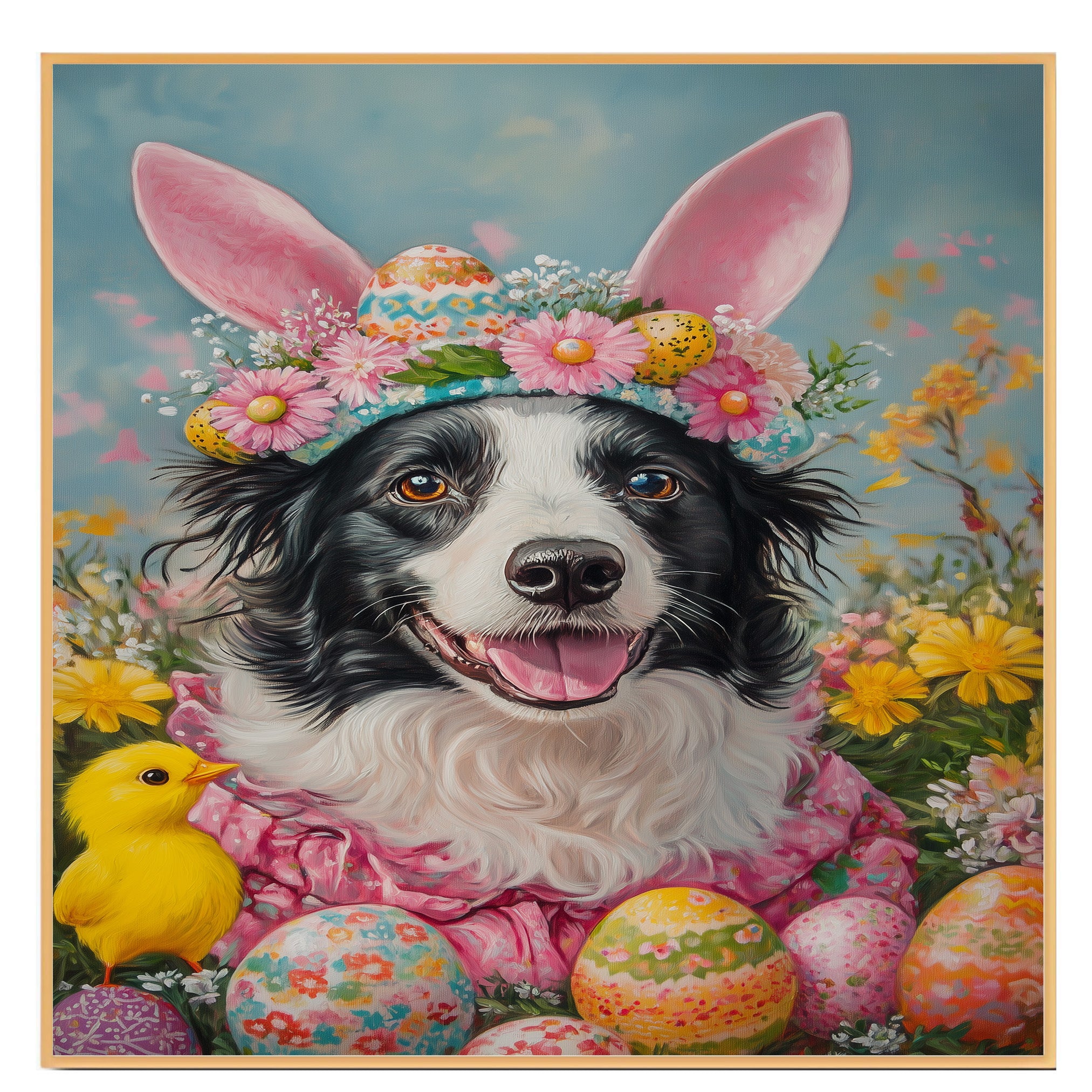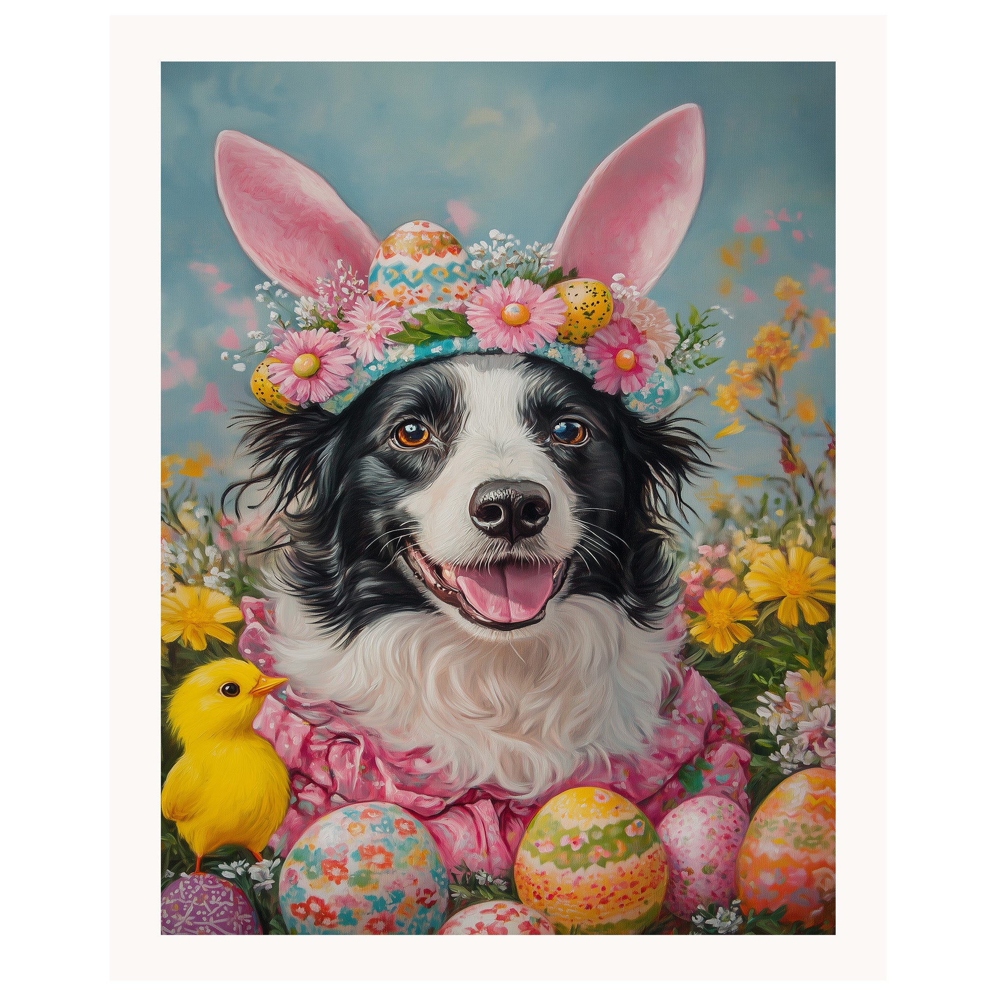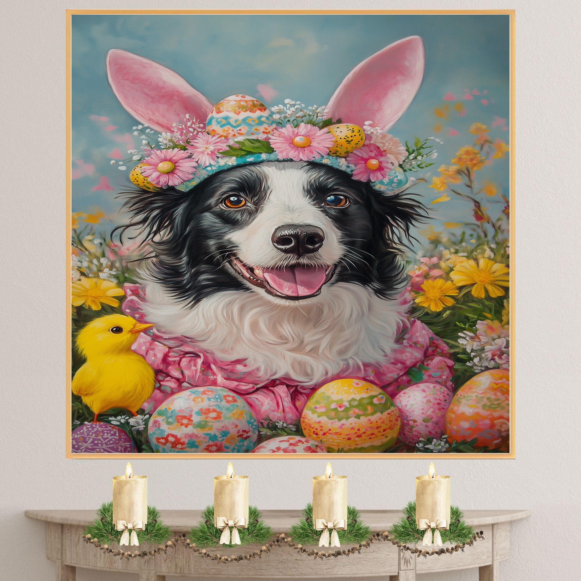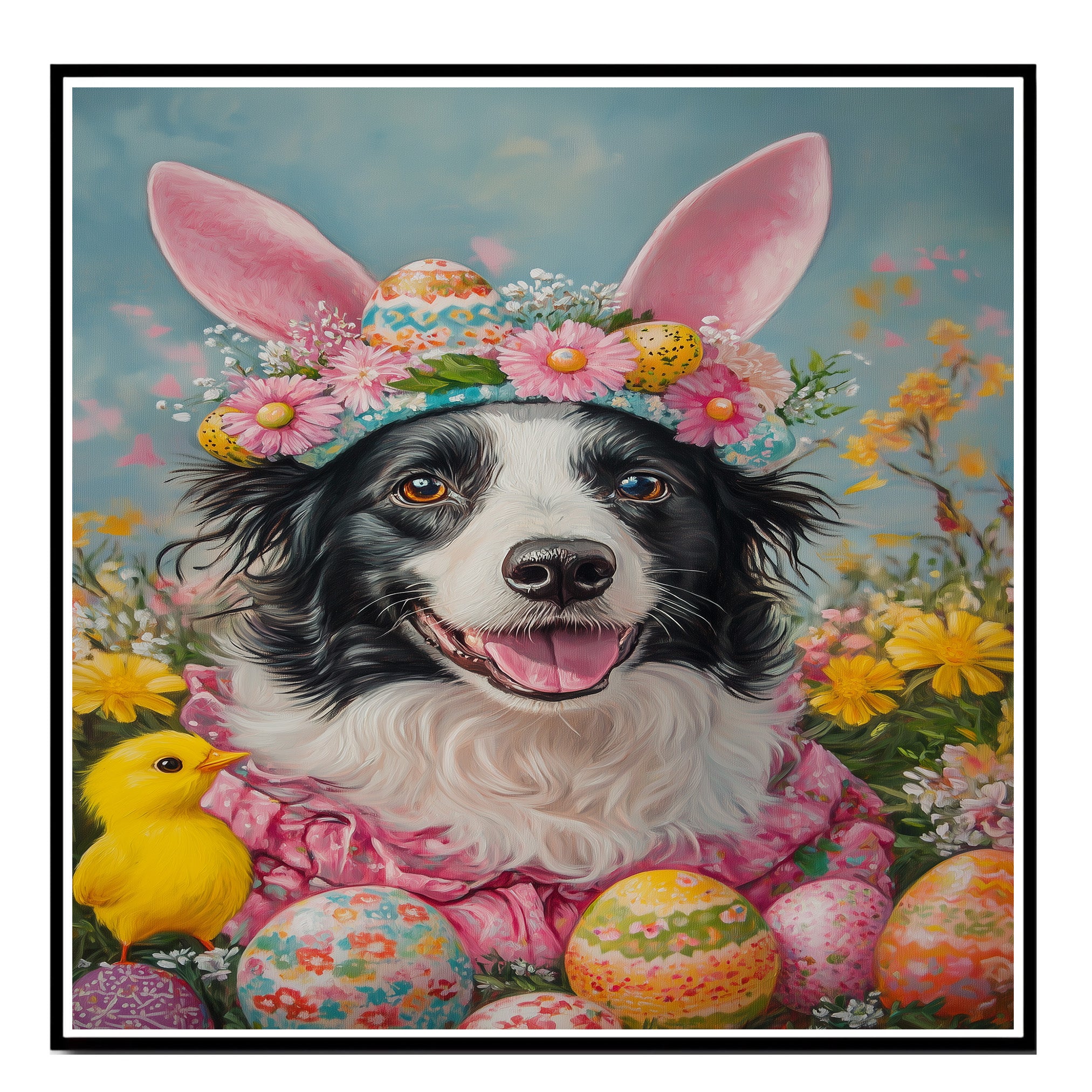 Our Easter Delight Canvas captures the joy of the season, featuring a playful Border Collie posing in a colorful holiday outfit. With vibrant spring hues and charming details, this heartwarming artwork radiates festivity and warmth, making it a perfect addition to your Easter decor. The cheerful scene adds a touch of seasonal magic to any space, celebrating the spirit of Easter with canine charm. Available as an artistic canvas wrap, framed print, or rolled artwork, this delightful piece is a wonderful gift for dog lovers and holiday enthusiasts alike.