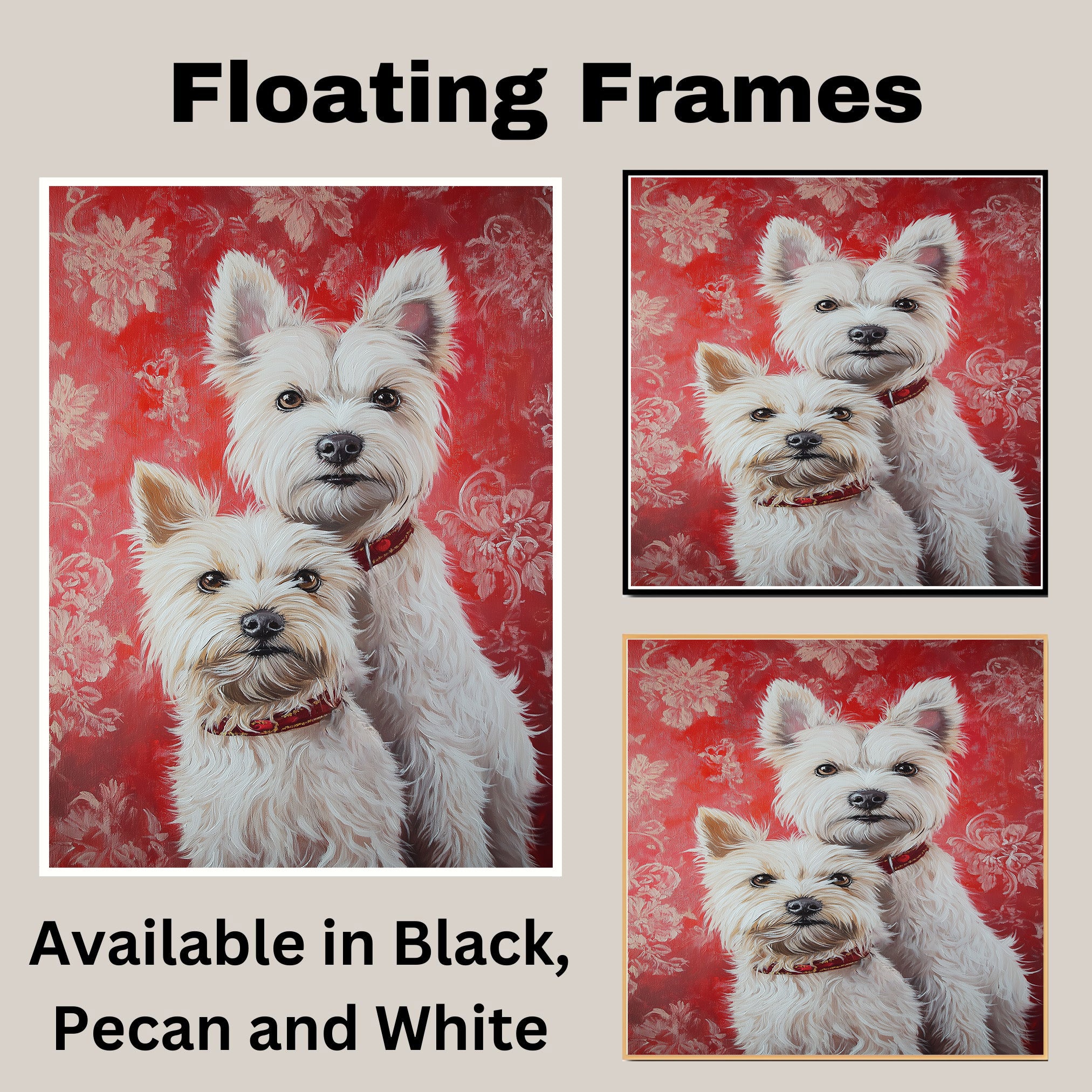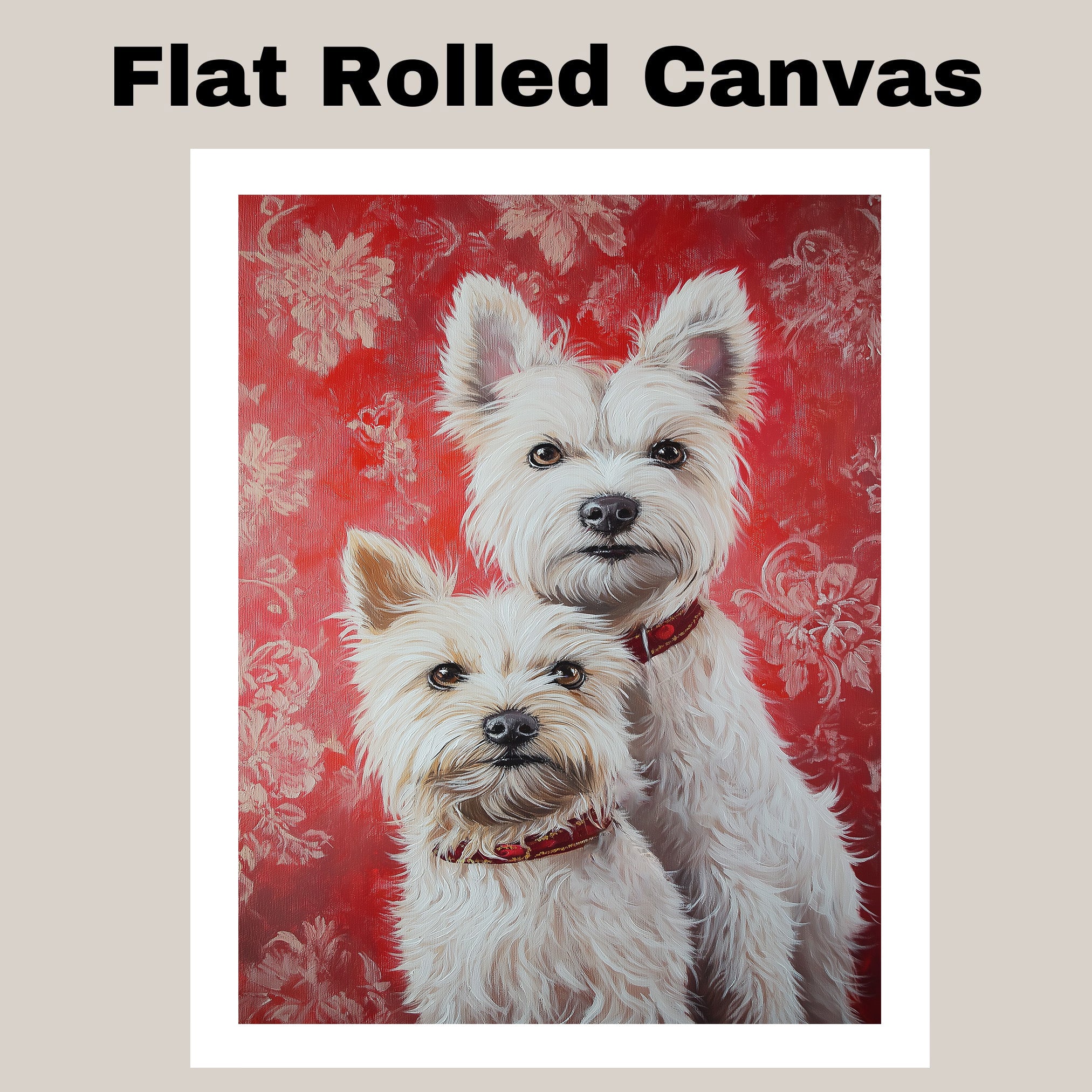 Elegant West Highland White Terrier Couple Painting Gift for Dog Lovers and Cozy Rustic Home Accent on Ready to Hang 1.5" Thick Canvas Wrap, Floating Framed Canvas, Flat Rolled Canvas