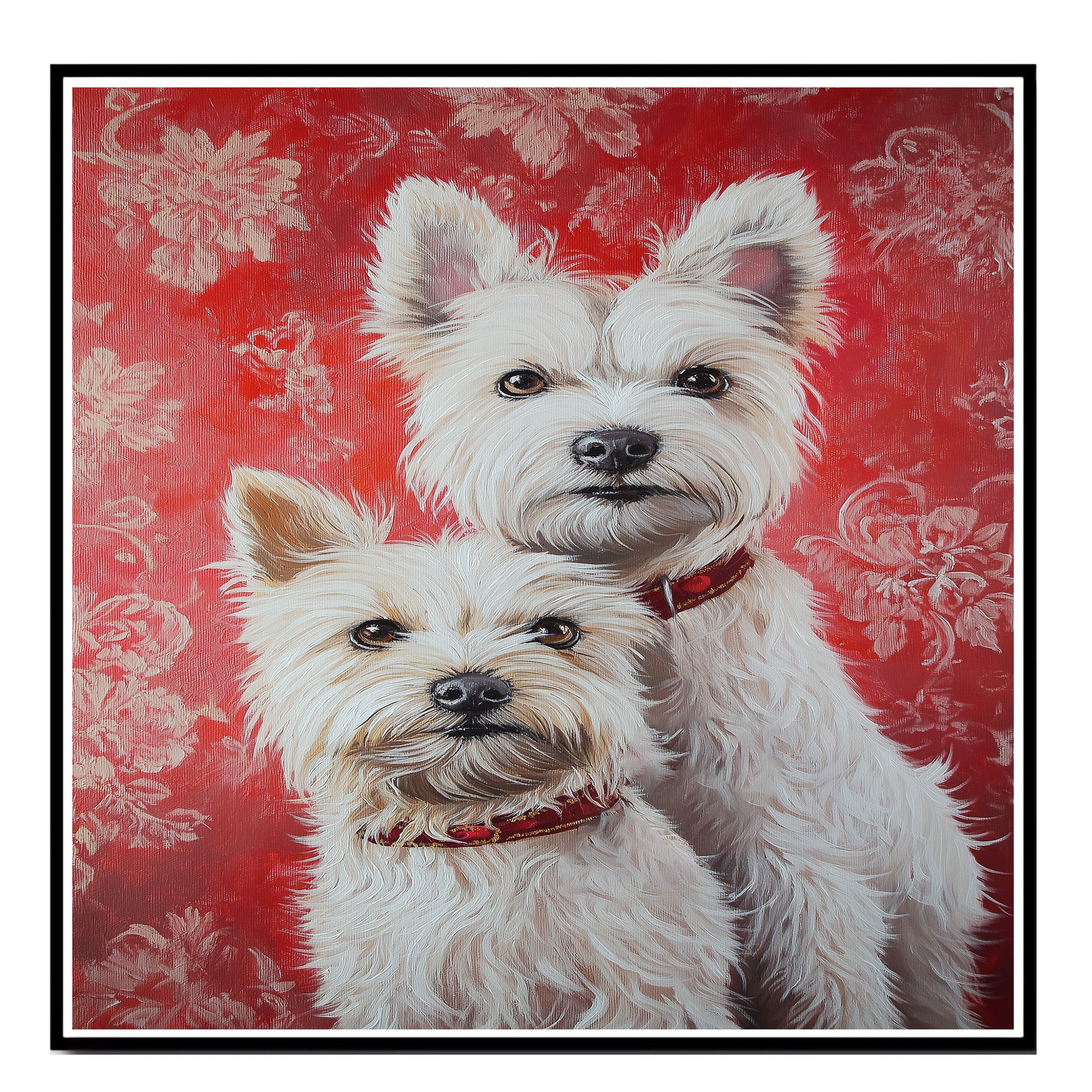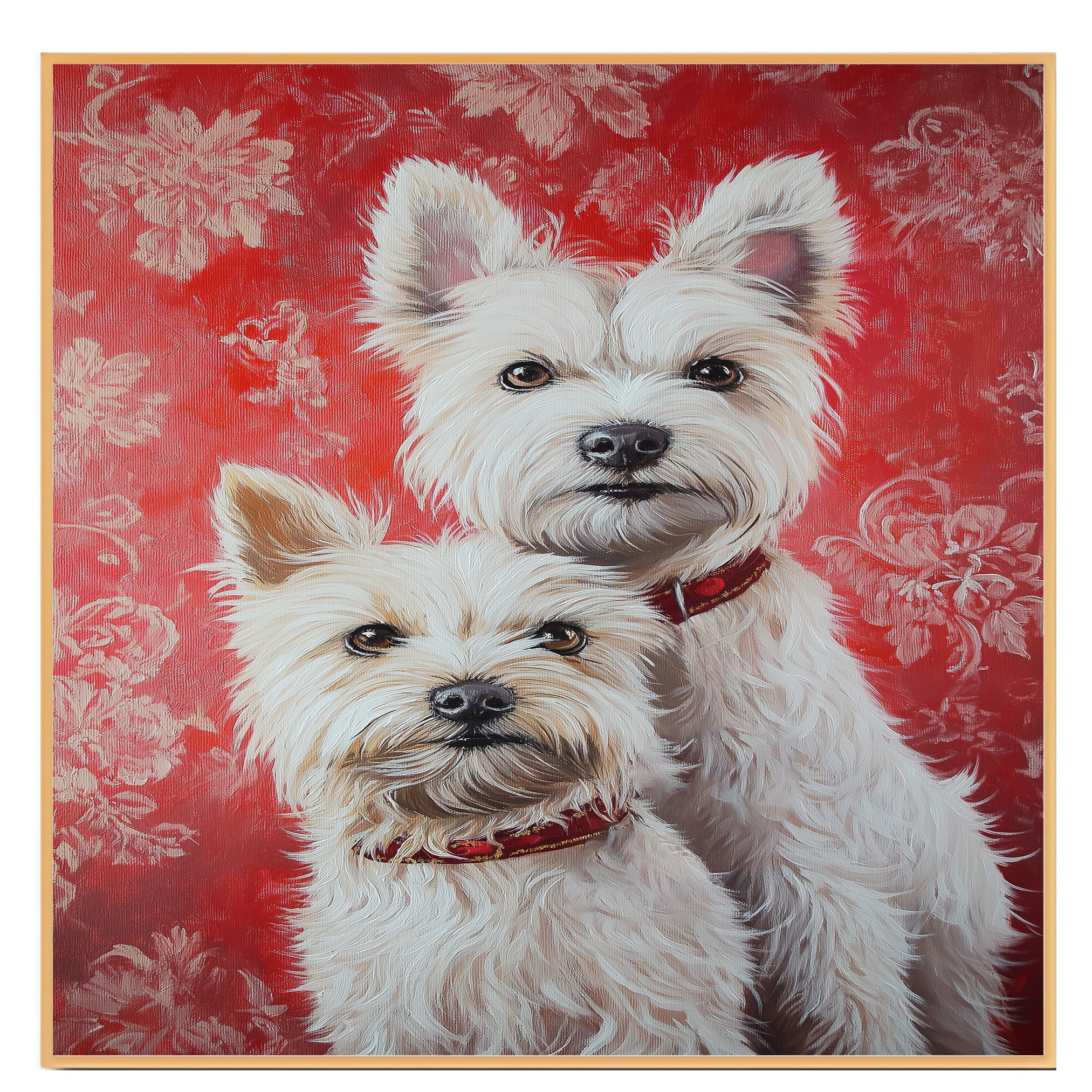 Celebrate elegance and devotion with this West Highland White Terrier couple painting. A beautiful and heartwarming tribute to loyal companions, ideal for dog lovers and rustic cozy homes.