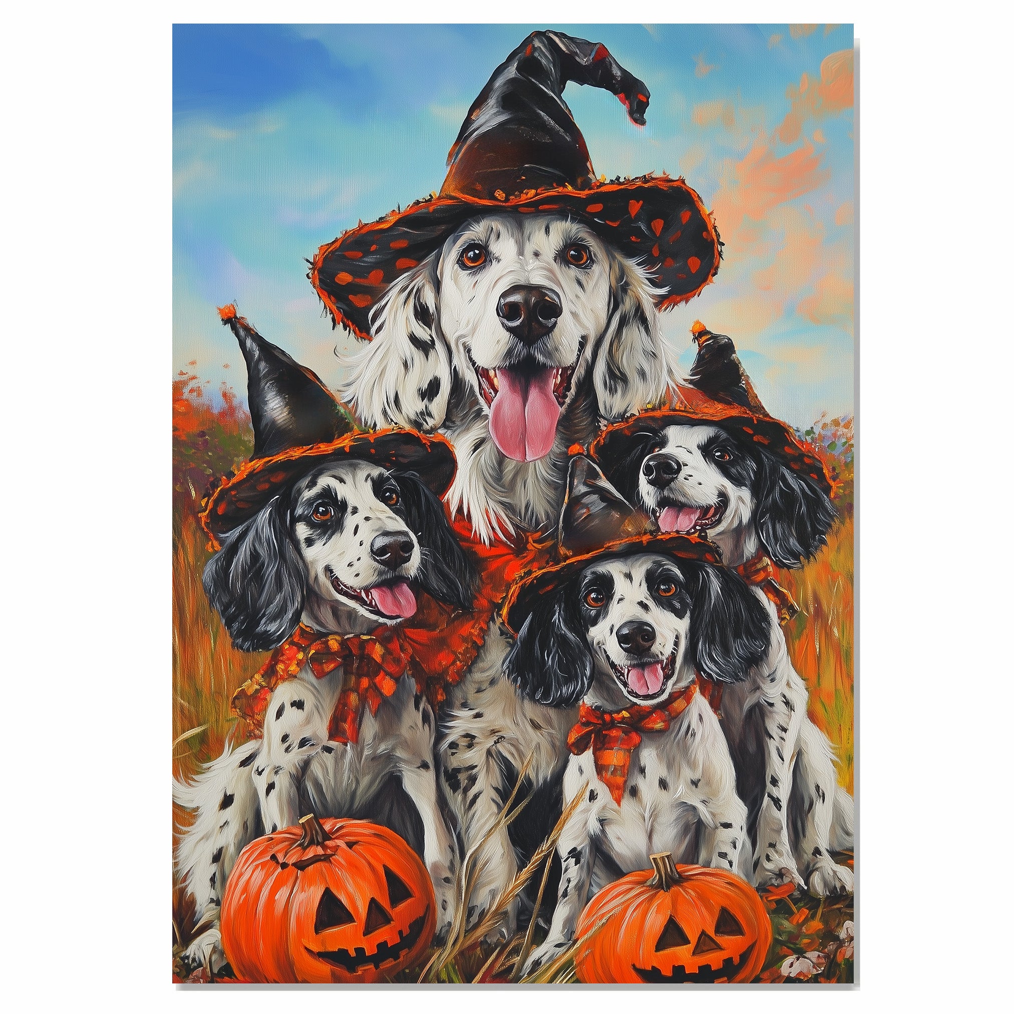 English Setter Dog Halloween Canvas Wall Art with Pumpkins Rustic Fall Accent for Cozy Autumn Homes on Ready to Hang 1.5" Thick Canvas Wrap, Floating Framed Canvas, Flat Rolled Canvas