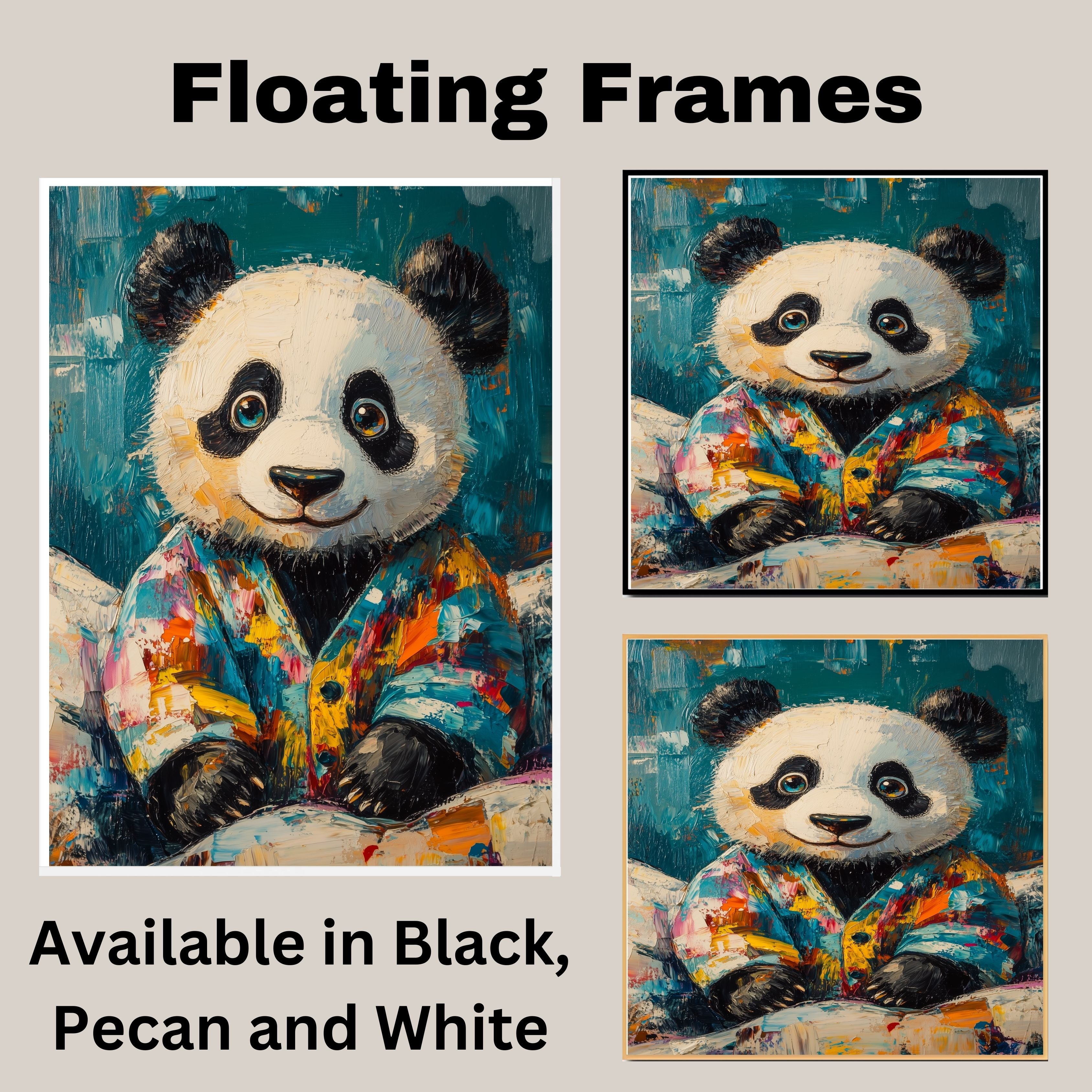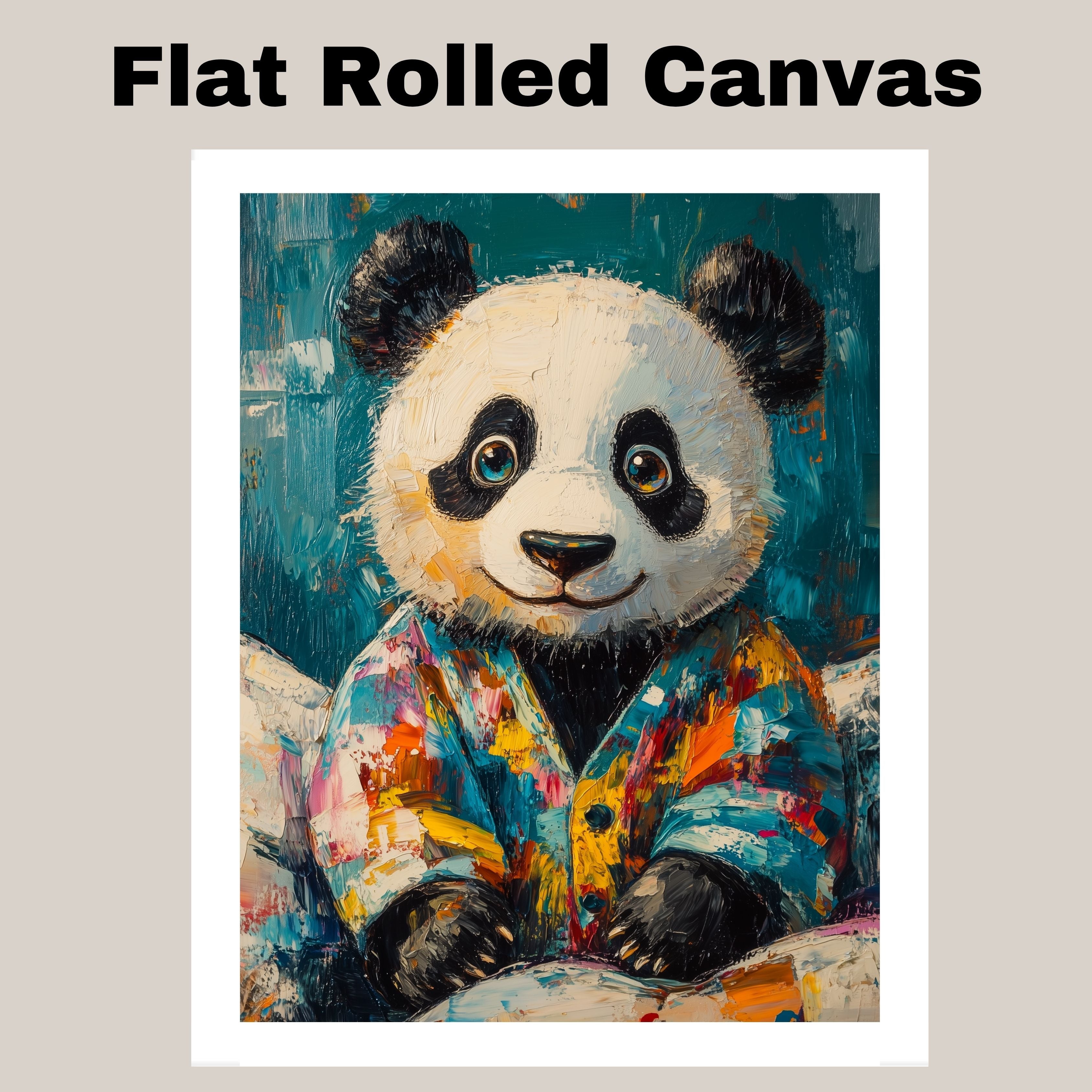 Expressive Painting of a Cute Panda Bear in a Colorful Jacket Sitting Peacefully with a Gentle Smile in a Bold Textured Style on Ready to Hang 1.5" Thick Canvas Wrap, Floating Framed Canvas, Flat Rolled Canvas