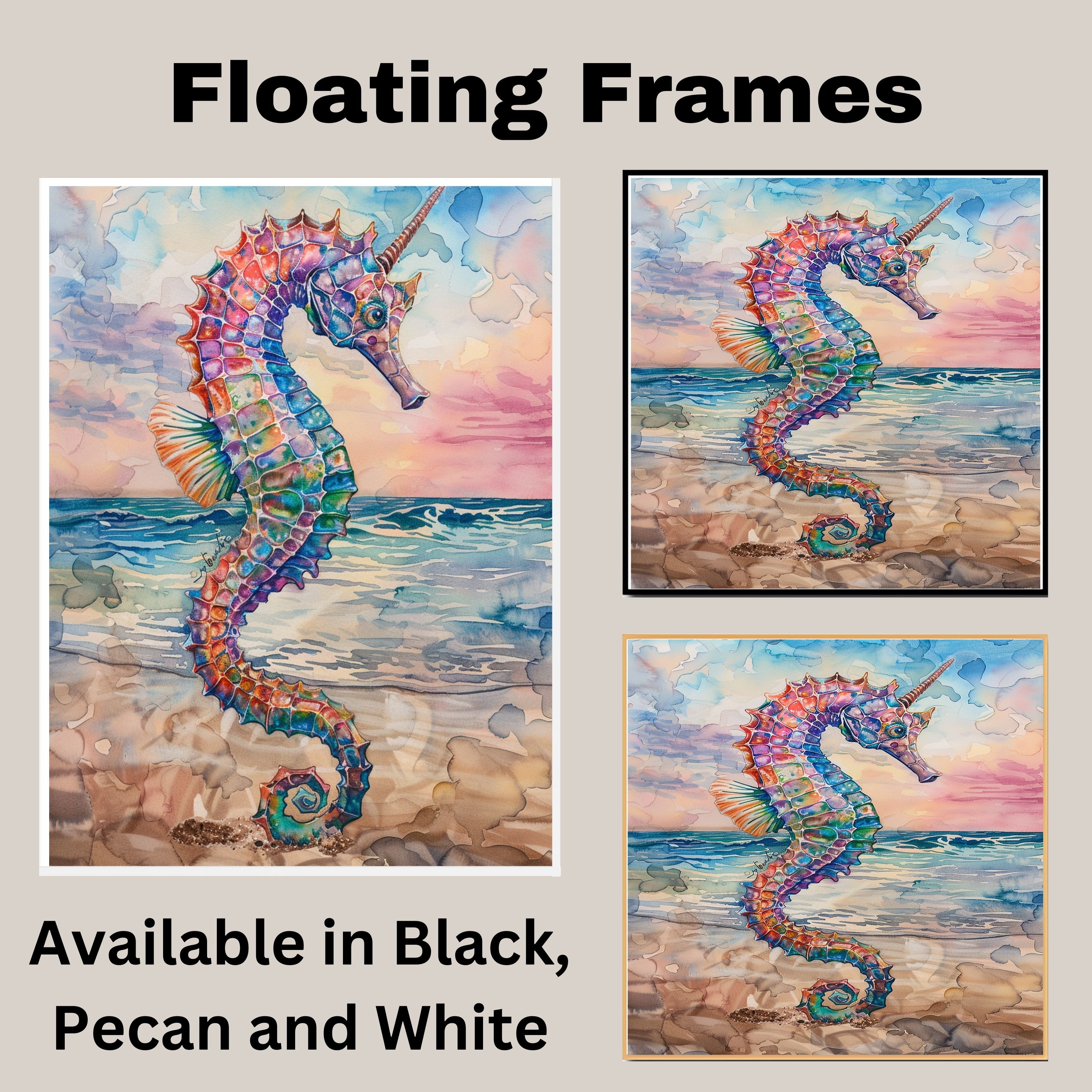 1.5" Thick Floating Framed Canvas: Available in Black, Pecan, and White Grain. Durable shrink-resistant frame. Comes with easy-to-install hanging kits, ready for immediate display.
