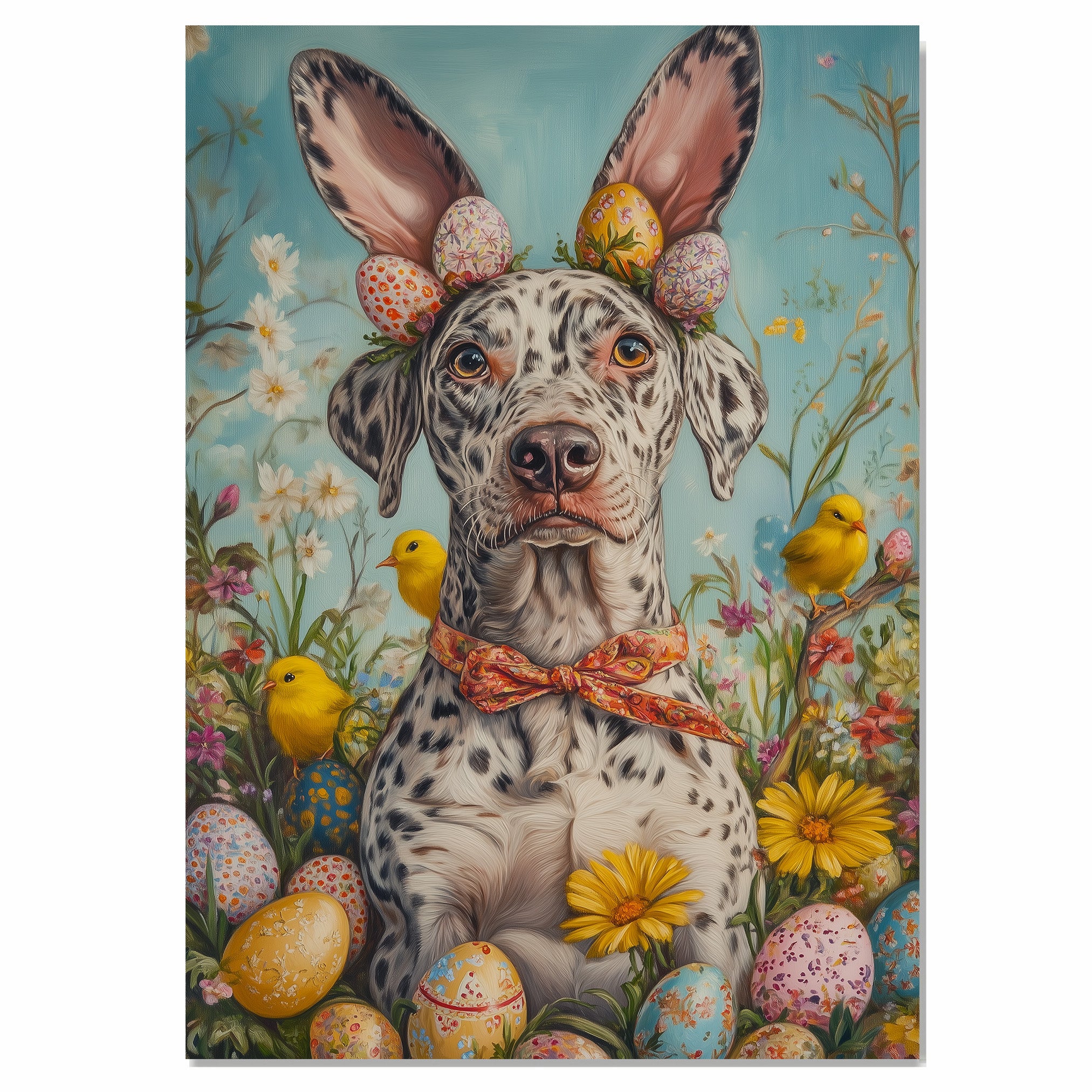 Festive Paws: Catahoula Leopard Dog Dressed for a Cheerful Spring Celebration on Canvas Wrap, Framed Print, or Rolled Artwork