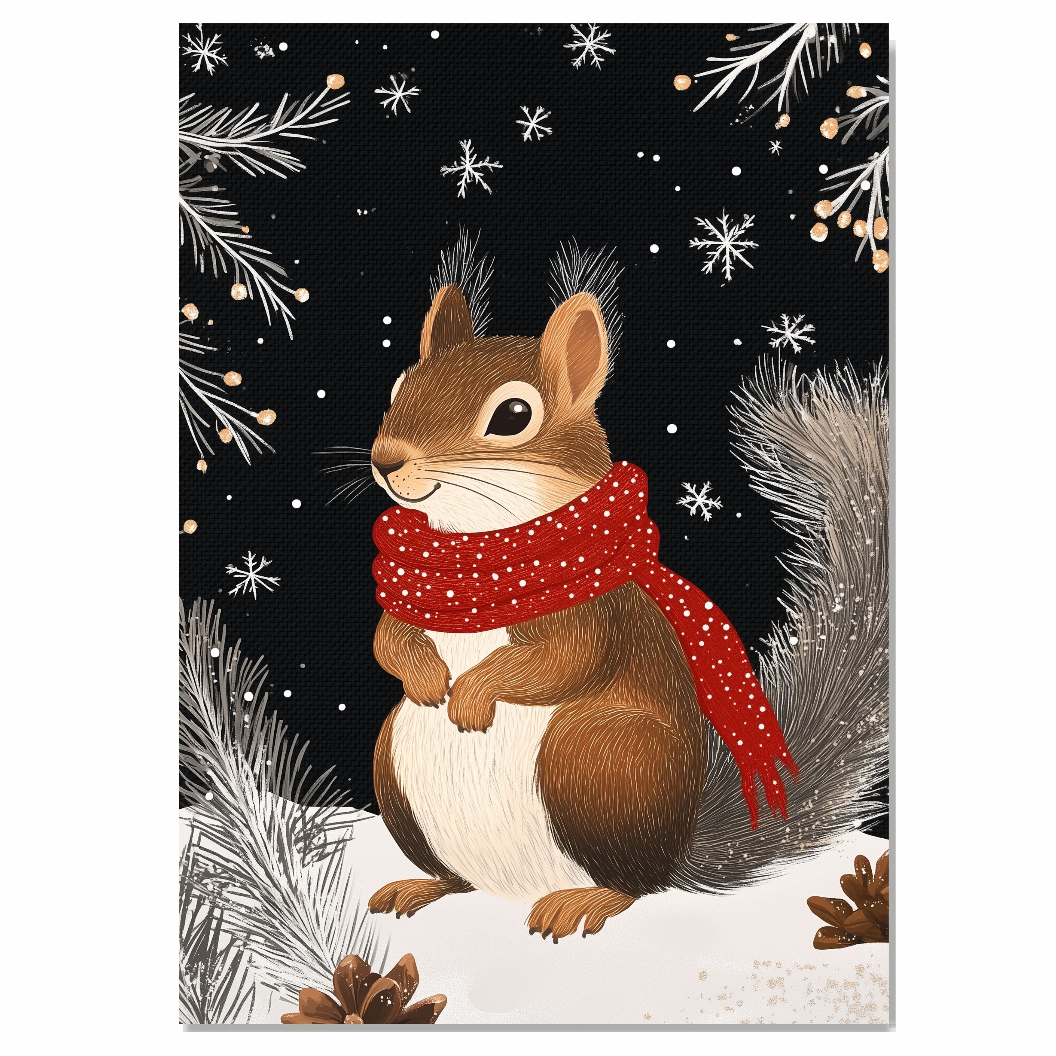 Our Frosty Friend Squirrel Canvas Wall Decor adds a touch of winter magic to your space, featuring a charming squirrel in a cozy red scarf nestled in a peaceful snowy scene. Available on a 1.5" thick canvas wrap, floating framed canvas, or as a flat rolled canvas, this delightful artwork captures the serene beauty of the season. With its warm, festive appeal and tranquil winter setting, this piece is perfect for bringing a touch of nature's charm to your holiday decor, making it an enchanting focal point in any room.