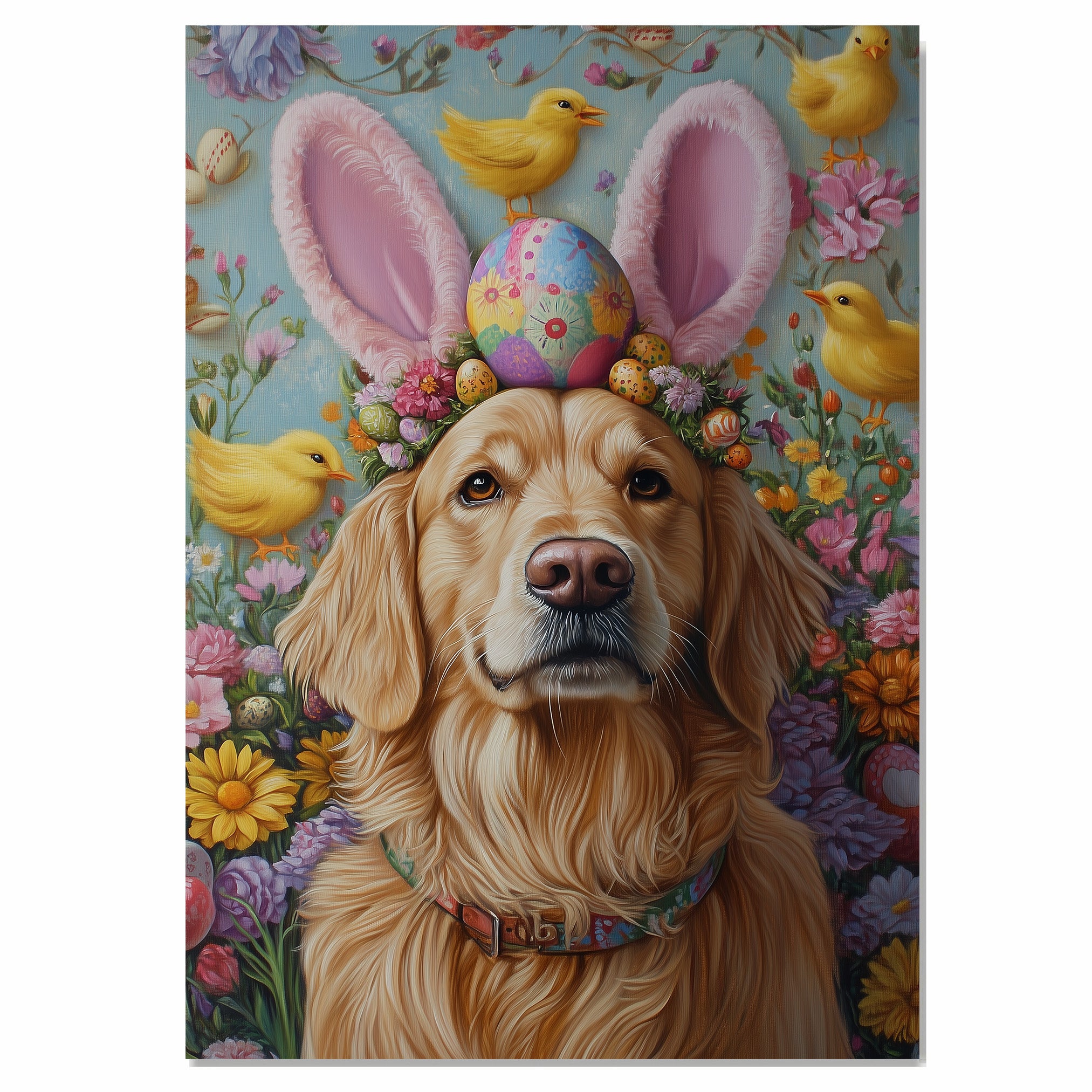 Golden Retriever in Easter Outfit Canvas Wall Art