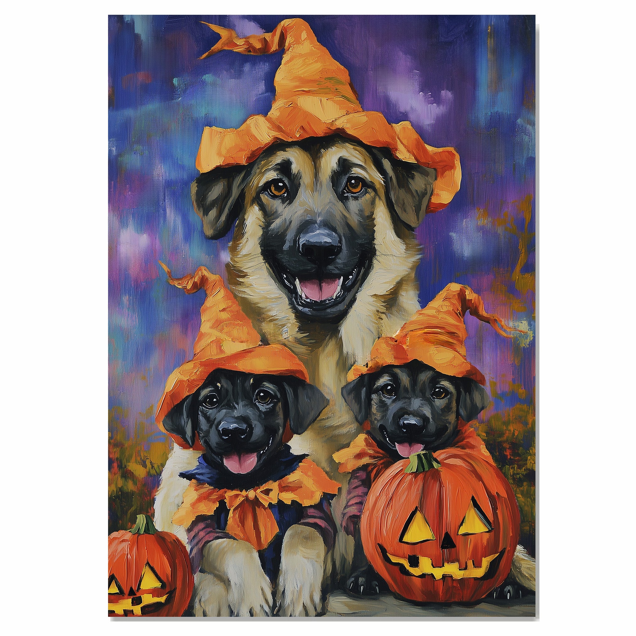 Halloween Anatolian Shepherd Dog Family Wall Art with Pumpkins Fall Farmhouse Decor for Pet Lovers on Ready to Hang 1.5" Thick Canvas Wrap, Floating Framed Canvas, Flat Rolled Canvas