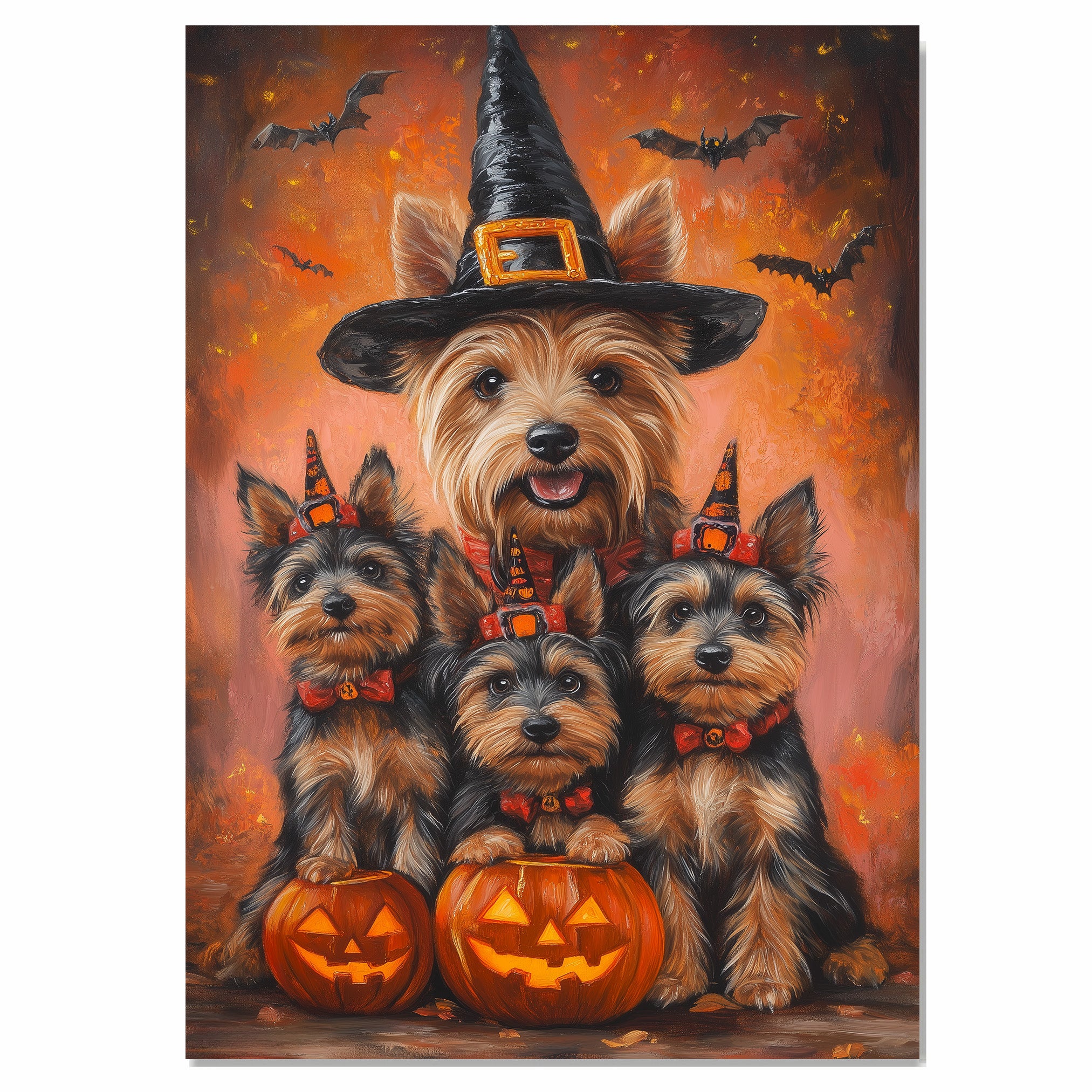 Halloween Australian Terrier Witch Hat Dog Wall Art with Pumpkins Fall Farmhouse Décor for Grandma on Ready to Hang 1.5" Thick Canvas Wrap, Floating Framed Canvas, Flat Rolled Canvas