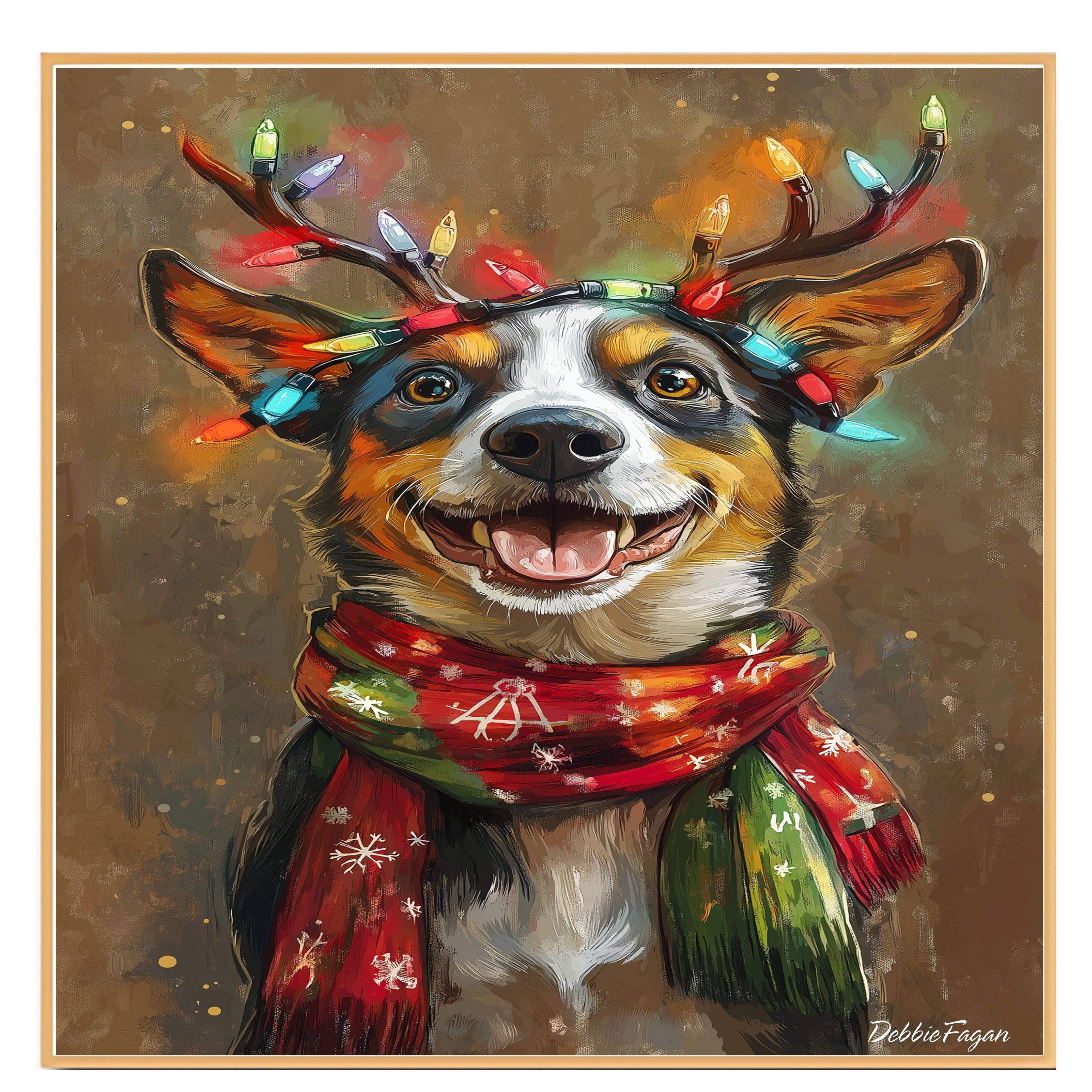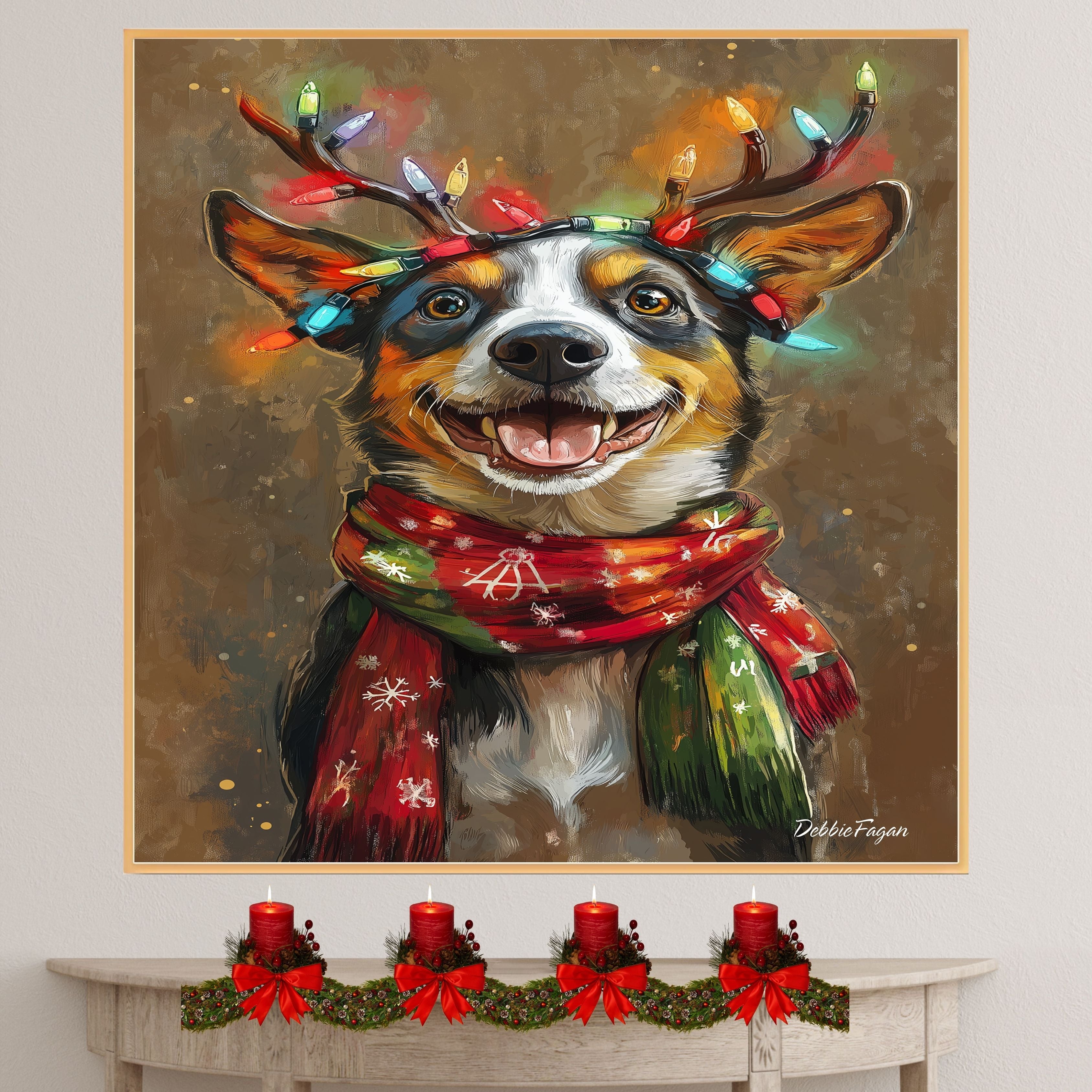 Our Australian Shepherd Holiday Bliss Canvas adds a touch of rustic charm and festive cheer to your home, showcasing a lovable Australian Shepherd adorned with lighted antlers and a cozy scarf against a warm, rustic backdrop. Available on a 1.5" thick canvas wrap, floating framed canvas, or as a flat rolled canvas, this heartwarming piece, titled Rustic Cheer, perfectly captures the holiday spirit with its delightful blend of seasonal coziness and playful elegance. Ideal for brightening up any room, it brings a cheerful touch to your holiday decor and serves as a charming focal point throughout the season.