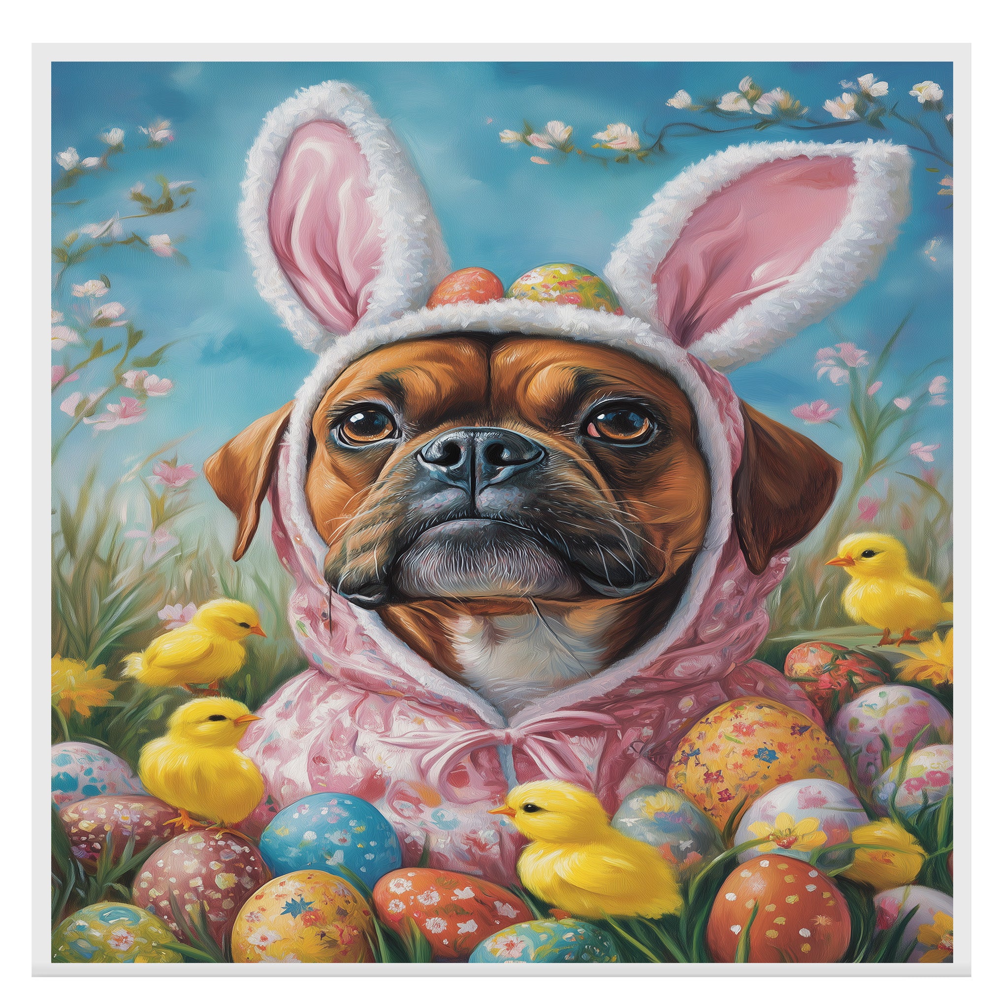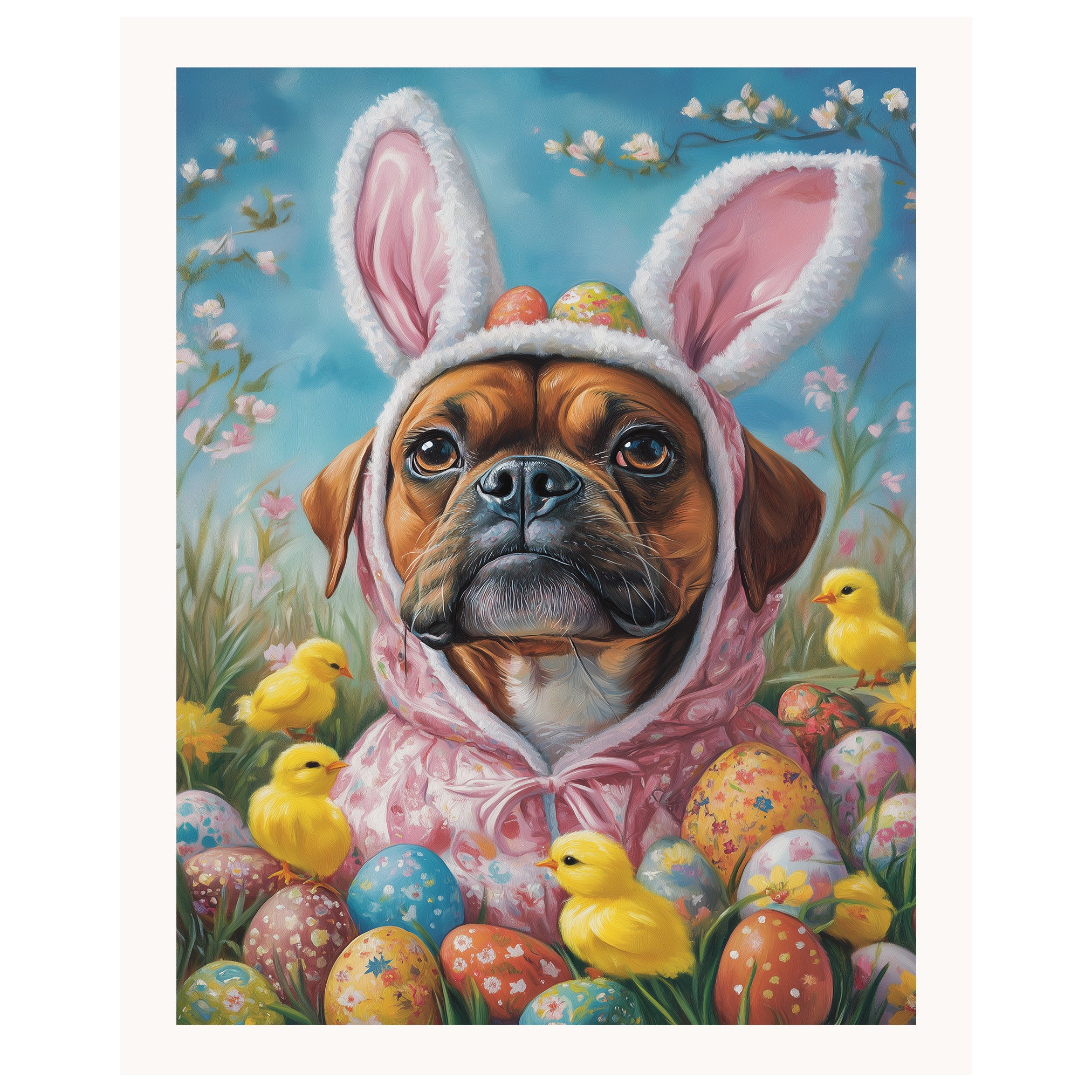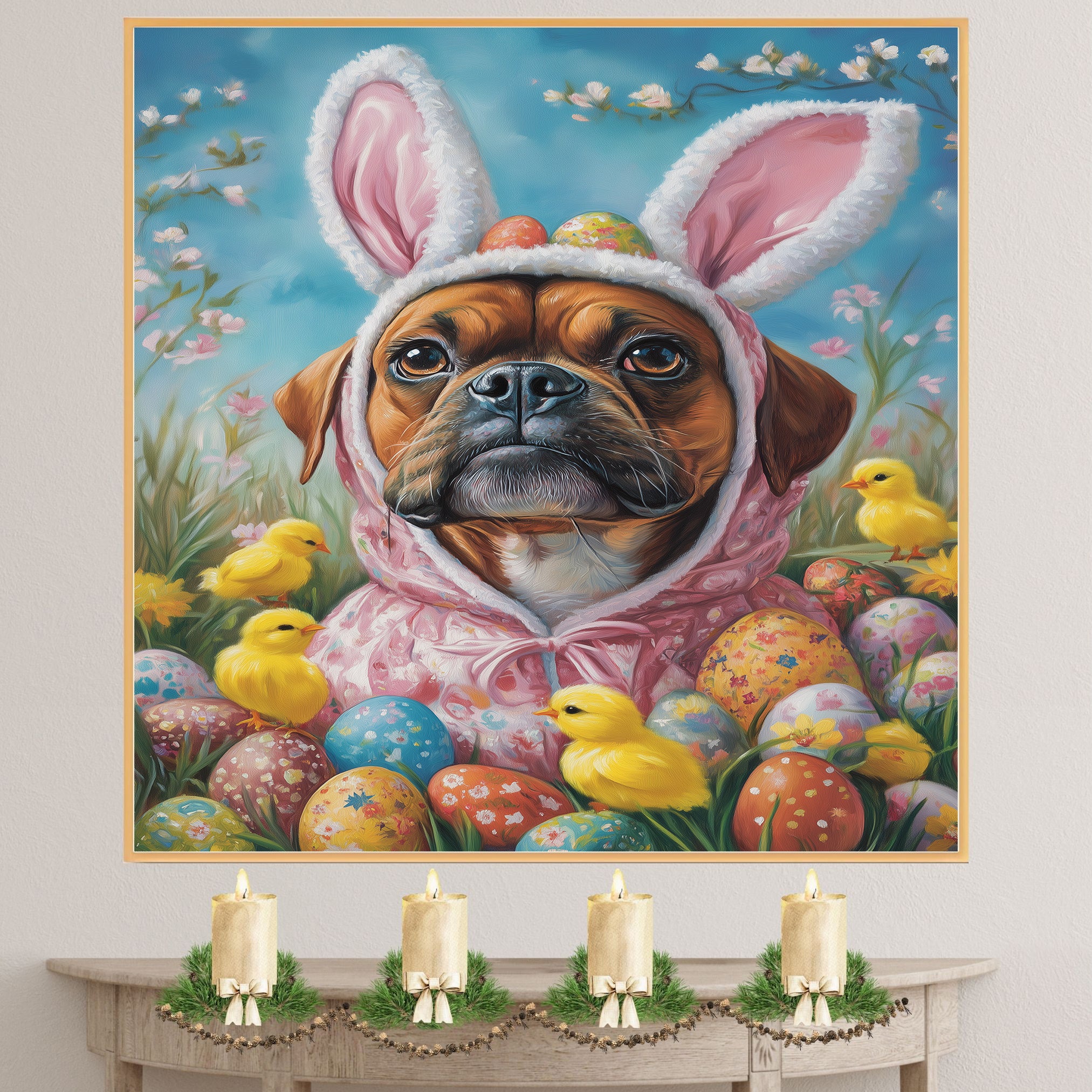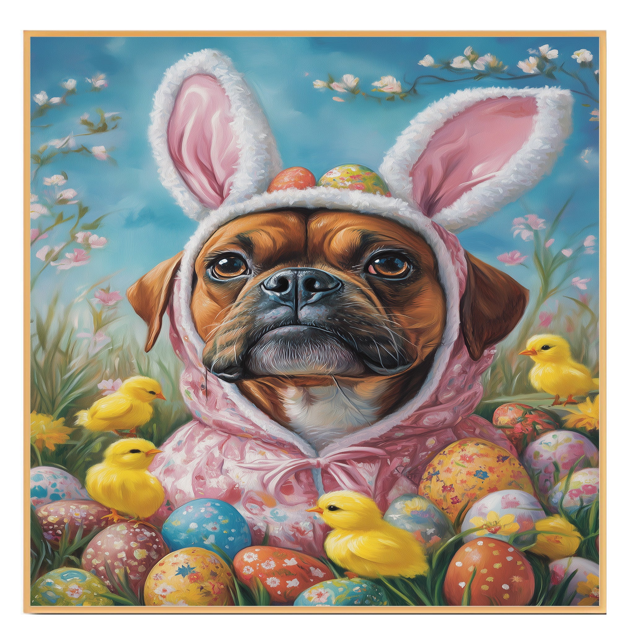 Our Hoppy Celebrations Canvas captures the festive spirit of Easter, featuring a charming Boxer dog showing off a playful holiday attire. Dressed in vibrant spring colors with delightful seasonal accents, this heartwarming artwork radiates joy and celebration, making it a perfect addition to your Easter decor. The whimsical scene brings a touch of seasonal magic to any space, filling your home with warmth and cheer. Available as a decorative canvas wrap, framed print, or rolled artwork, this enchanting piece is a wonderful gift for dog lovers and holiday enthusiasts alike.
