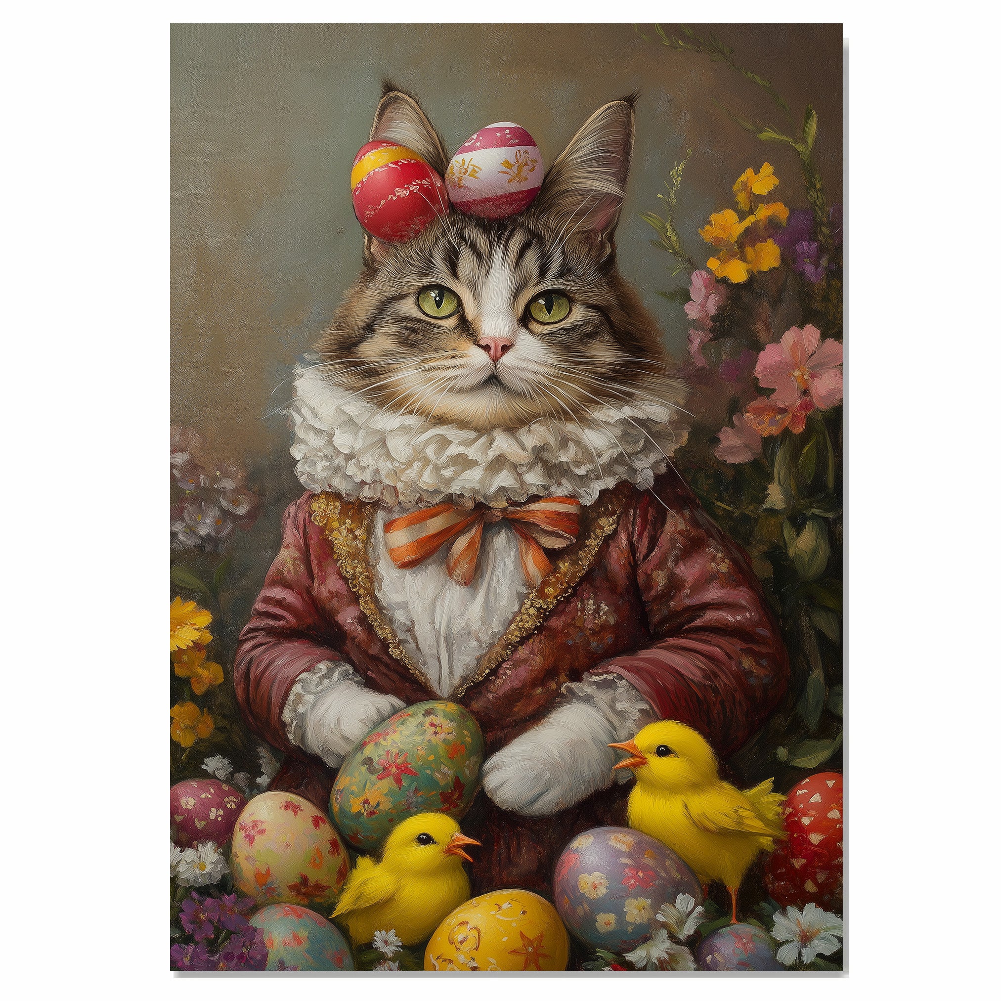 Hoppy Kitty: Adorable Cat Dressed in a Festive Spring Costume on Canvas Wrap, Framed Print, or Rolled Artwork