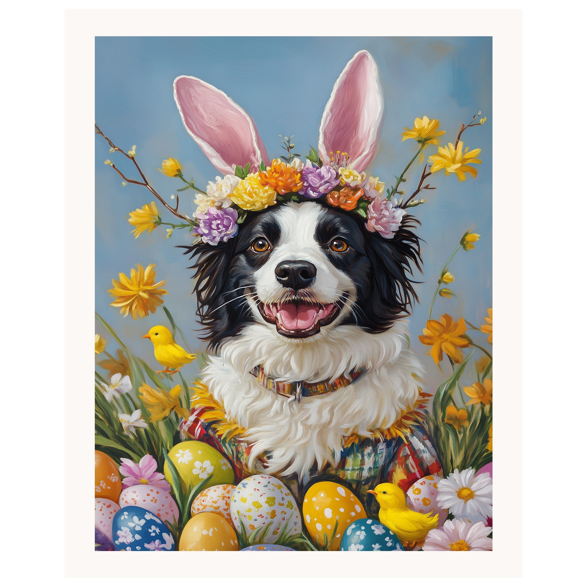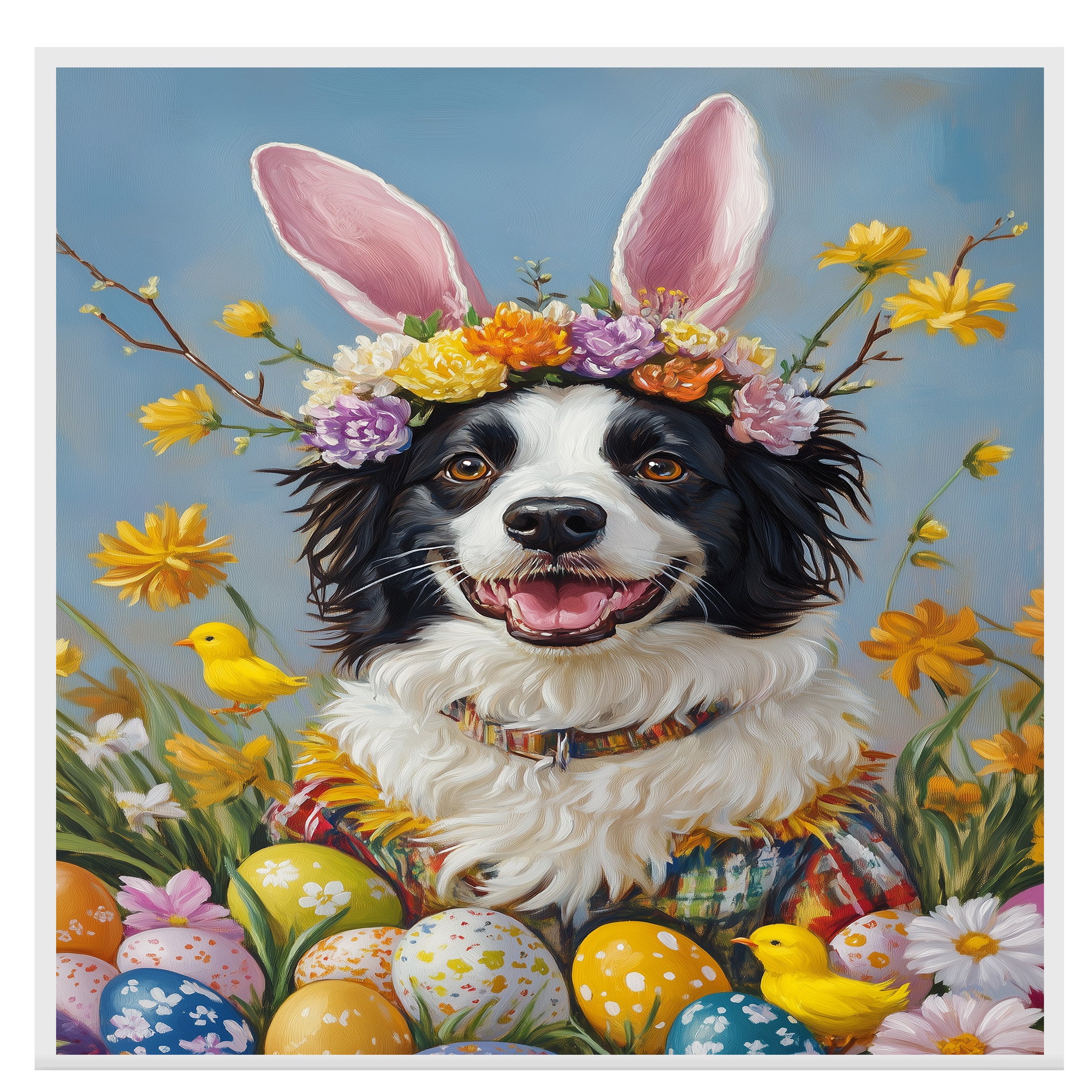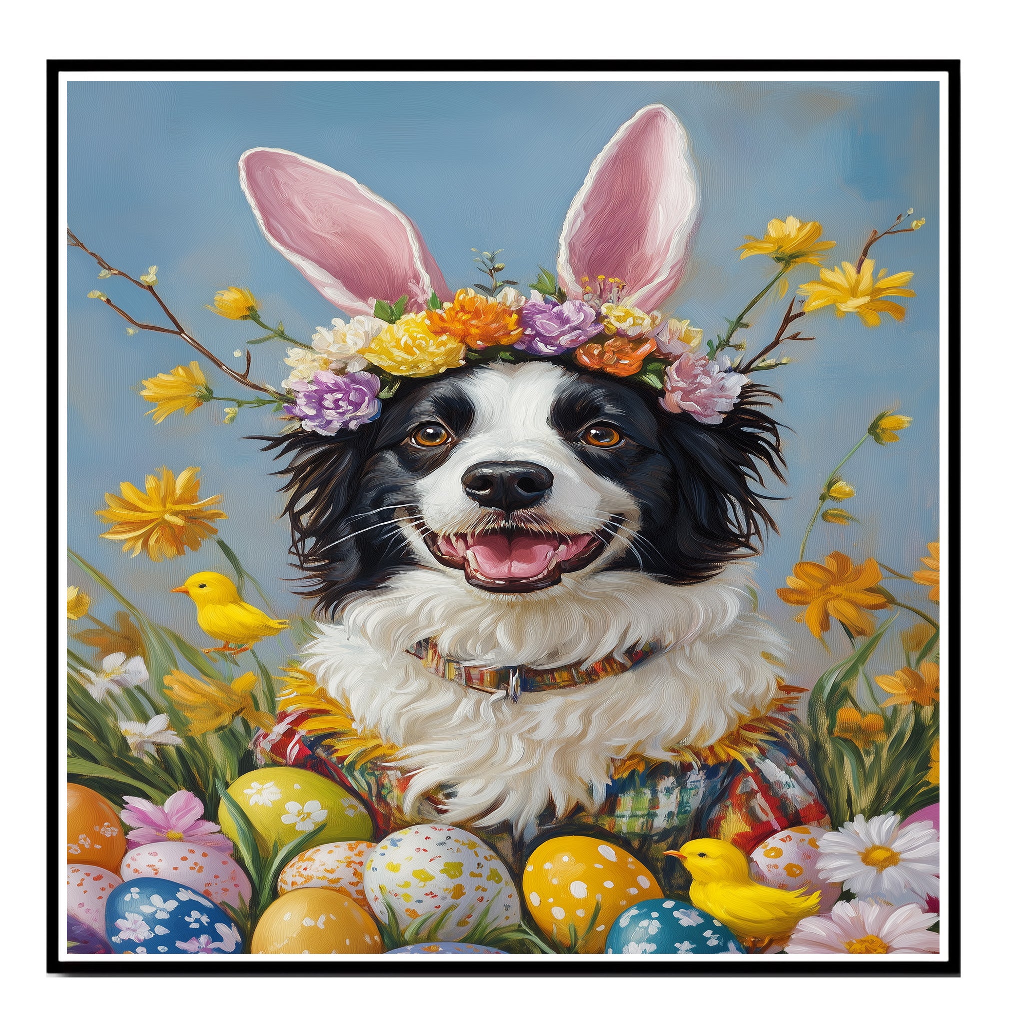 Hoppy Moments: Border Collie Showing Off a Charming Easter Ensemble on Decorative Canvas Wrap, Framed Print, or Rolled Artwork
