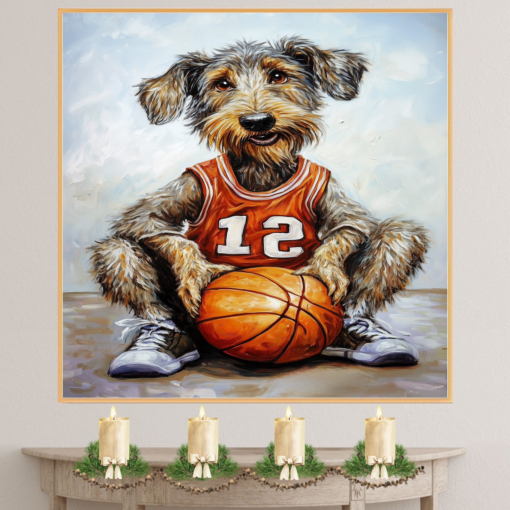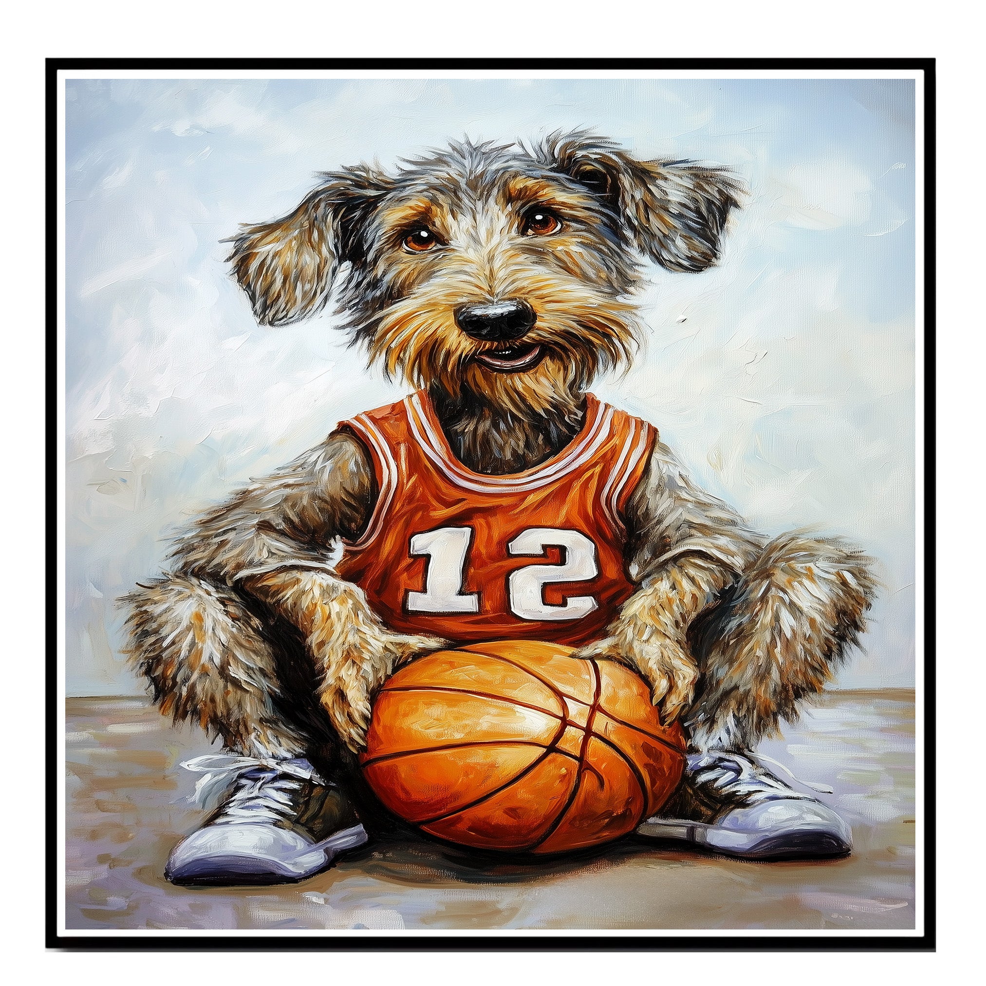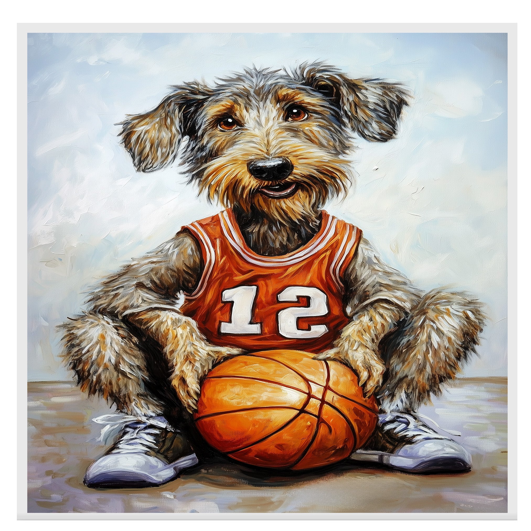 Whether decorating a sporty room or gifting a devoted dog lover, this Irish Wolfhound basketball artwork delivers strength, elegance, and dynamic personality to any wall.
