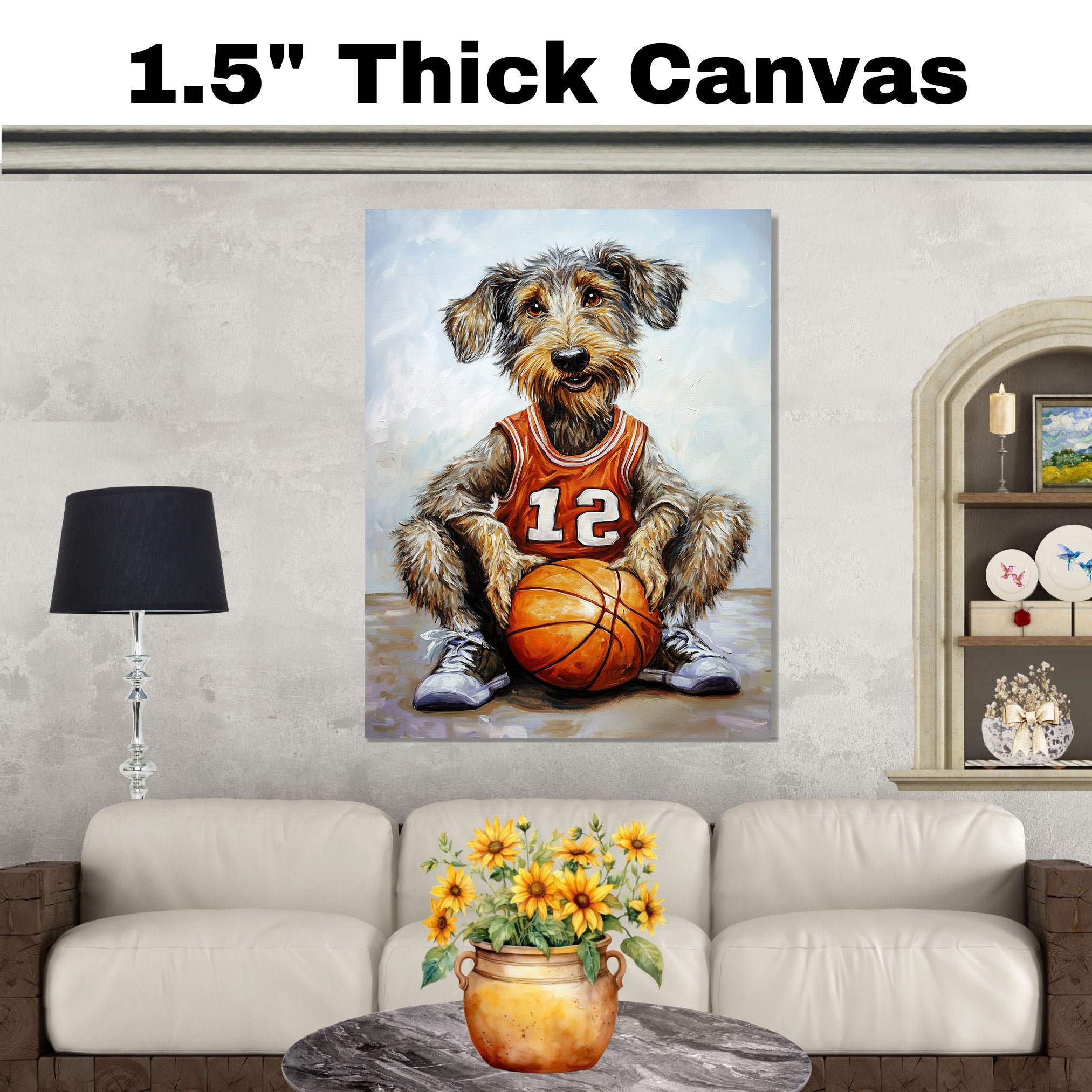 Irish Wolfhound Basketball Wall Art Print 1.5 Inch Thick Canvas Sports Decor for Boys Bedroom or Home Game Room Gift for Dog Lovers