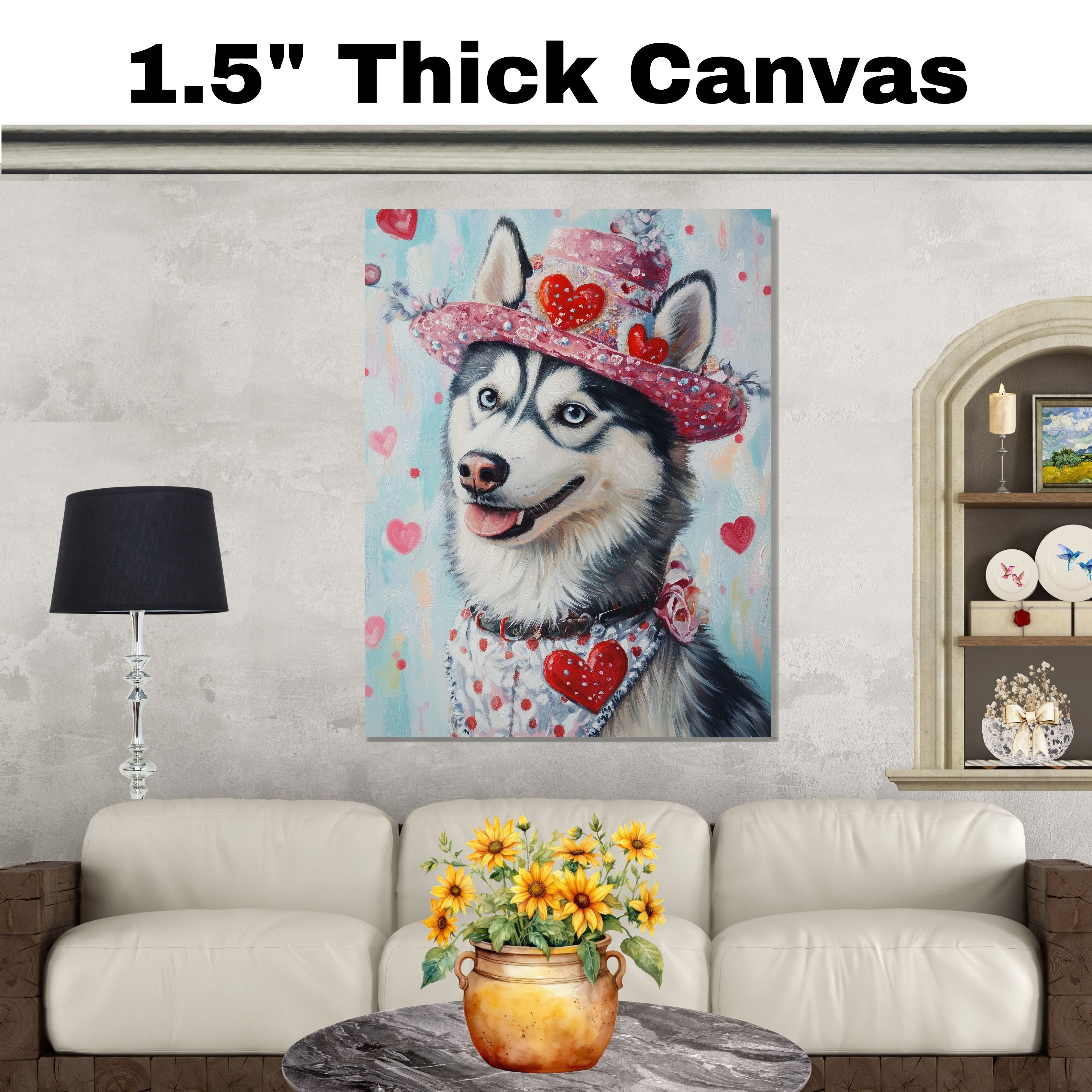"Lucky Pack" Canvas captures the festive charm of St. Patricks Day with a proud Siberian Husky surrounded by a playful pack of puppies, all dressed in adorable green outfits. Shamrocks, festive accessories, and cheerful expressions bring this heartwarming scene to life, making it a perfect way to celebrate the luck of the Irish. Whether displayed as a seasonal favorite or a year-round tribute to joy and companionship, this artwork is available on a 1.5" thick canvas wrap, floating framed canvas, or as a flat rolled canvas. A lucky and delightful gift for dog lovers and St. Patrick's Day enthusiasts alike!