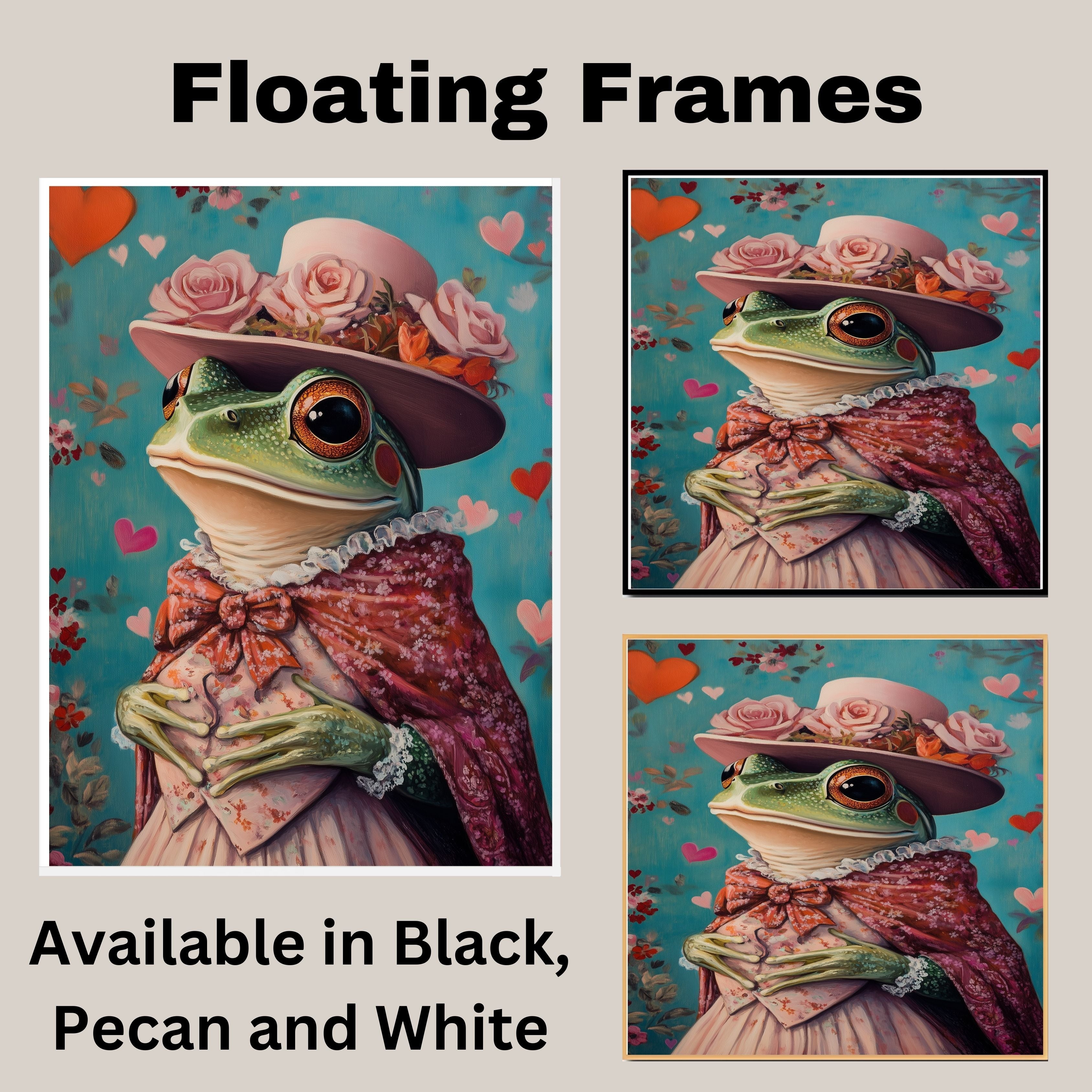 1.5" Thick Floating Framed Canvas: Available in Black, Pecan, and White Grain. Durable shrink-resistant frame. Comes with easy-to-install hanging kits, ready for immediate display.