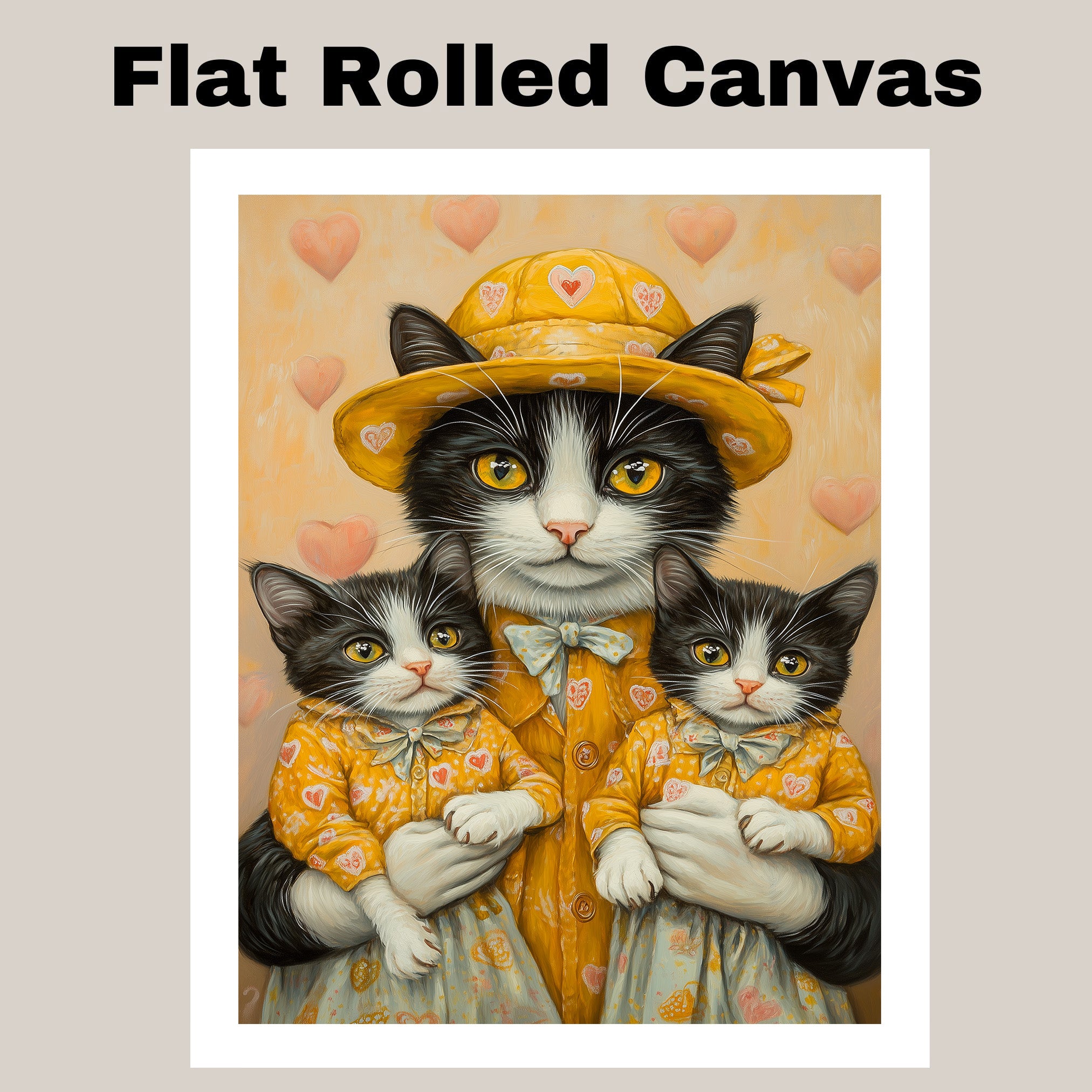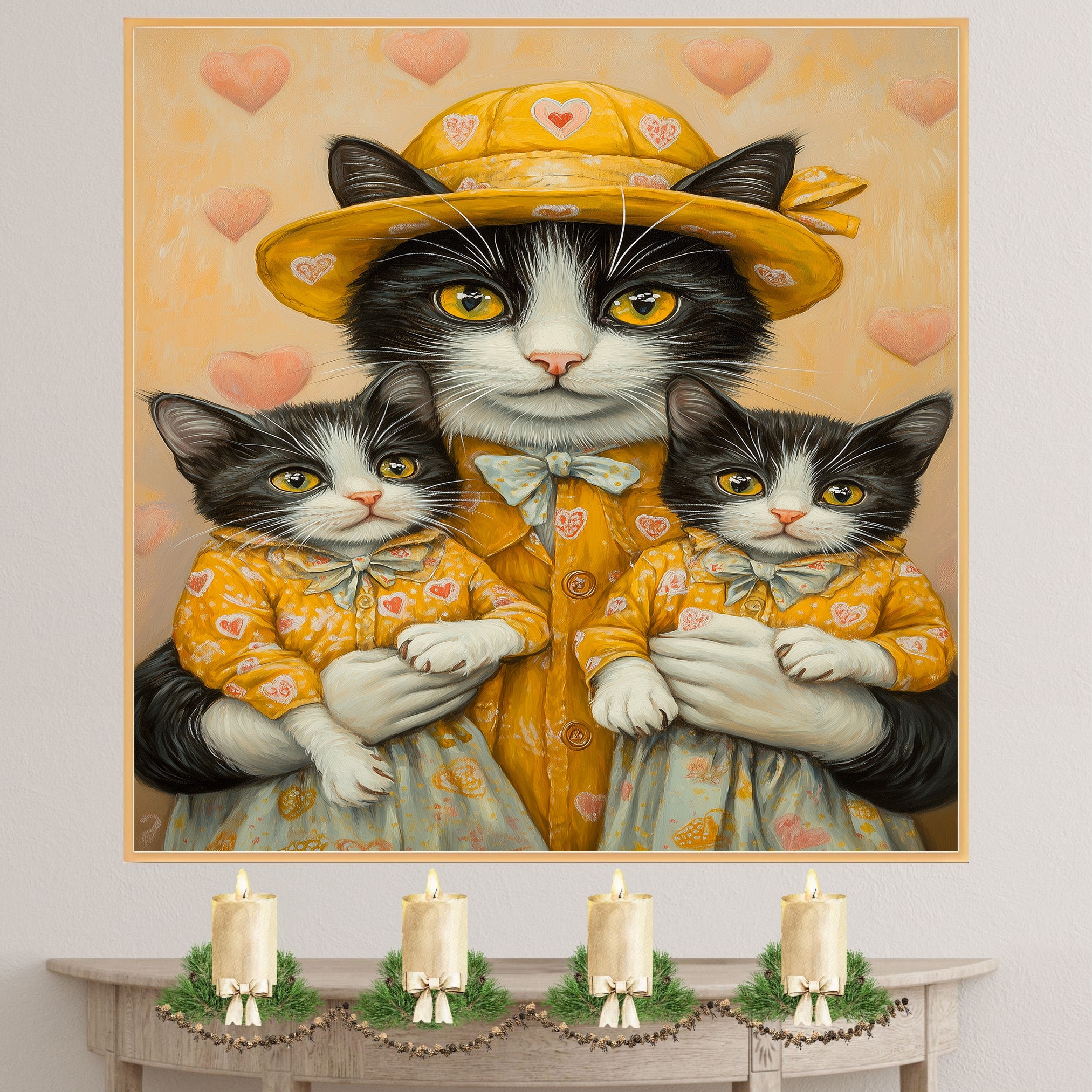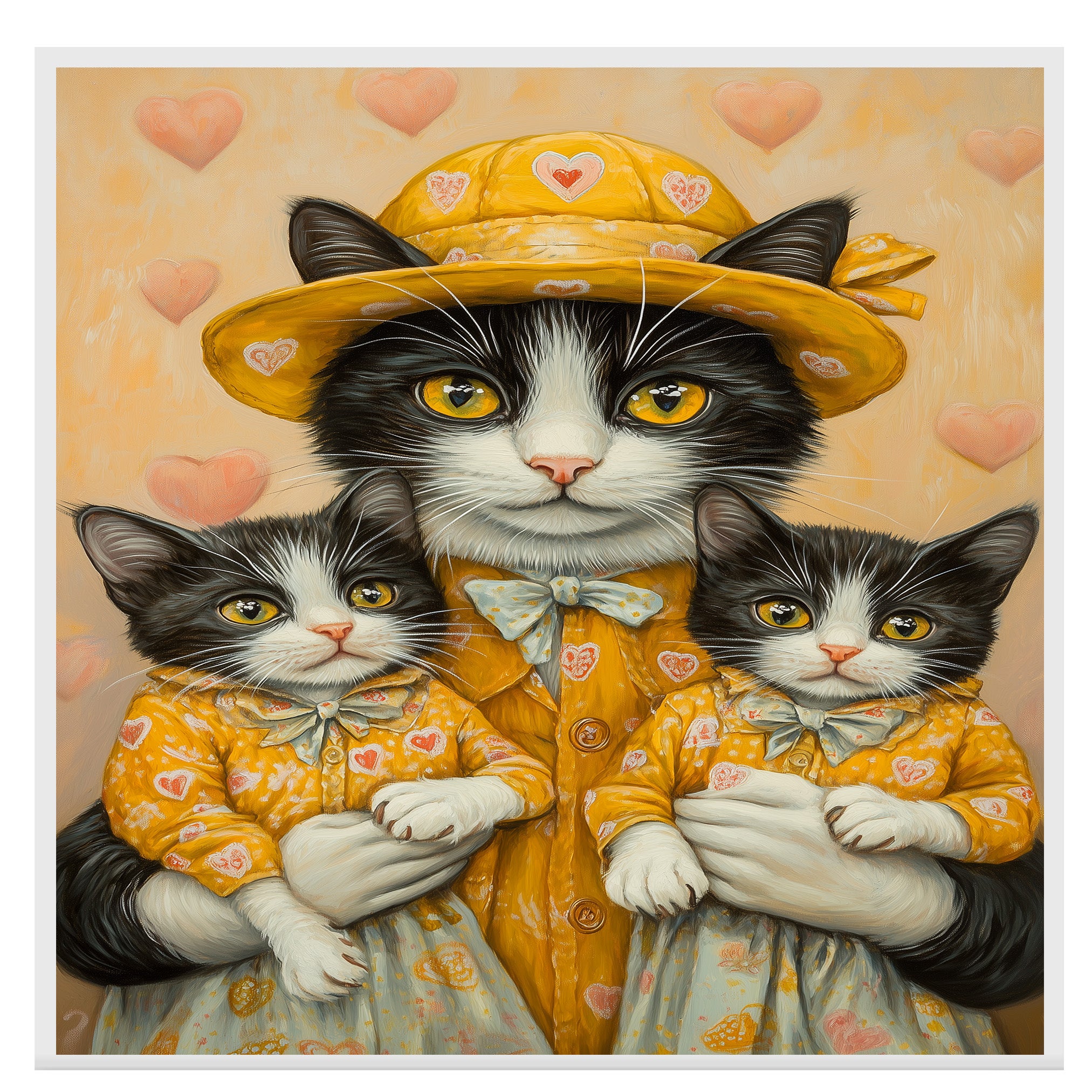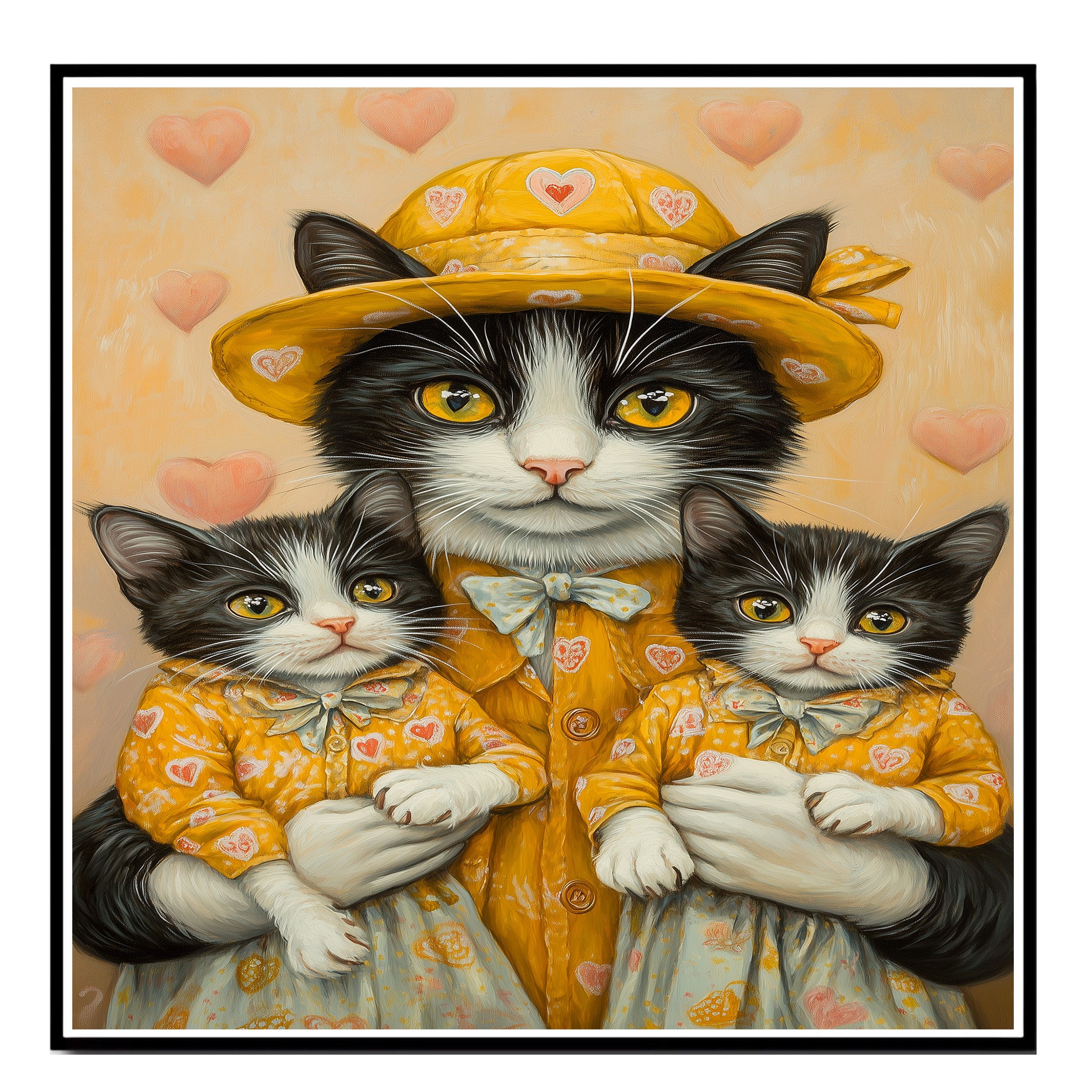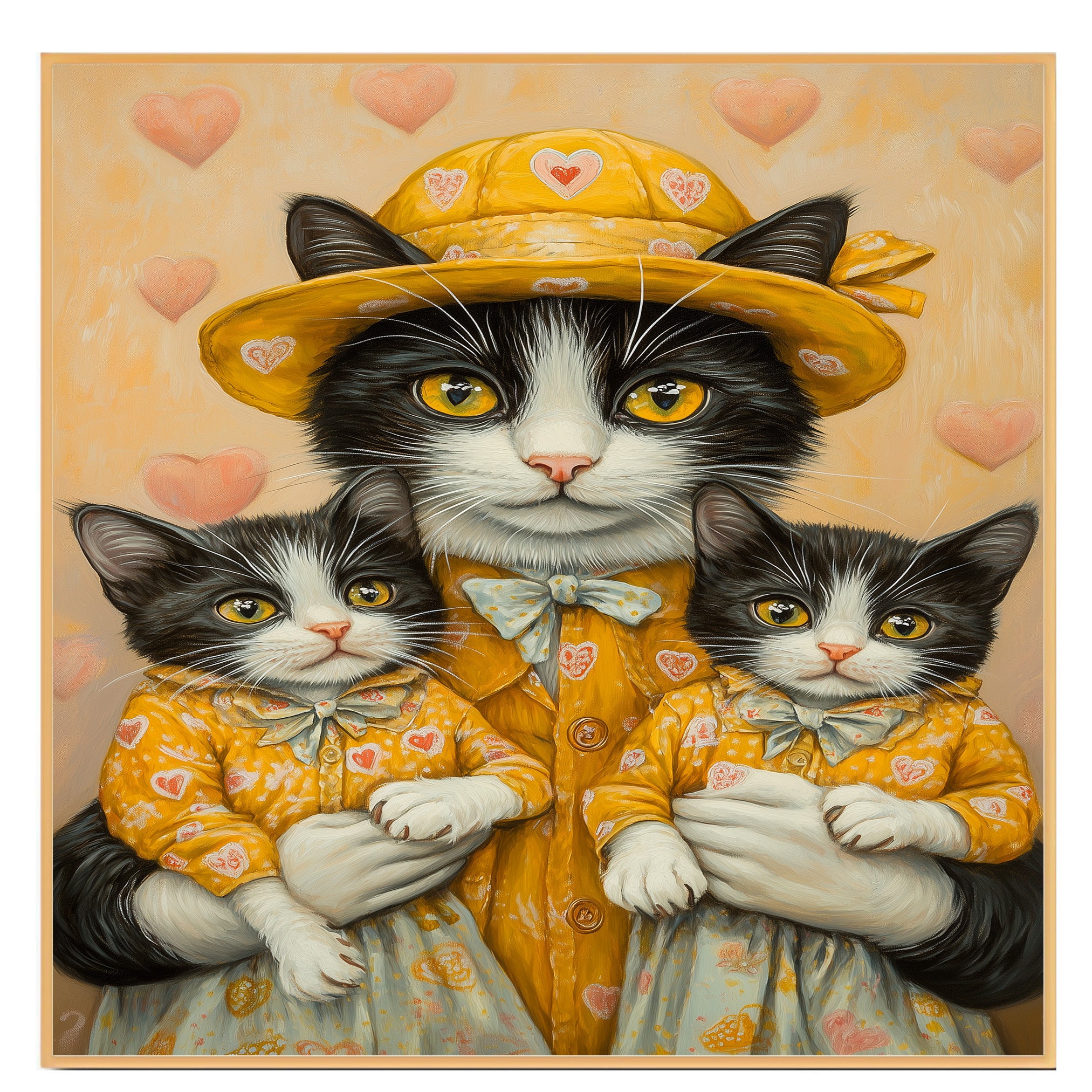 Add a soft, relaxing charm to your space with this heartwarming artwork featuring a mother cat and her kittens dressed in pink outfits adorned with roses and hearts. Perfect for cat lovers, whimsical art collectors, and anyone seeking cozy family-themed art, this beautiful piece brings warmth and tenderness to any setting.