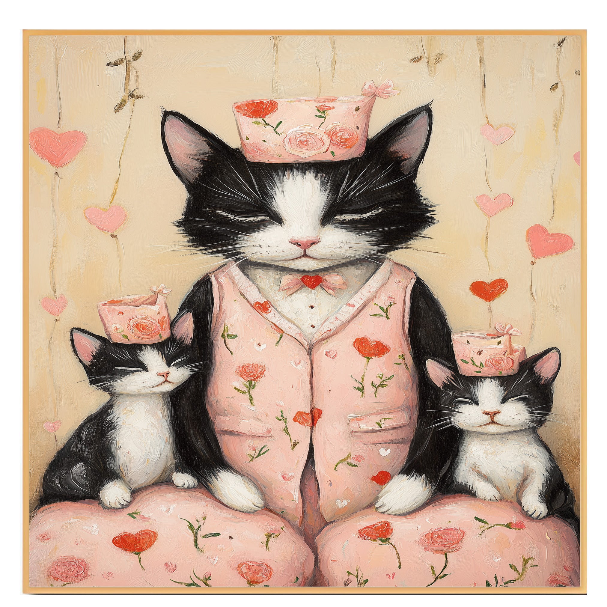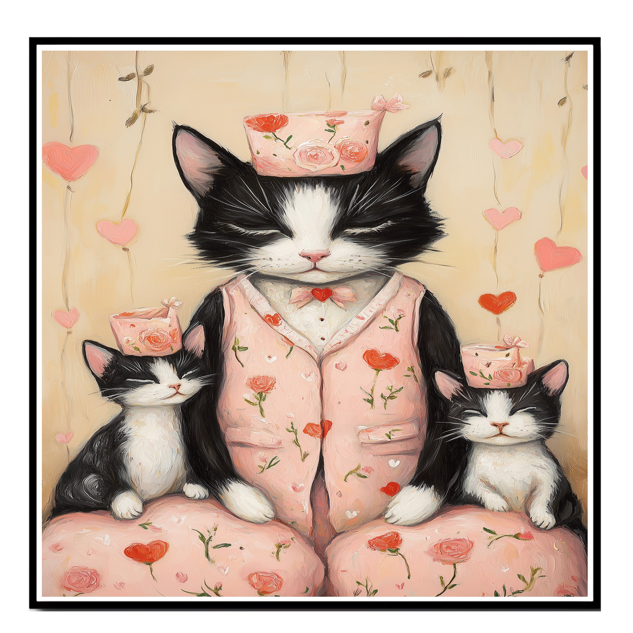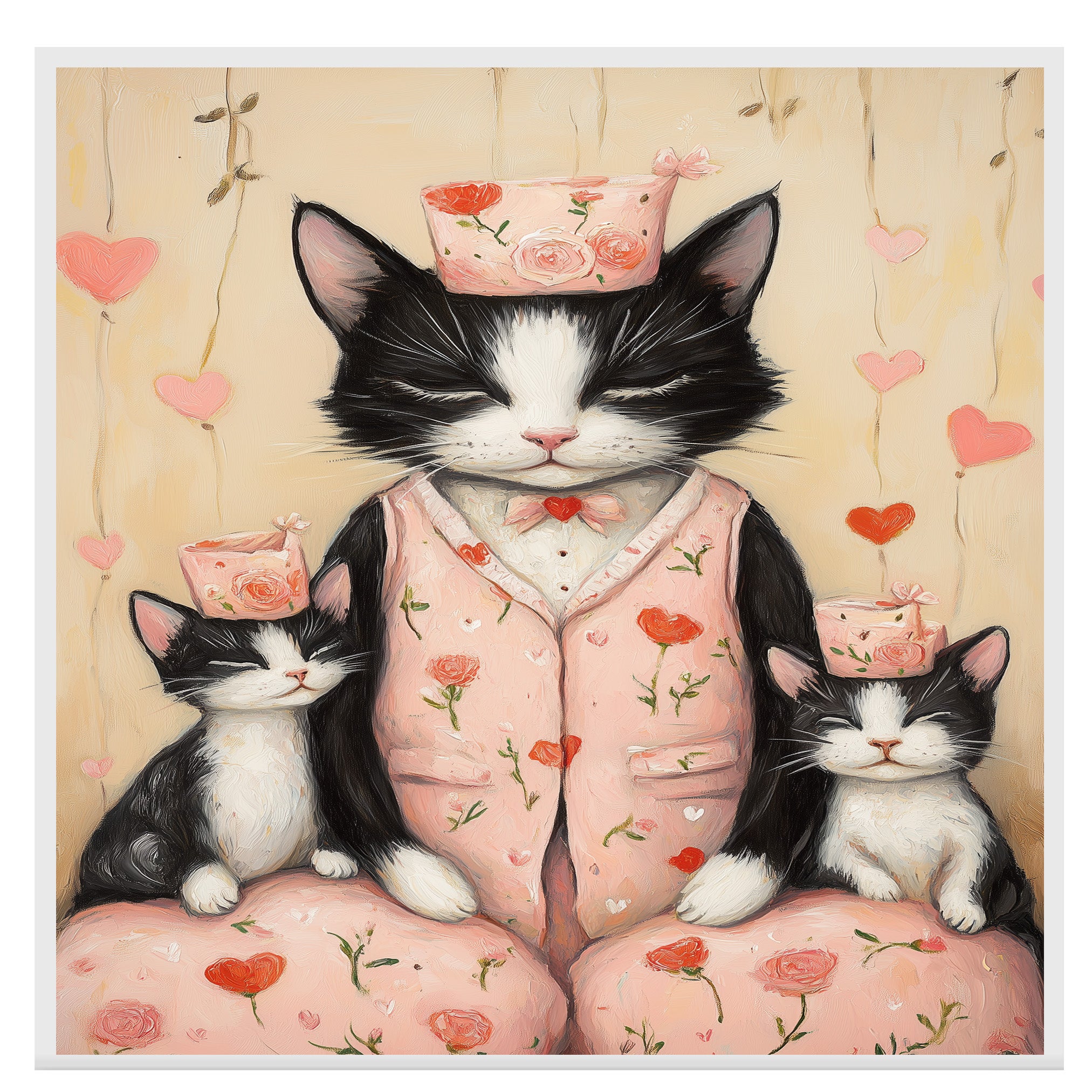 Celebrate the cozy charm of family love with this sweet artwork featuring a mother cat and her...