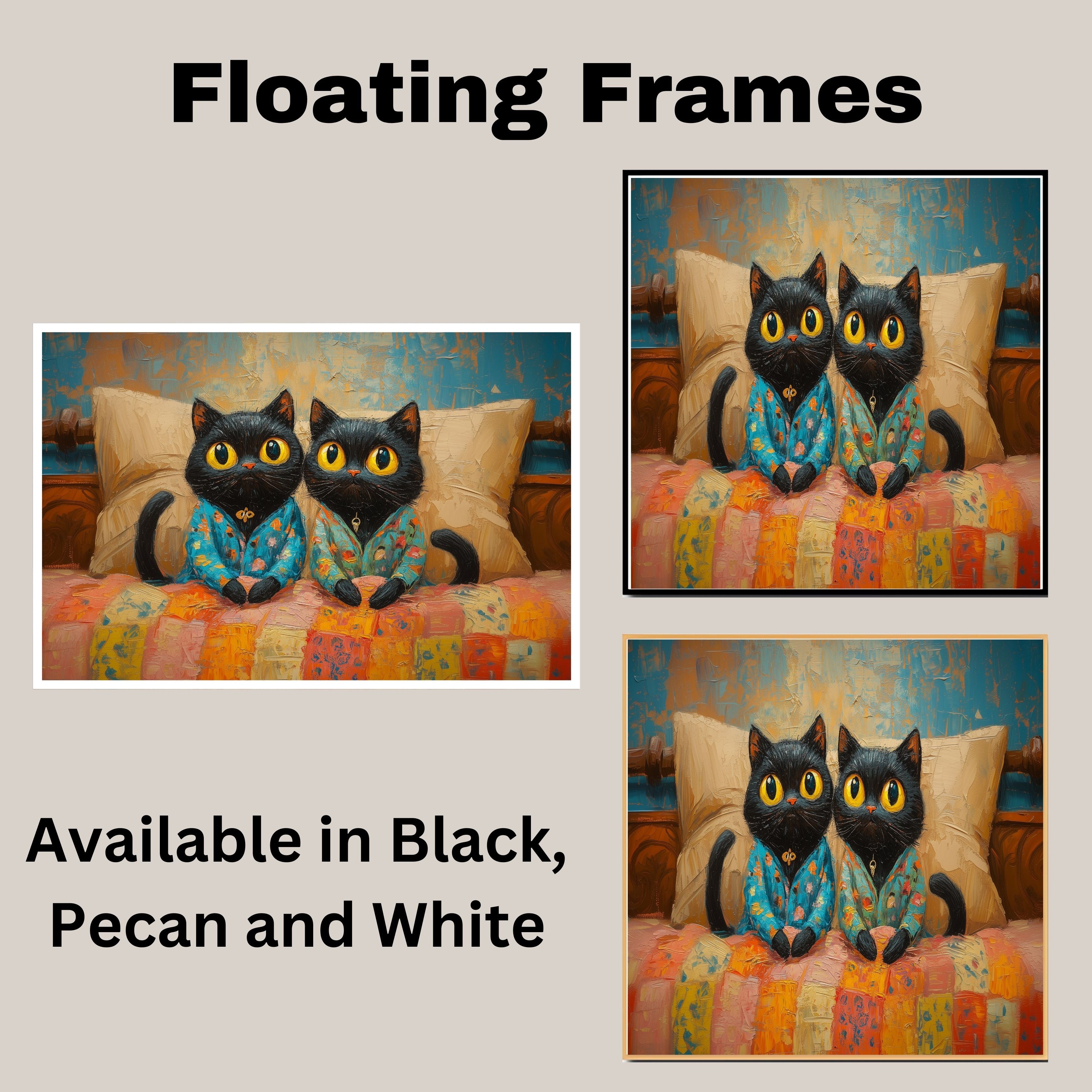 1.5" Thick Floating Framed Canvas: Available in Black, Pecan, and White Grain. Durable shrink-resistant frame. Comes with easy-to-install hanging kits, ready for immediate display.