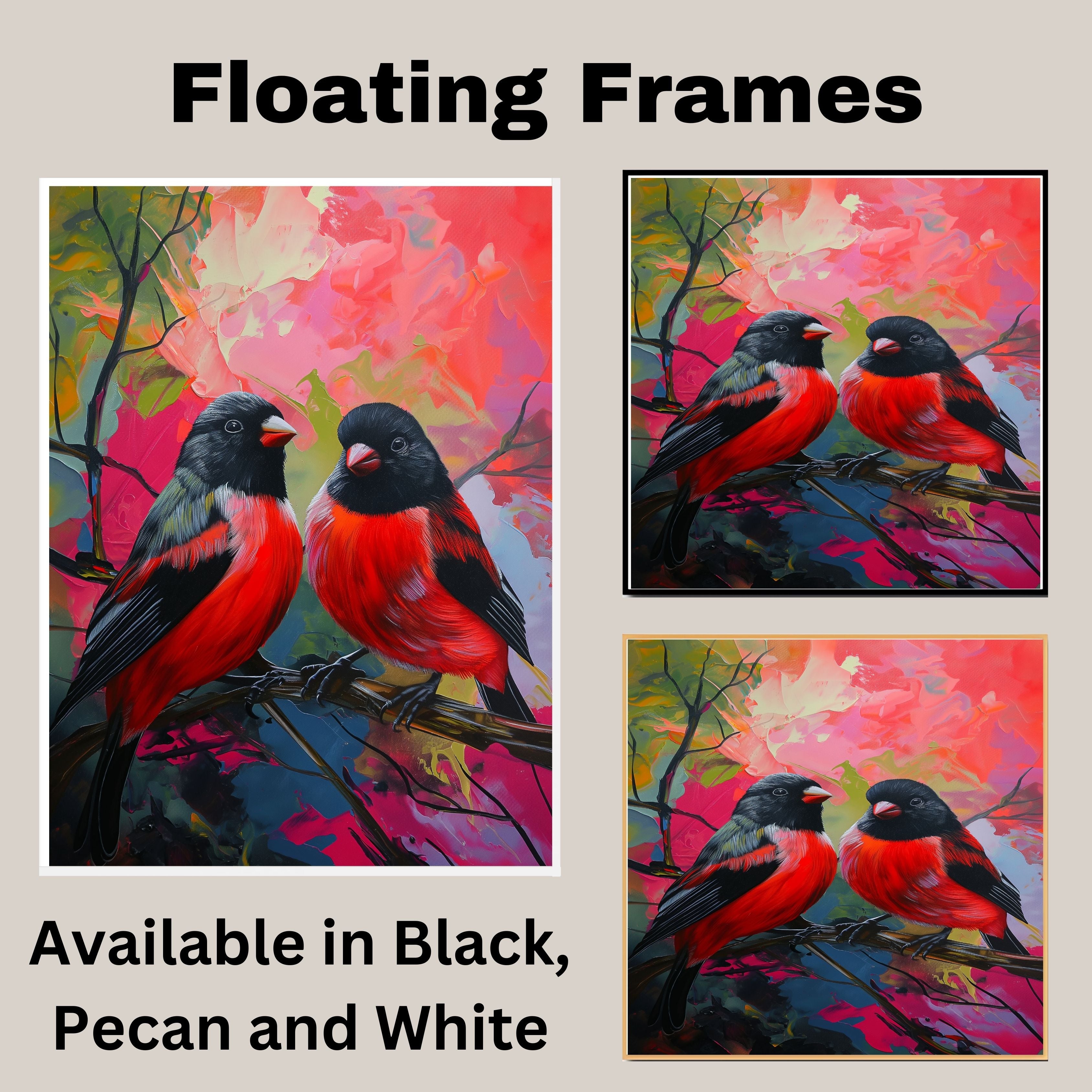1.5" Thick Floating Framed Canvas: Available in Black, Pecan, and White Grain. Durable shrink-resistant frame. Comes with easy-to-install hanging kits, ready for immediate display.