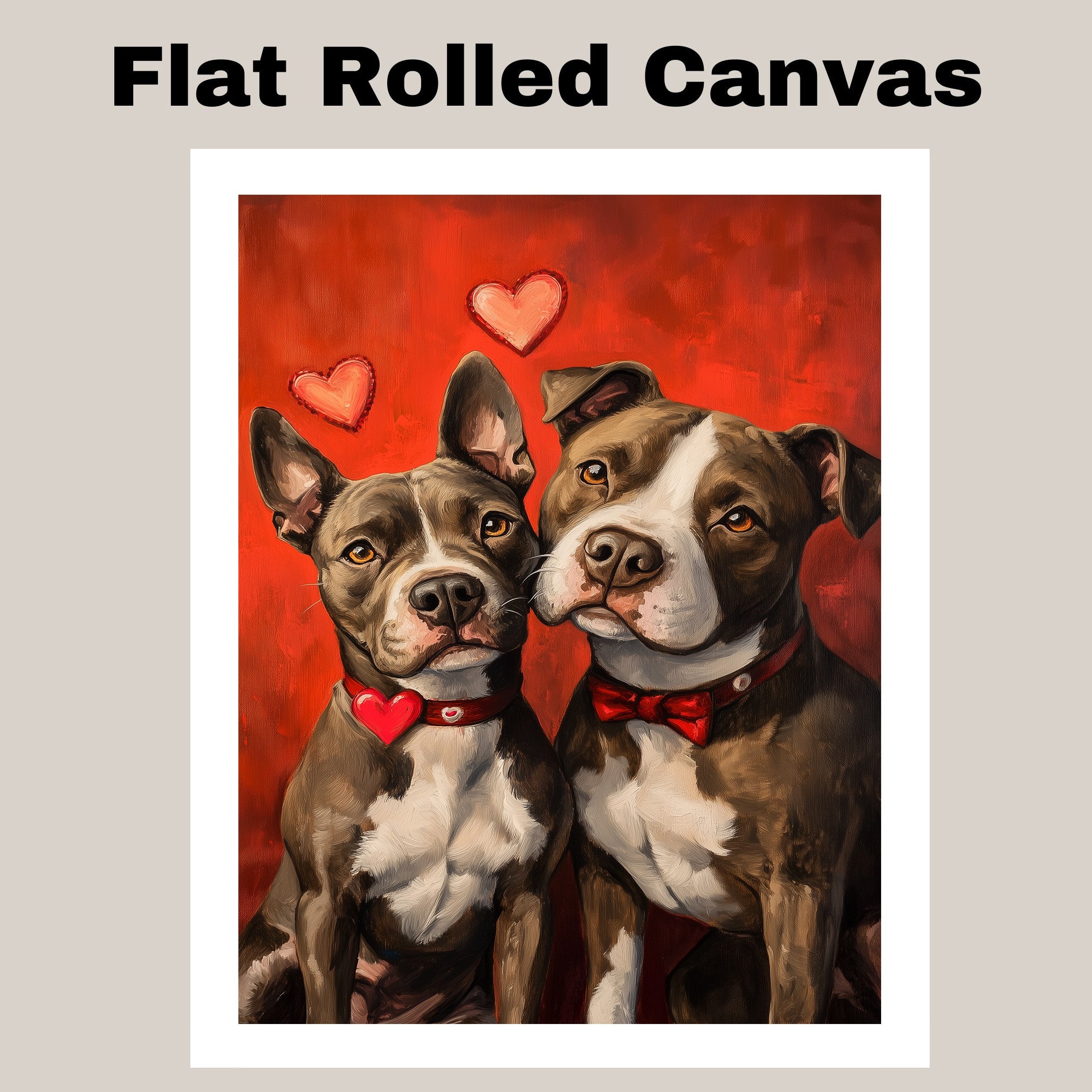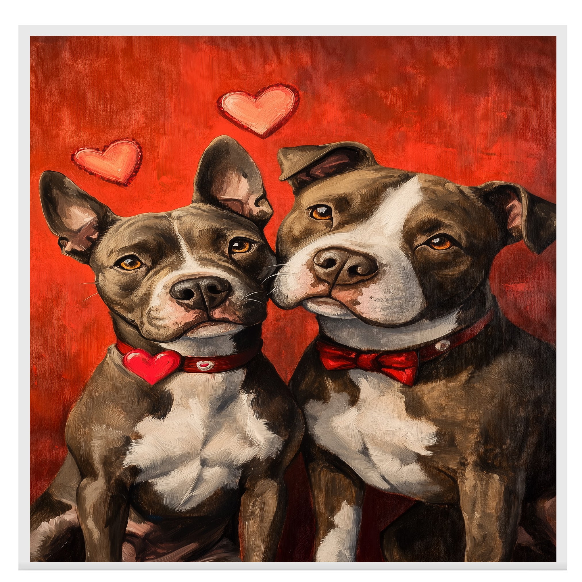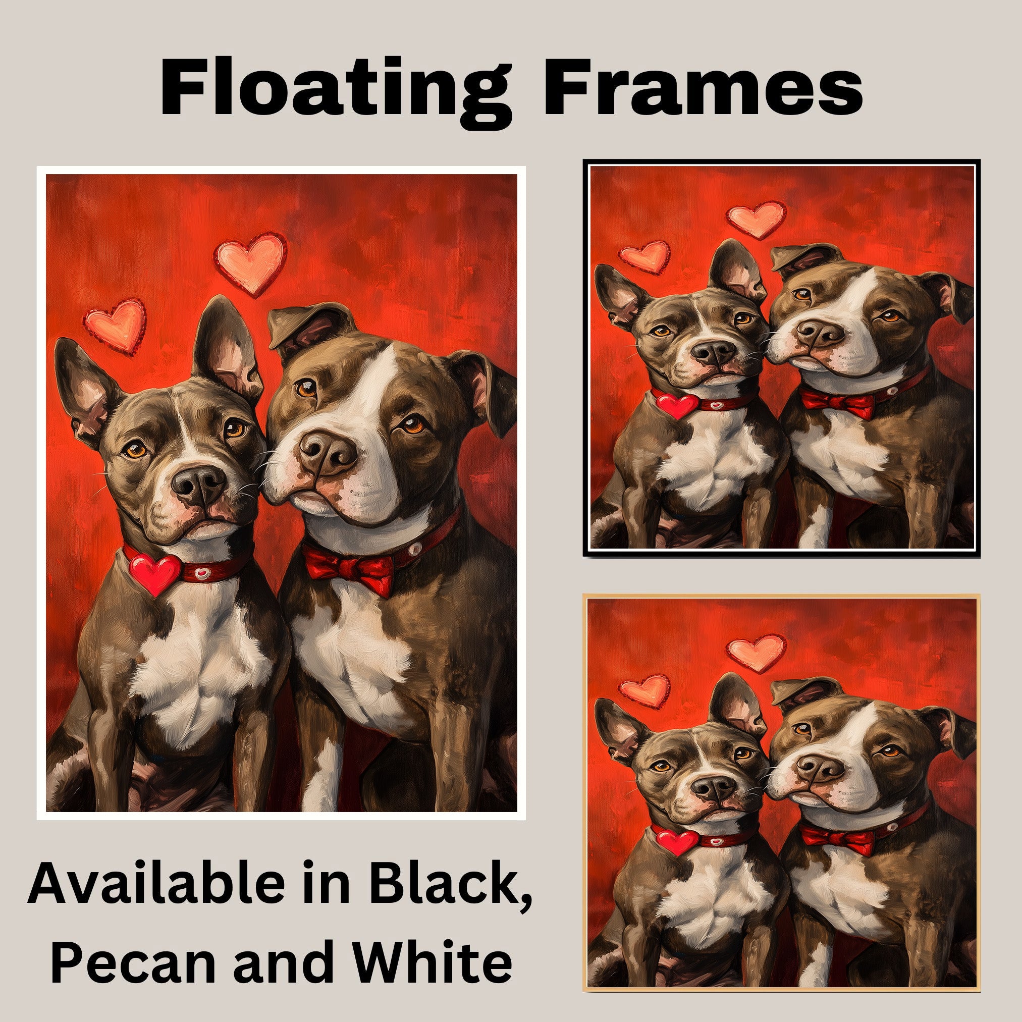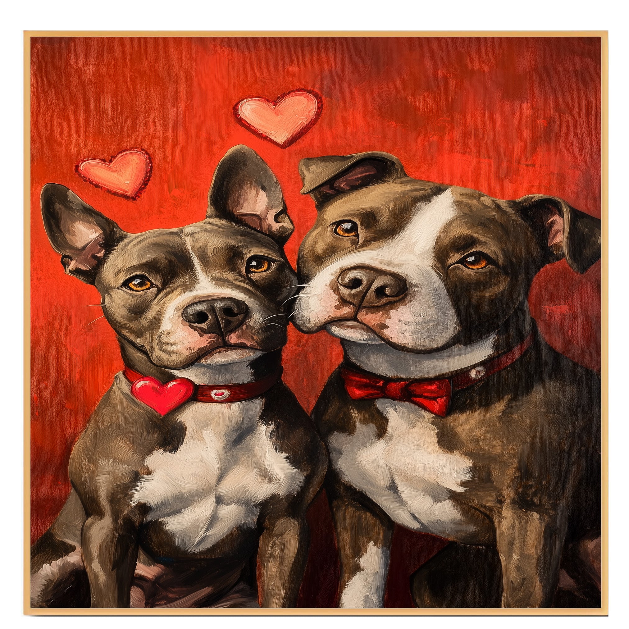 Pitbull Dog Couple with Hearts Romantic Pet Artwork for Dog Lovers and Cozy Rustic Home Decor on Ready to Hang 1.5" Thick Canvas Wrap, Floating Framed Canvas, Flat Rolled Canvas